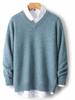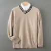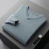 Otoño e Invierno Nuevo Suéter de Cuello en V 100% Lana Pura para Hombre Suéter Jersey de Negocios Suéter de Lana Tejida Engrosada Casual Talla Grande