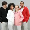 Entrega de una pieza suéter con capucha y cremallera de otoño e invierno al por mayor logo estampado color sólido ropa de trabajo ropa de clase blanca suelta para hombre