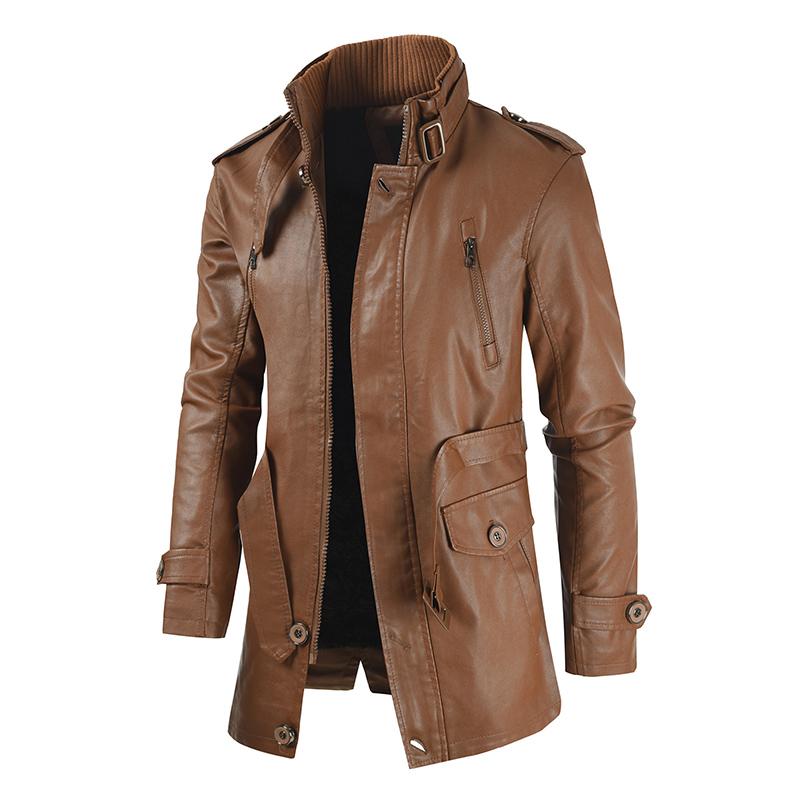 Comercio exterior Amazon 2020 Invierno nuevo ropa de cuero larga para hombre juvenil cuello alto más terciopelo ropa de cuero DL462