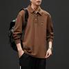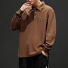 Camisa polo de manga larga de algodón puro estilo americano retro de primavera y otoño, nueva camisa holgada de talla grande de marca de moda para hombre con solapa.