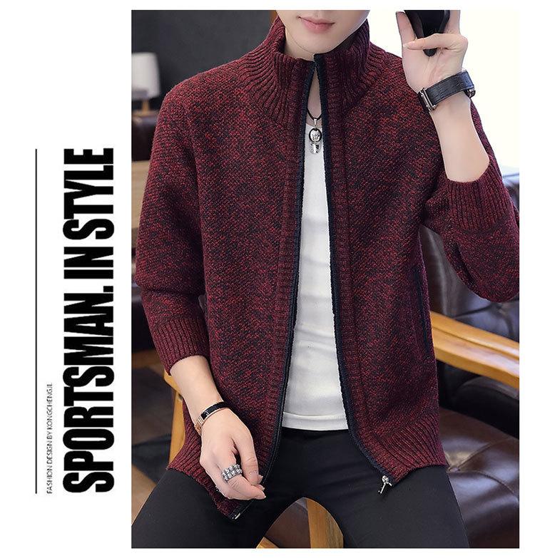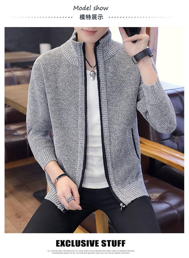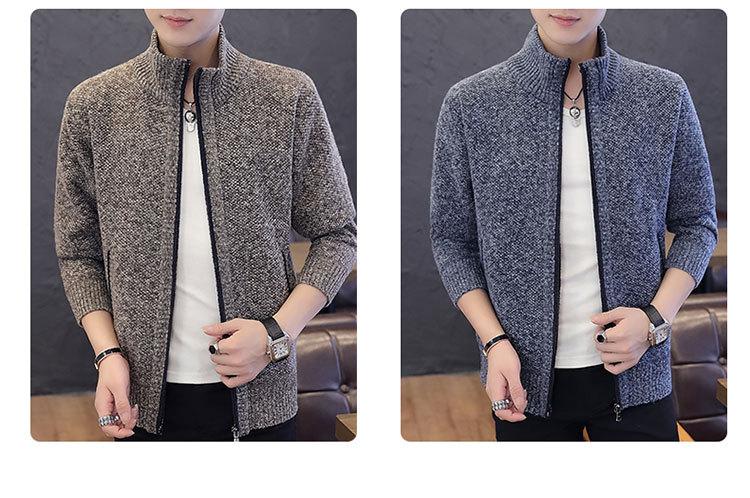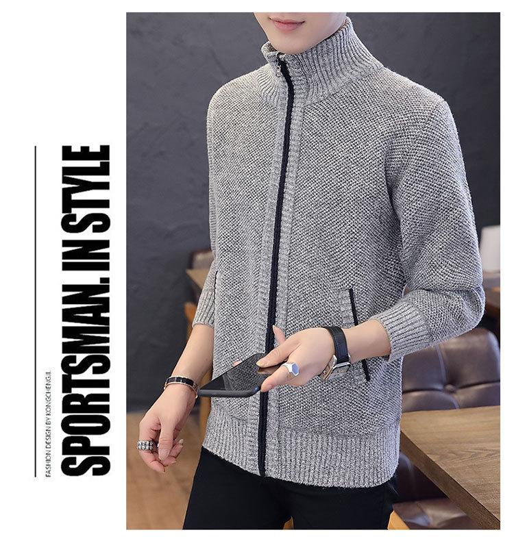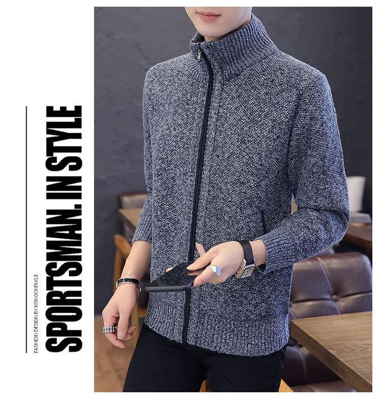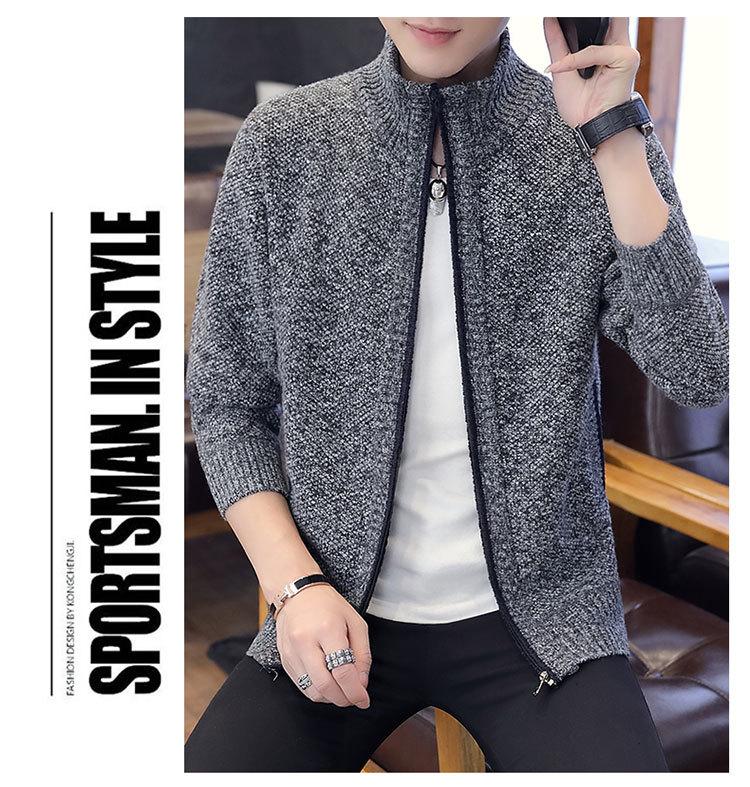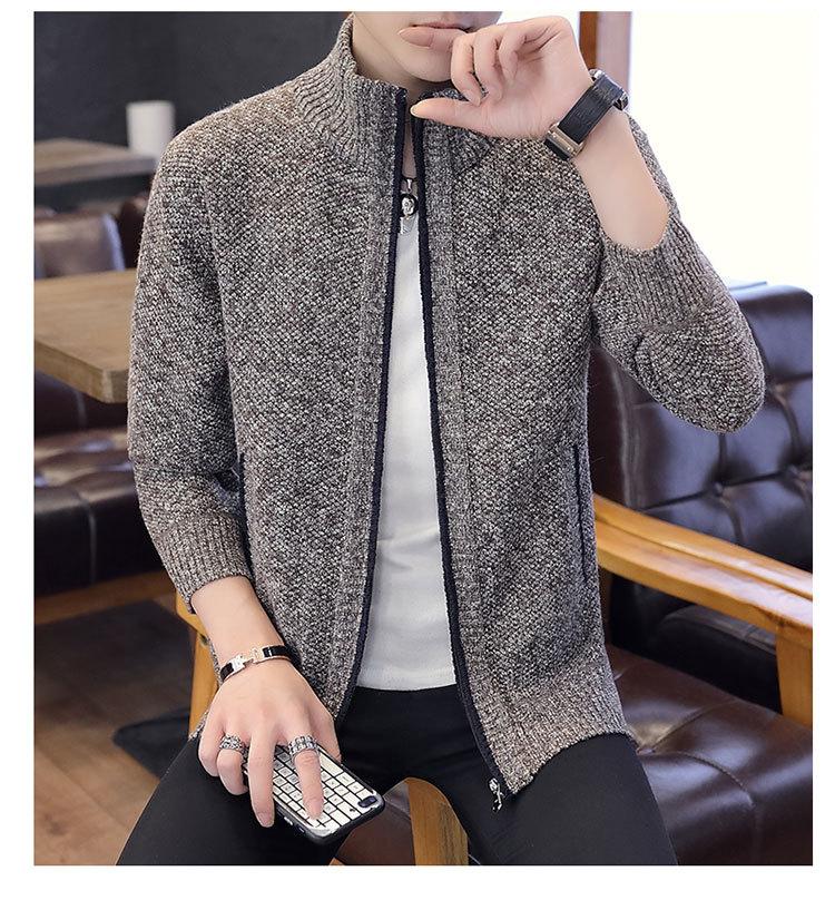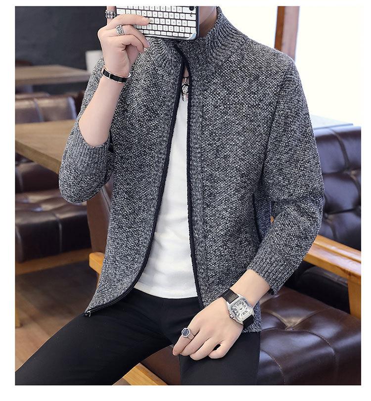 Suéter grueso con forro polar para hombre, entrega transfronteriza, suéter de estilo coreano ajustado de moda, abrigo para hombre, cárdigan con cremallera
