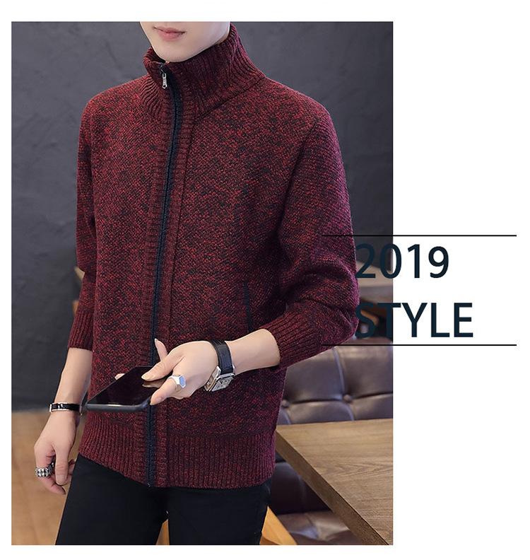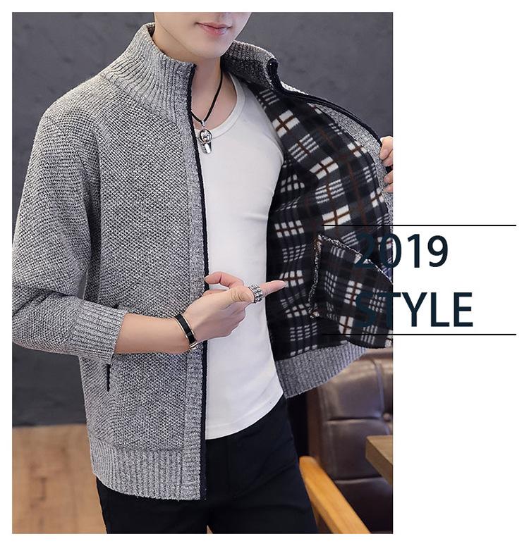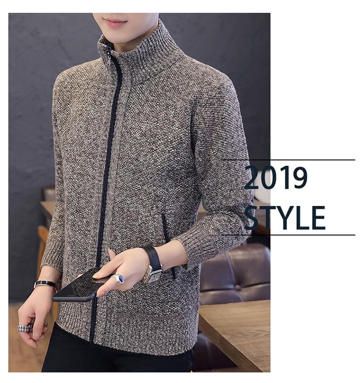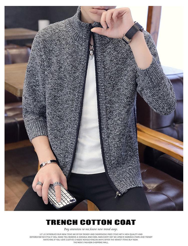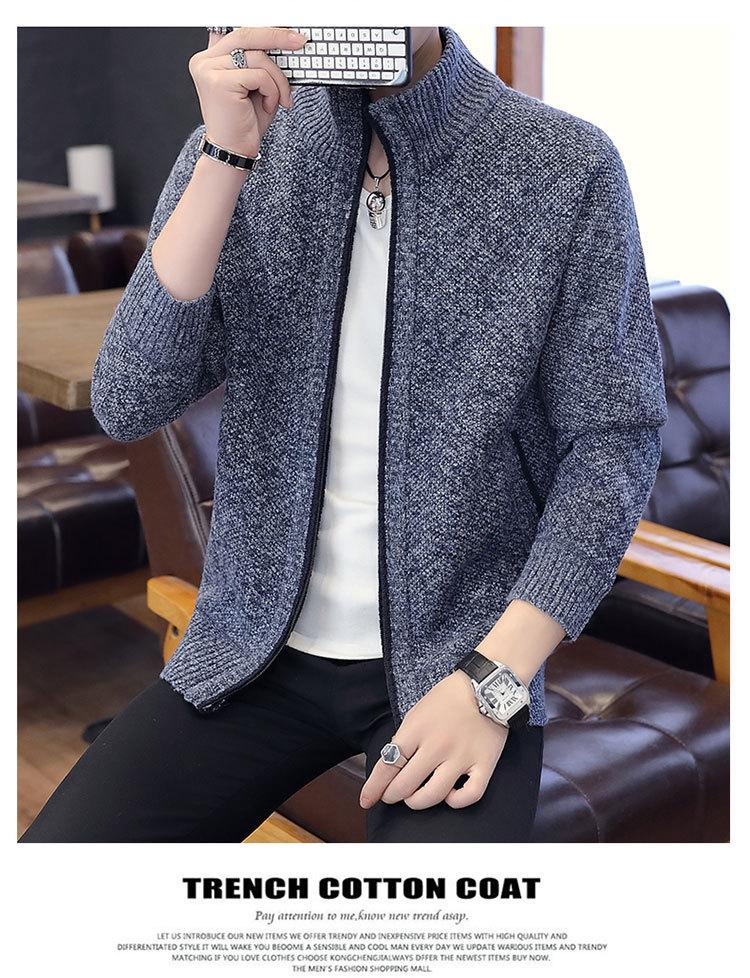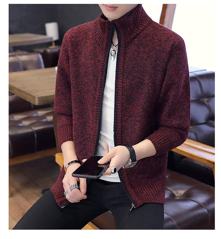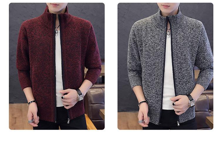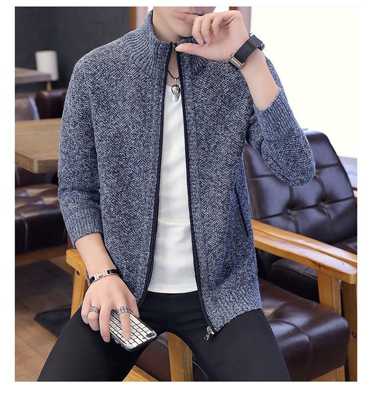 Suéter grueso con forro polar para hombre, entrega transfronteriza, suéter de estilo coreano ajustado de moda, abrigo para hombre, cárdigan con cremallera