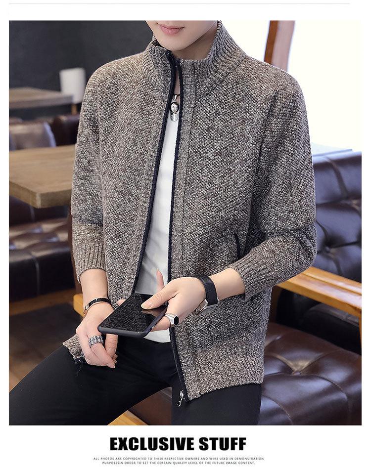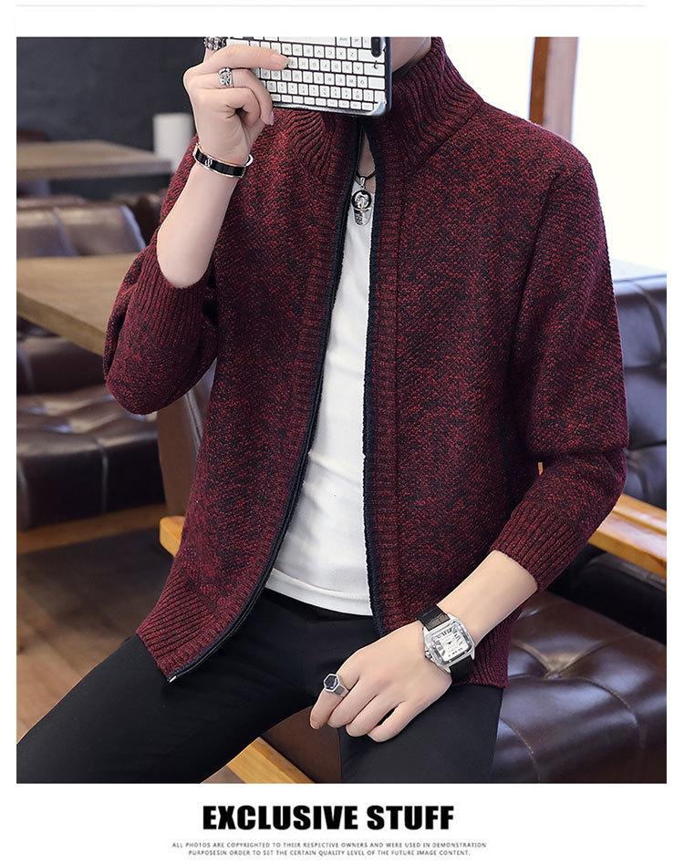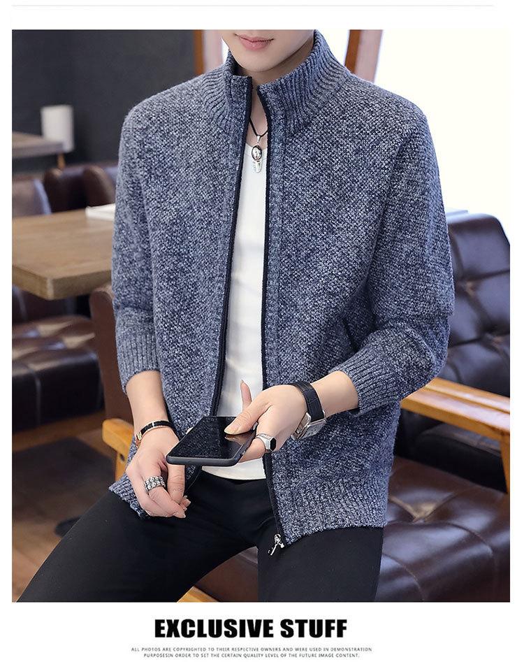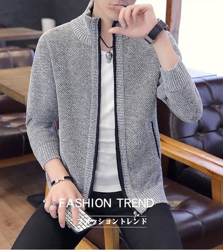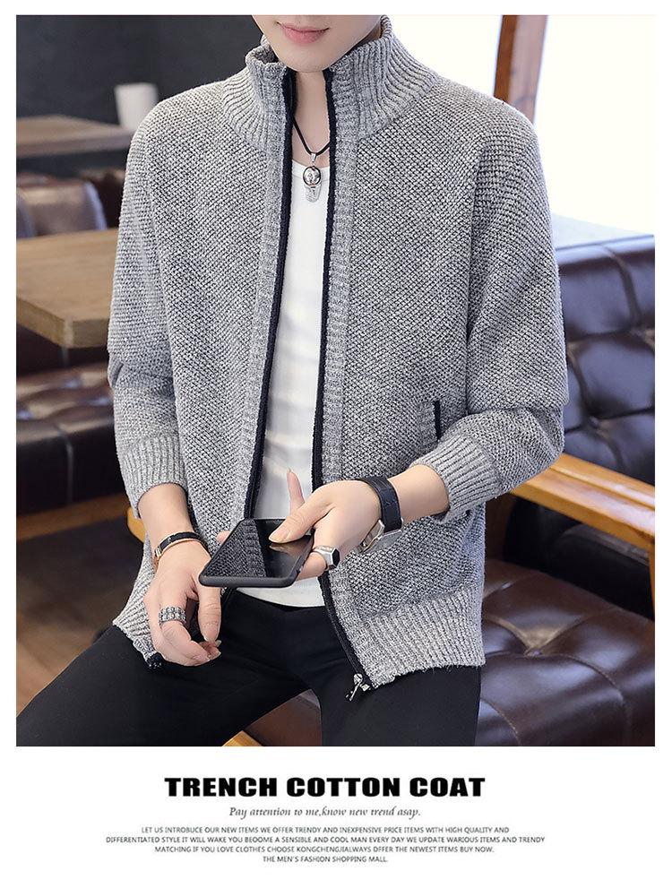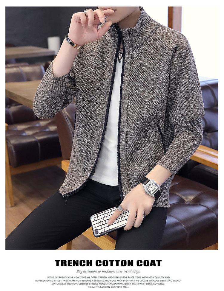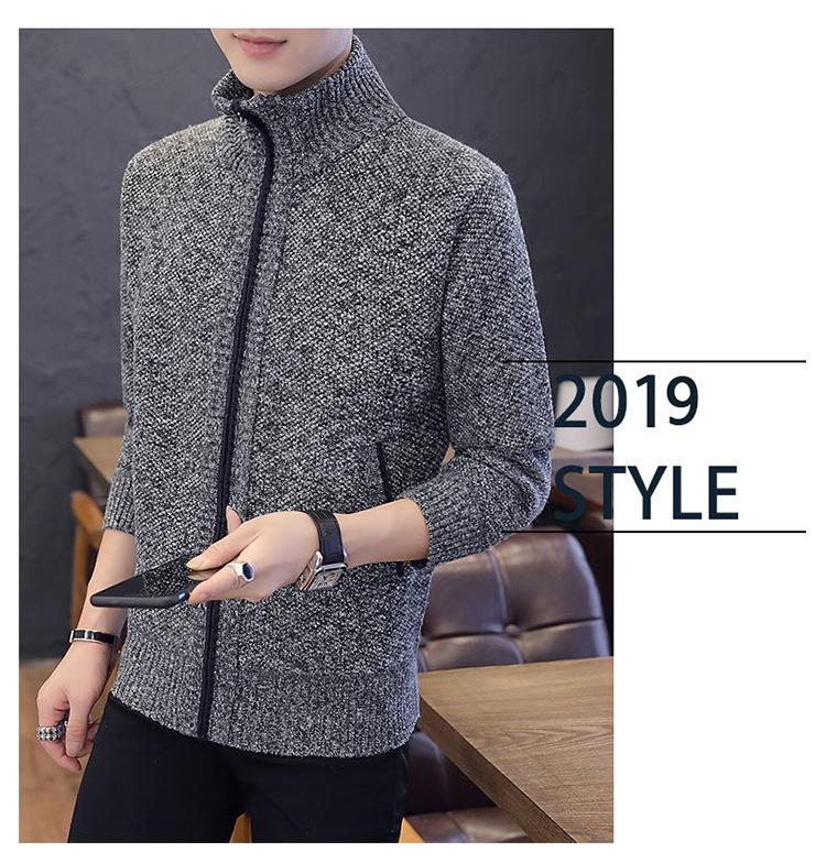 Suéter grueso con forro polar para hombre, entrega transfronteriza, suéter de estilo coreano ajustado de moda, abrigo para hombre, cárdigan con cremallera