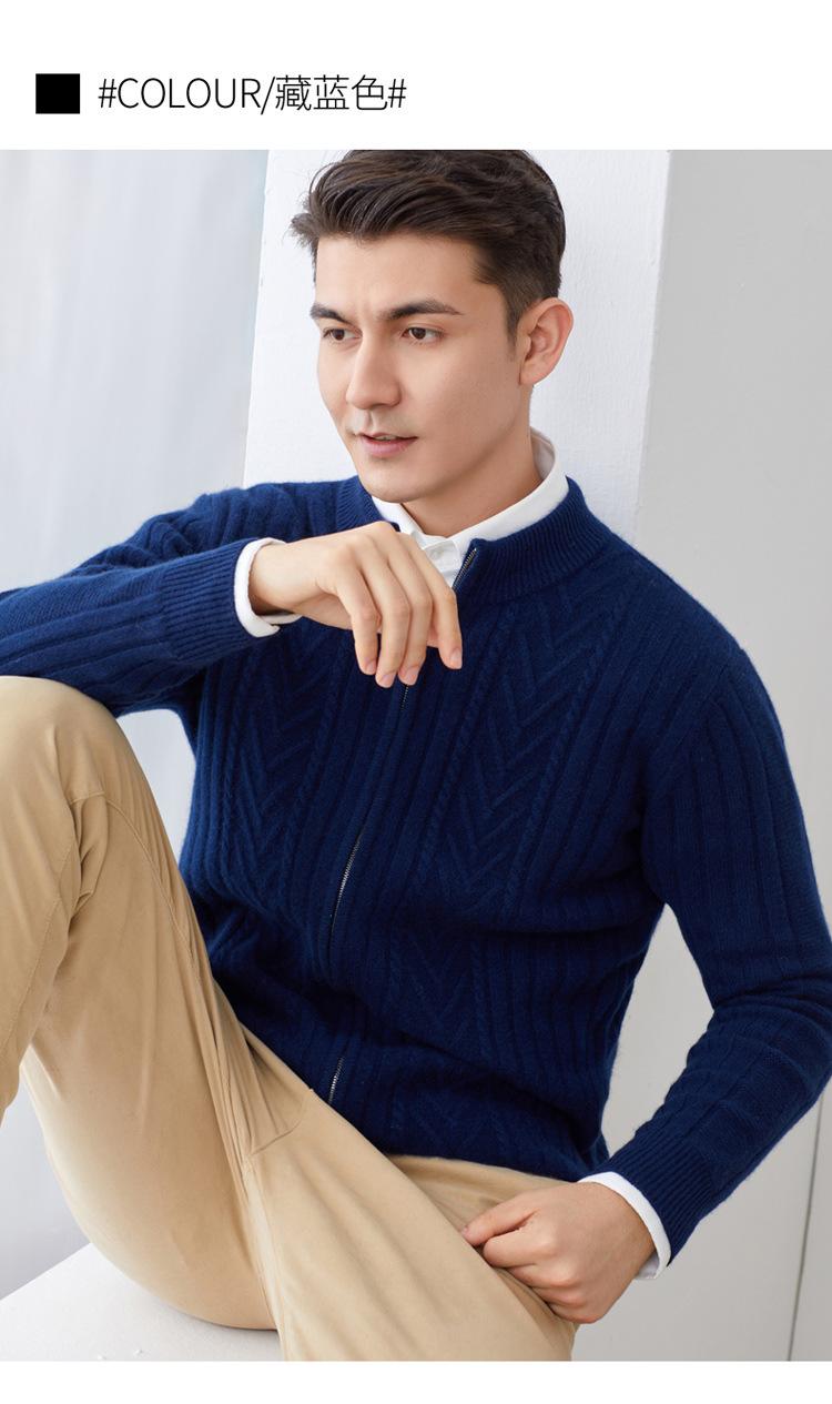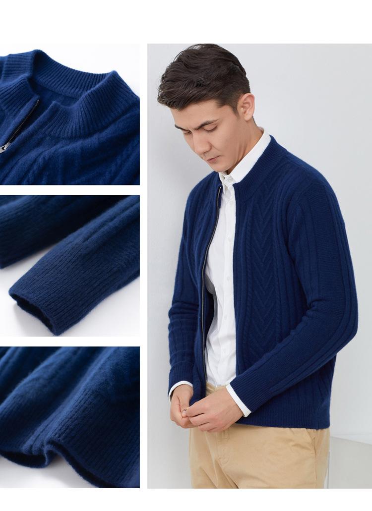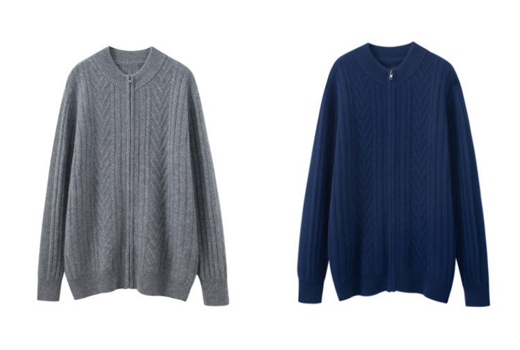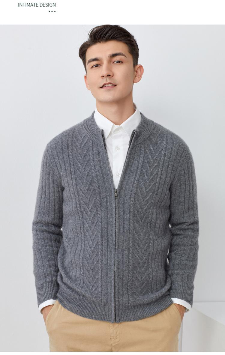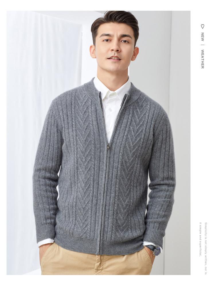 Cárdigan de cachemira 100% pura con cremallera para hombre, abrigo exterior suelto y trenzado informal, grueso, 2022