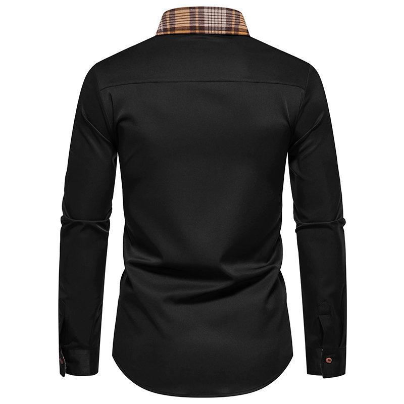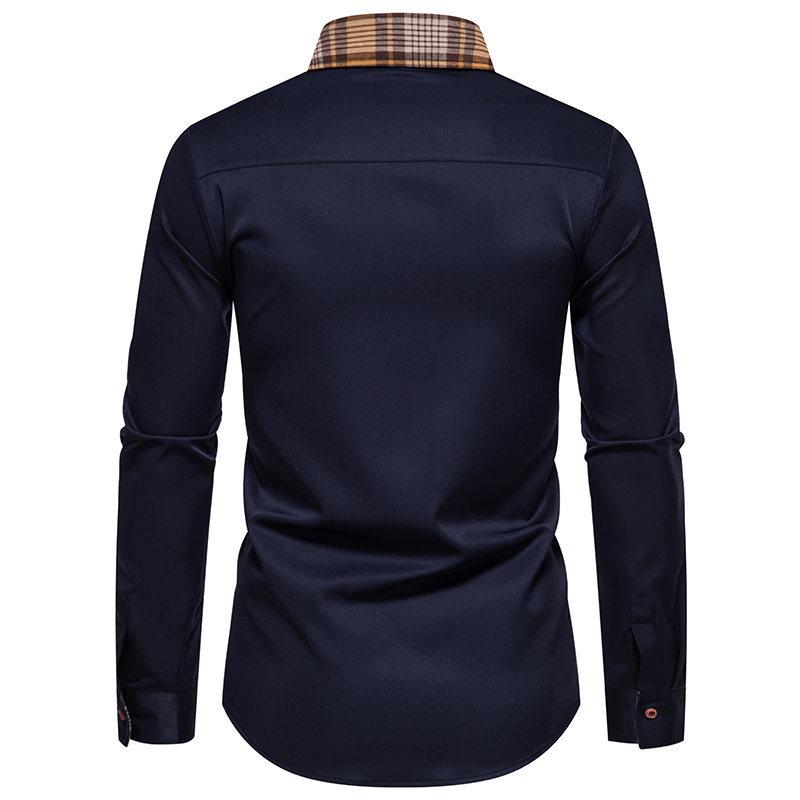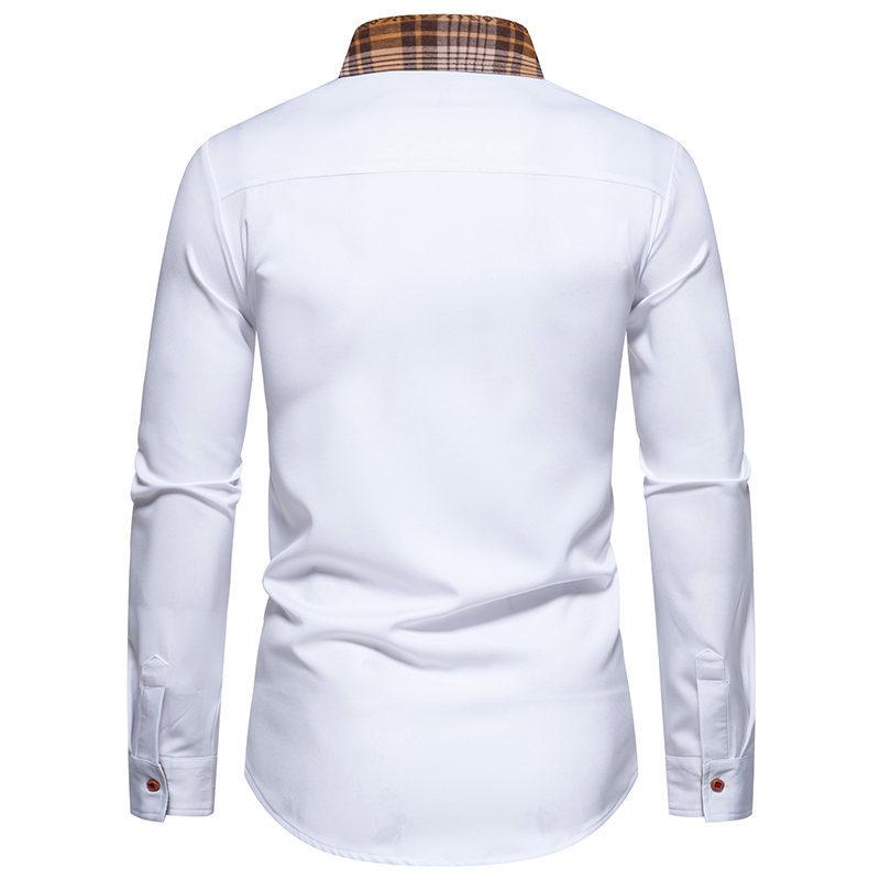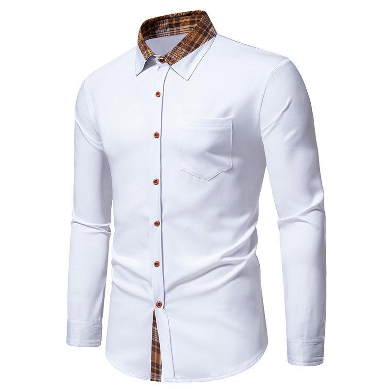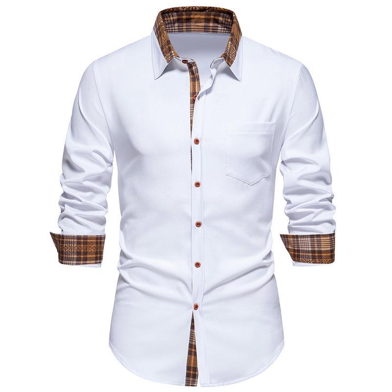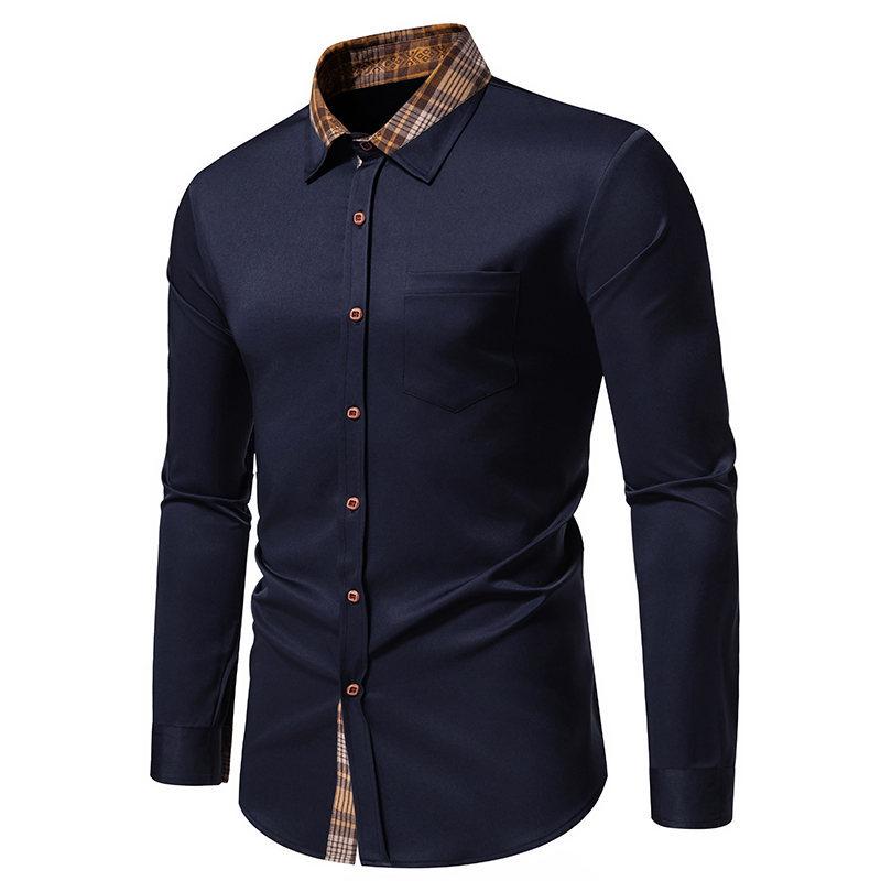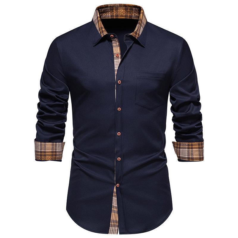 Camisa de hombre Amazon primavera y verano nueva moda transfronteriza talla europea Camisa de manga larga para hombre con costuras de color en contraste a cuadros