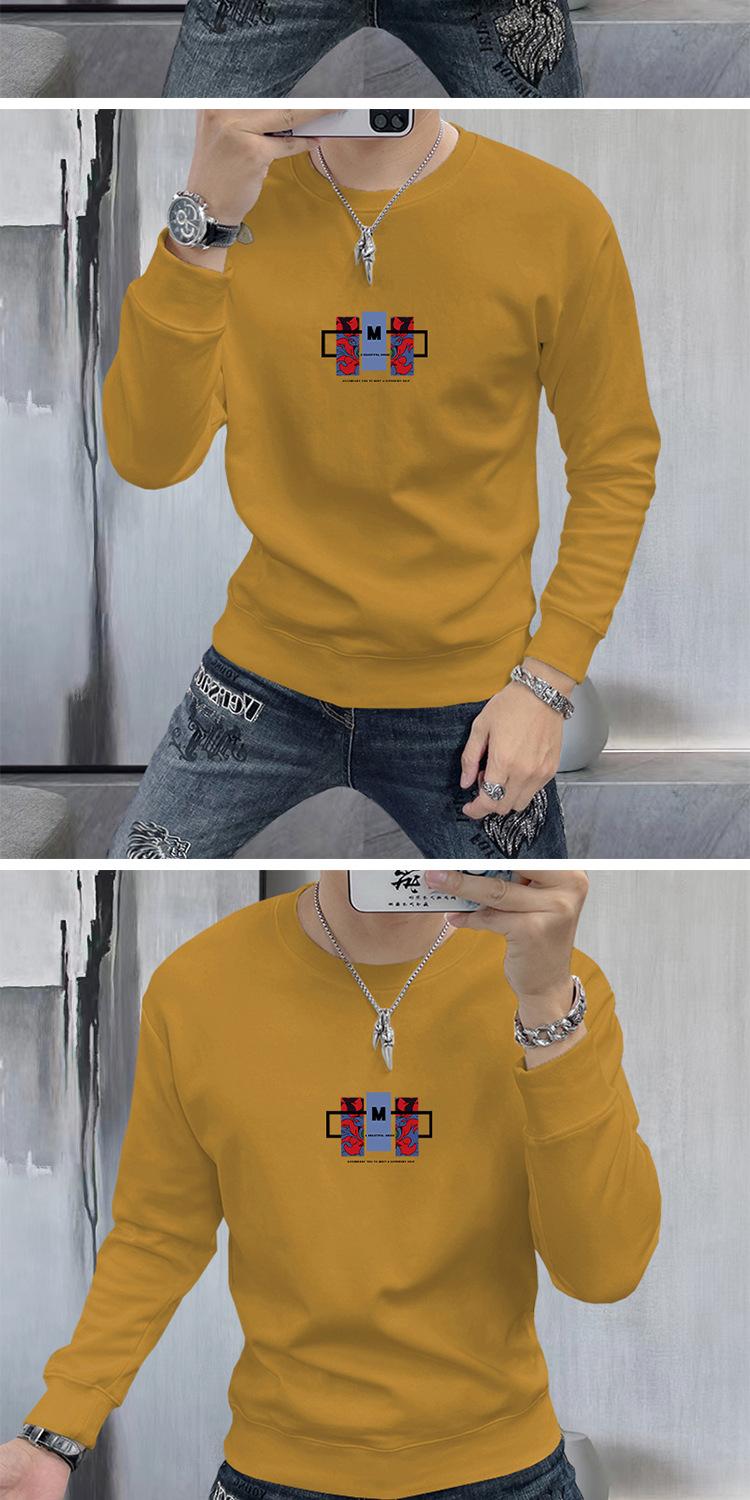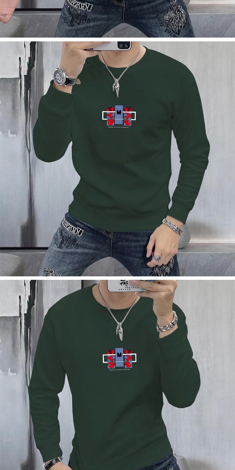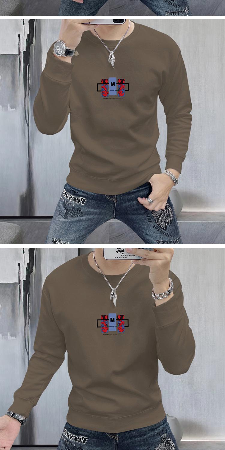 Suéter para hombre primavera y otoño top estampado jersey camisa básica corte ajustado ropa interior ropa exterior moda social camiseta casual para hombre