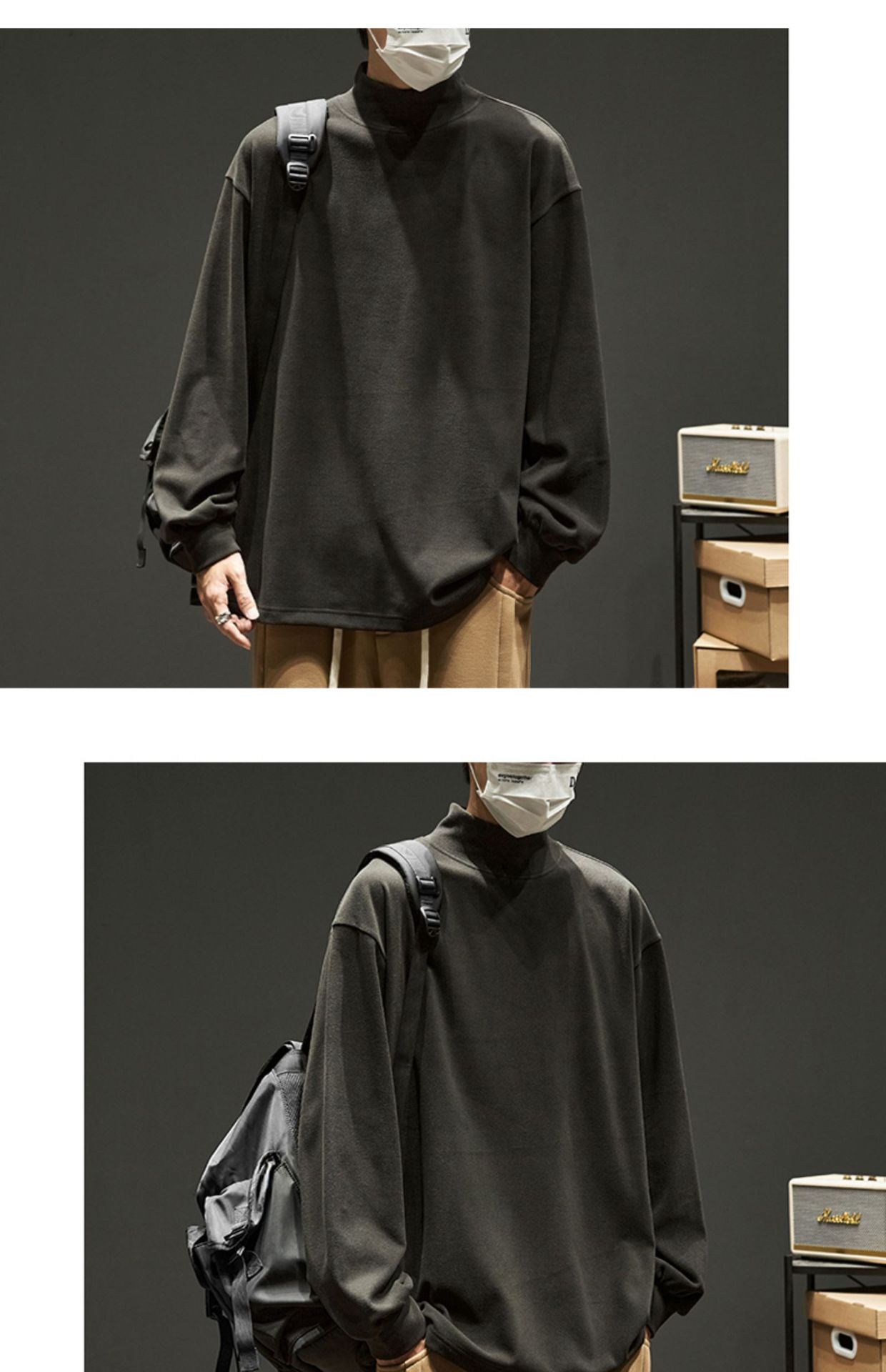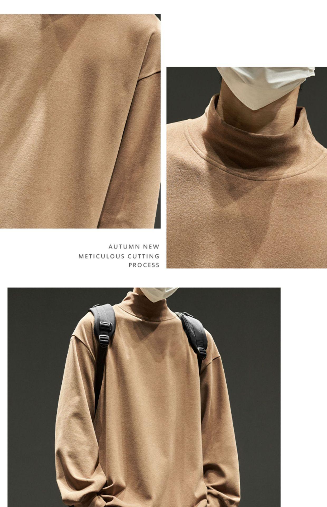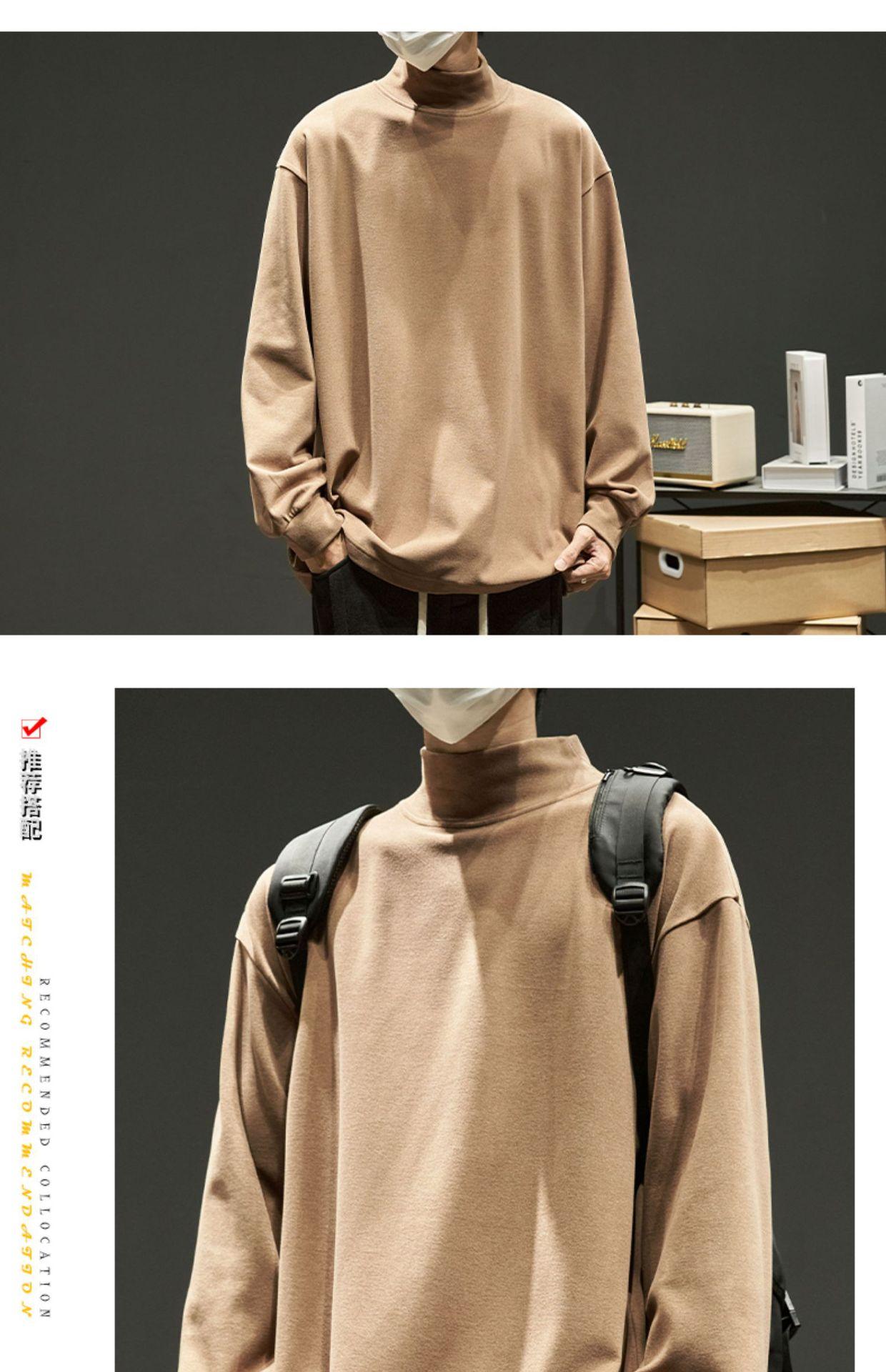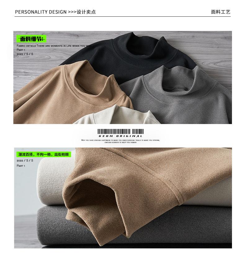 Camisa de terciopelo para hombre, camiseta de manga larga con cuello alto y forro polar de otoño e invierno, ropa interior de otoño para hombre, top de otoño