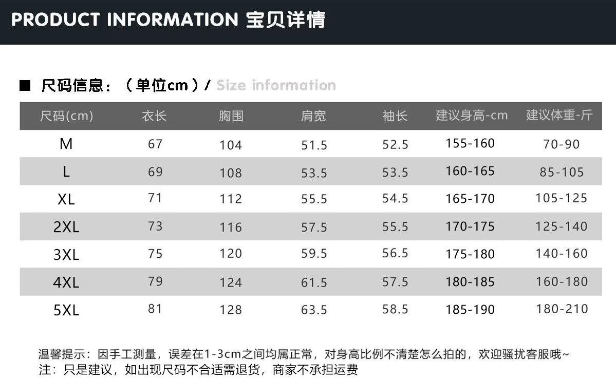 M, L, XL, 2XL, 3XL, 4XL, 5XL