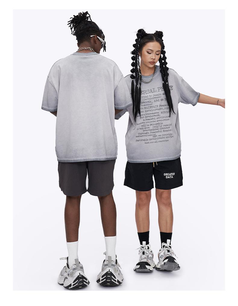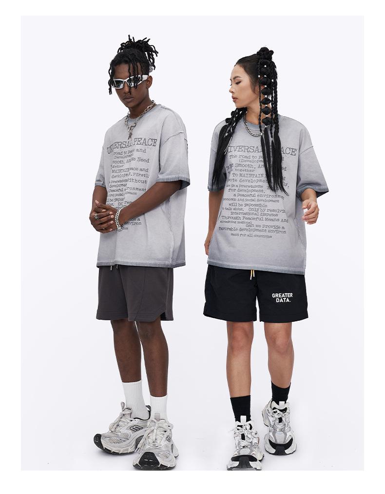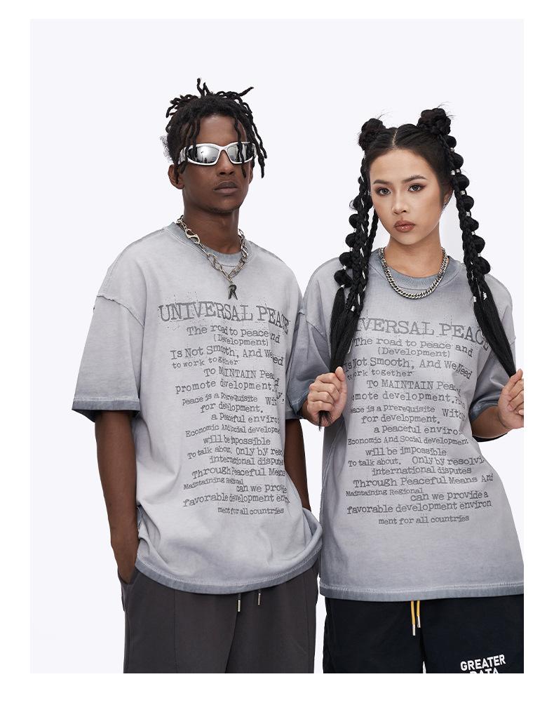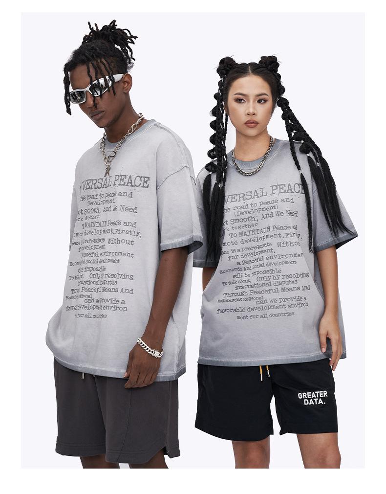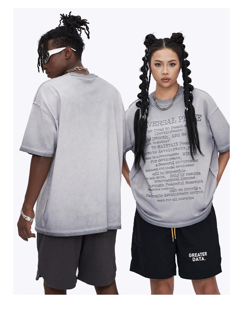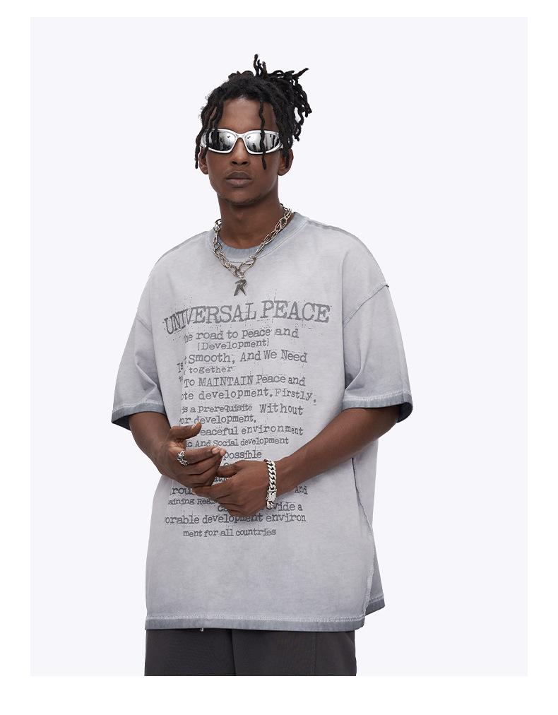 RFSD - Camiseta retro batik desgastada para hombre, primavera/verano 2024, nueva marca de moda, estampado de letras, manga corta suelta