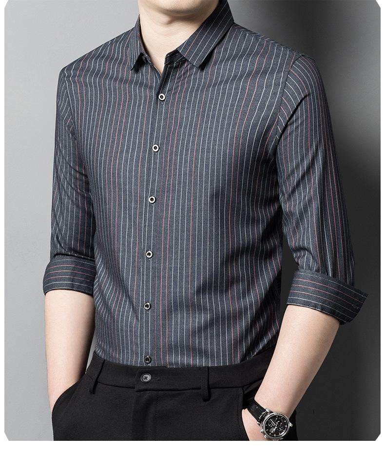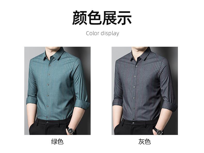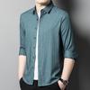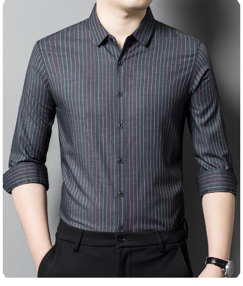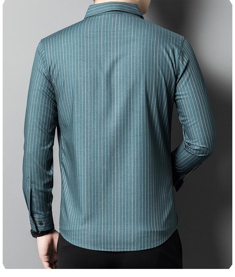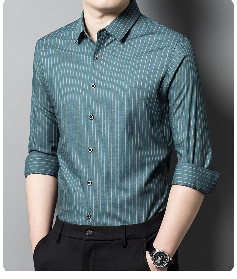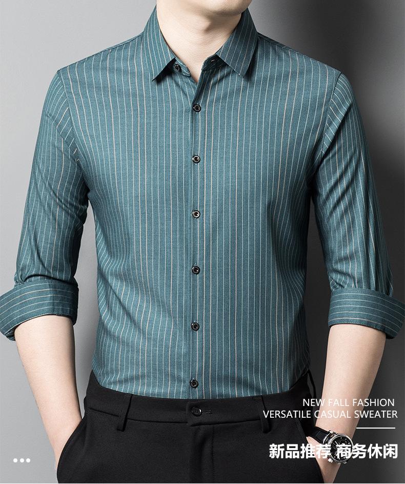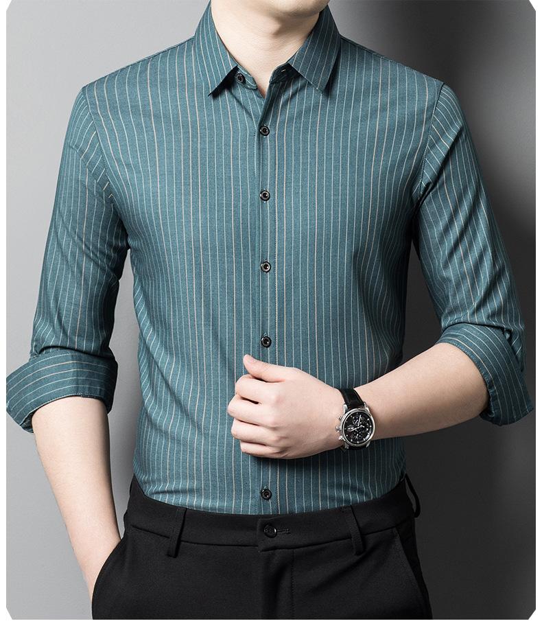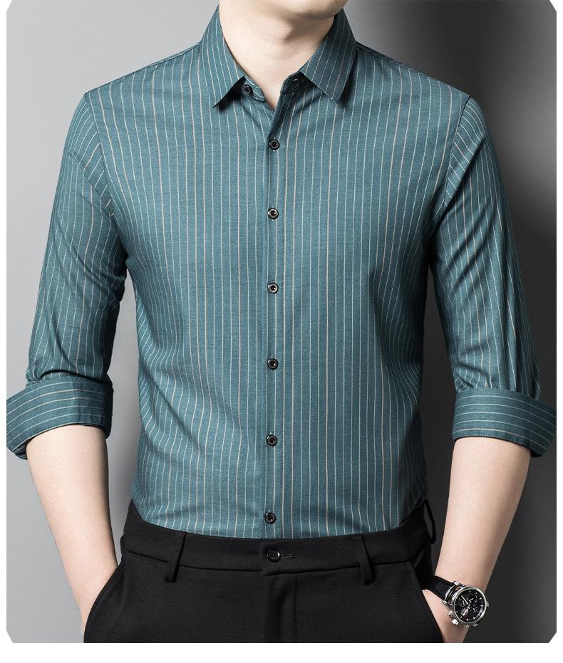 Compra Camisa de Manga Larga Rayada Verde de Cuello Cuadrado para Hombre Ajuste Slim Primavera 2024 Ropa para Papá de Mediana Edad Cómoda y Elástica al por mayor en Joom.pro