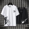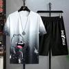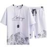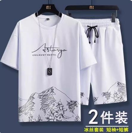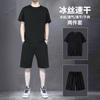 Traje deportivo informal de verano para hombre, camiseta de manga corta de seda de hielo, pantalones cortos de cinco puntos, conjunto de dos piezas, suelto, talla grande, un conjunto