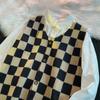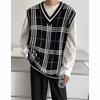 Suéter sin mangas a cuadros de otoño para hombre, estilo Hong Kong, chaleco holgado para uso exterior, chaleco de punto de moda coreana con cuello en V.