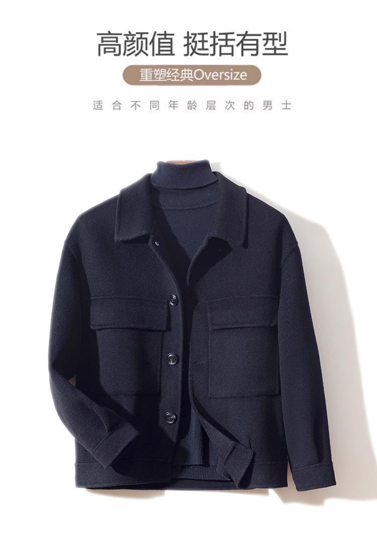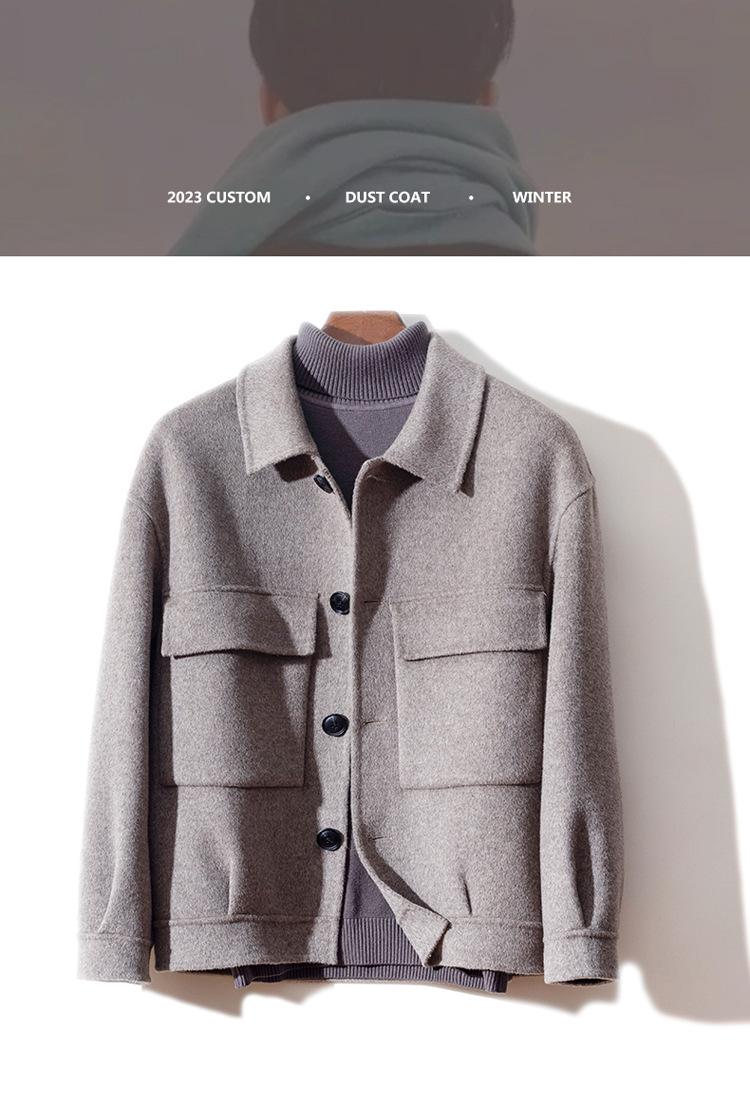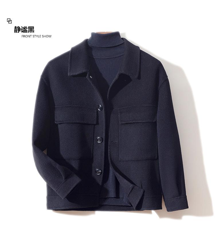 Chaqueta de lana de doble cara con solapa para hombre, nuevo abrigo de lana informal, top de moda para hombre, otoño e invierno, corto
