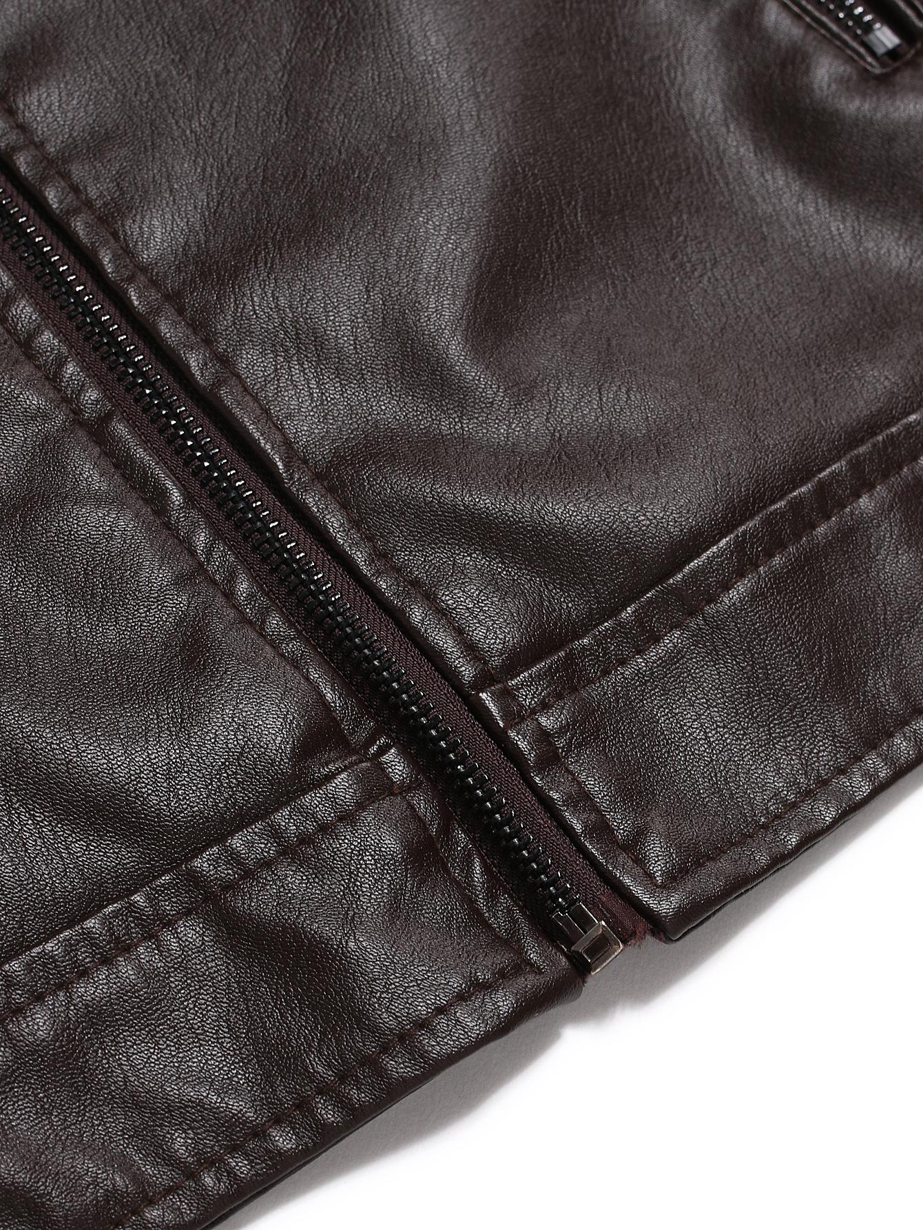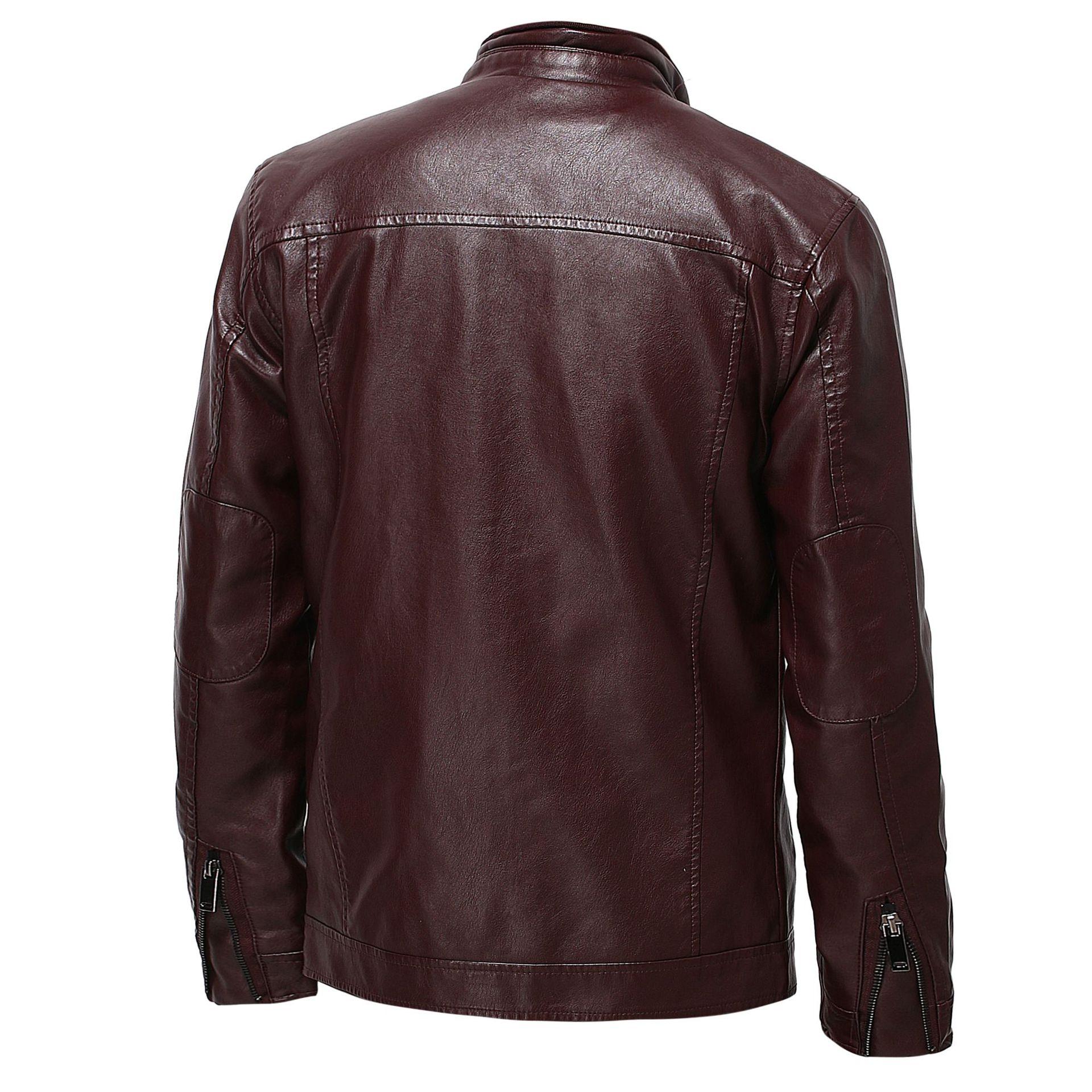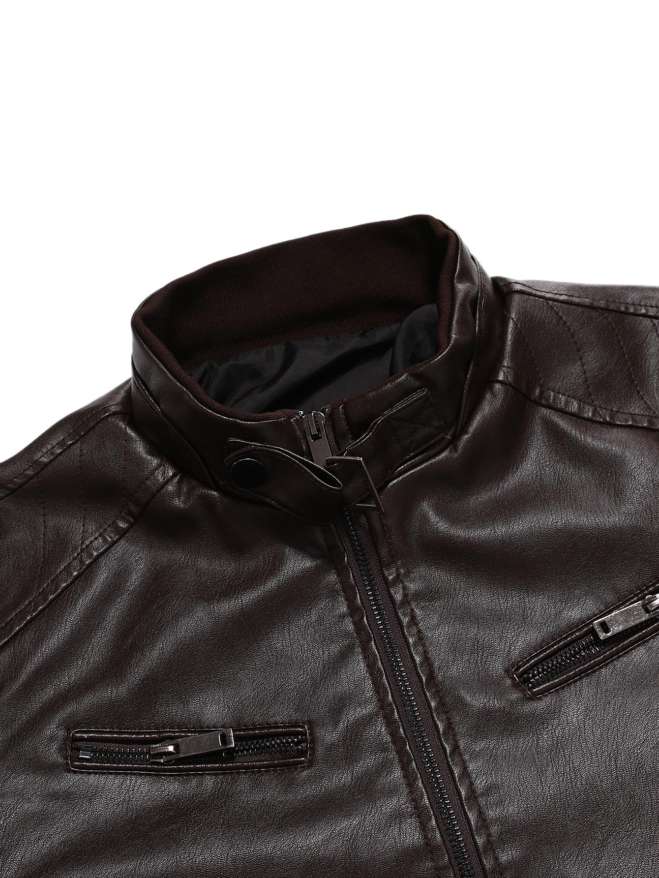 Compra En stock Temporada de Comercio Exterior Caballero de Negocios Cálido Cárdigan con Cremallera Bolsillo Decorado Ropa de Cuero PU Cuello Vertical Chaqueta de Cuero Slim al por mayor en Joom.pro