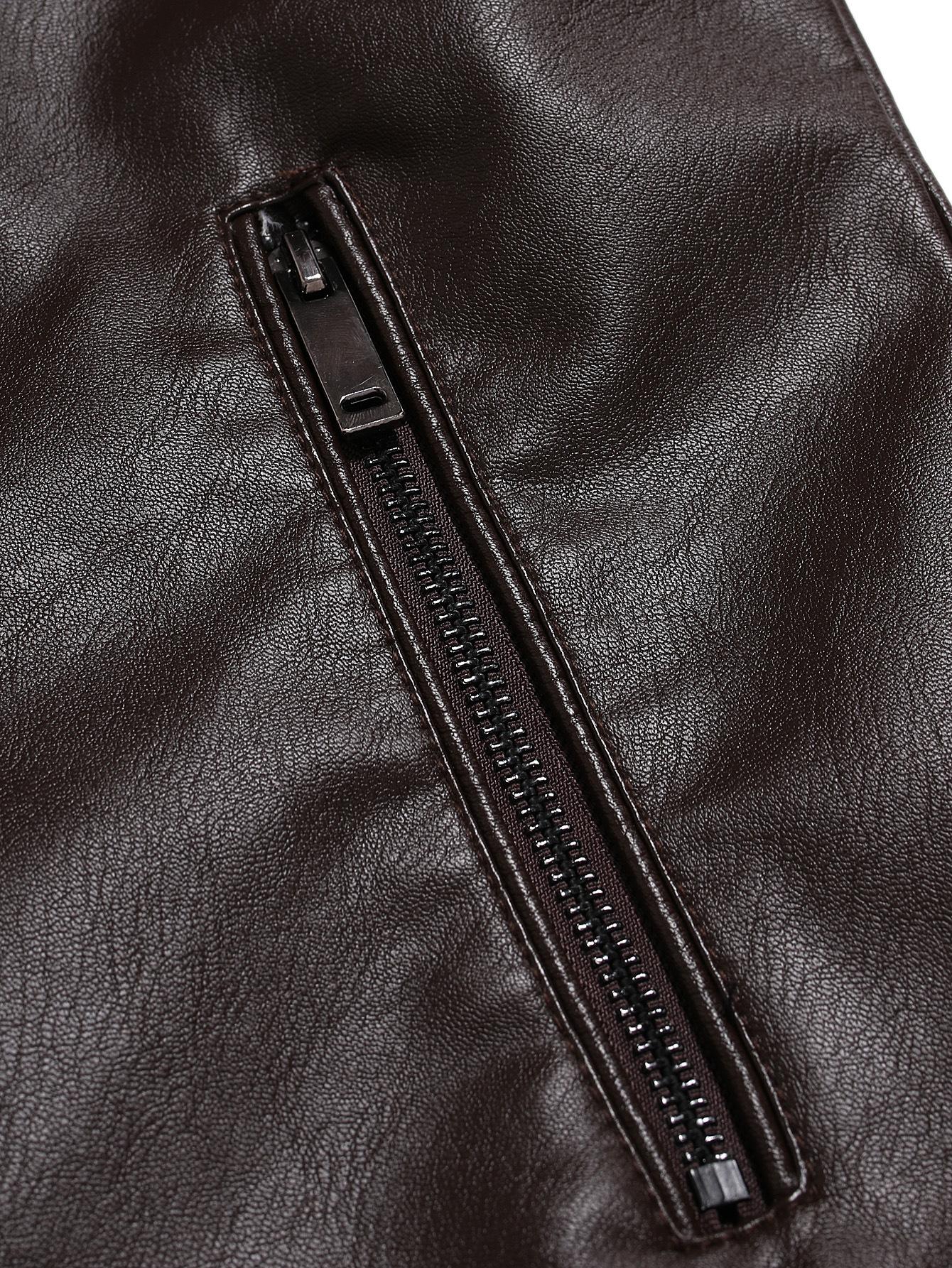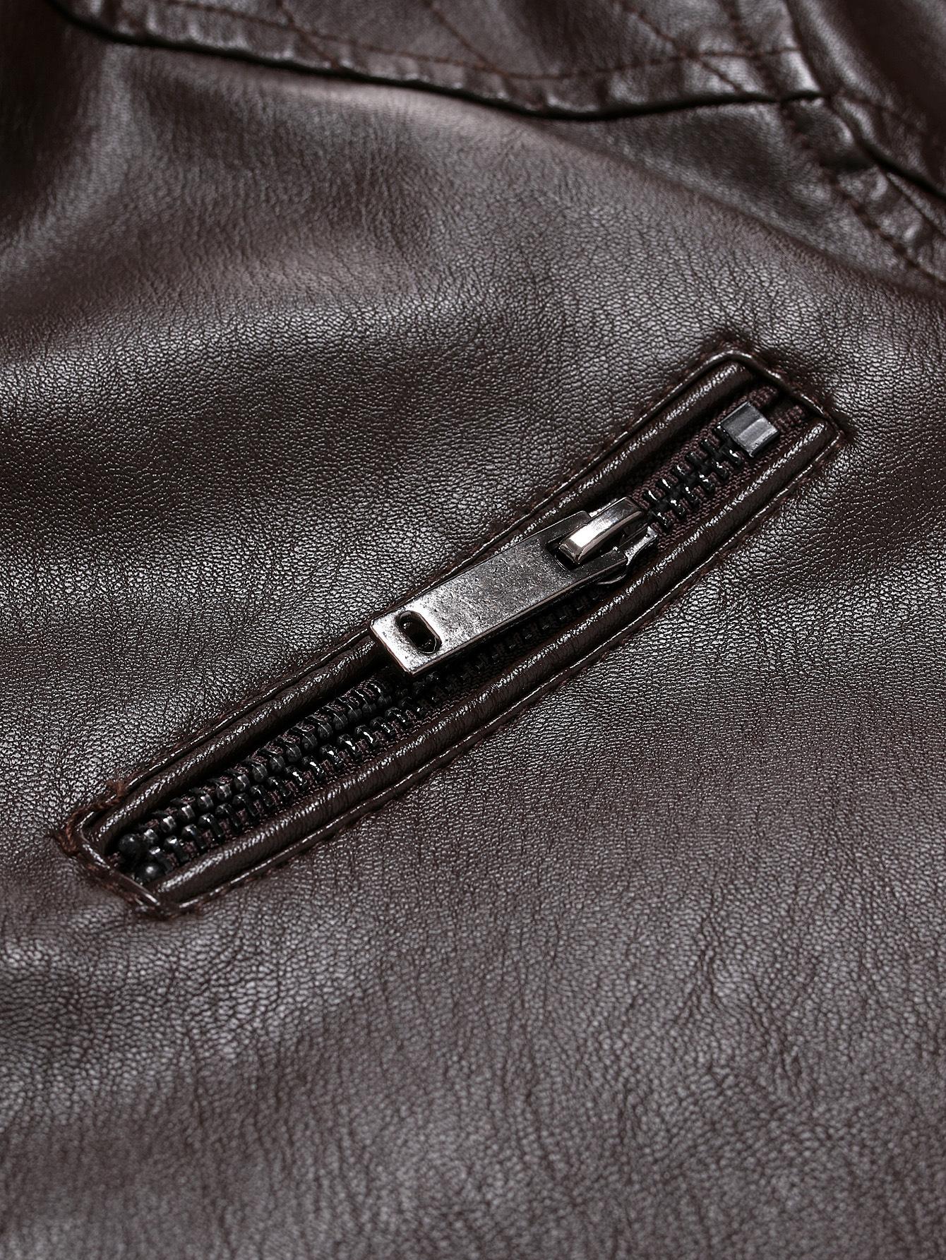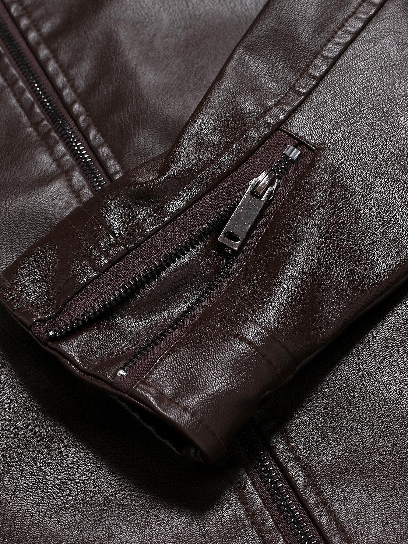 Compra En stock Temporada de Comercio Exterior Caballero de Negocios Cálido Cárdigan con Cremallera Bolsillo Decorado Ropa de Cuero PU Cuello Vertical Chaqueta de Cuero Slim al por mayor en Joom.pro