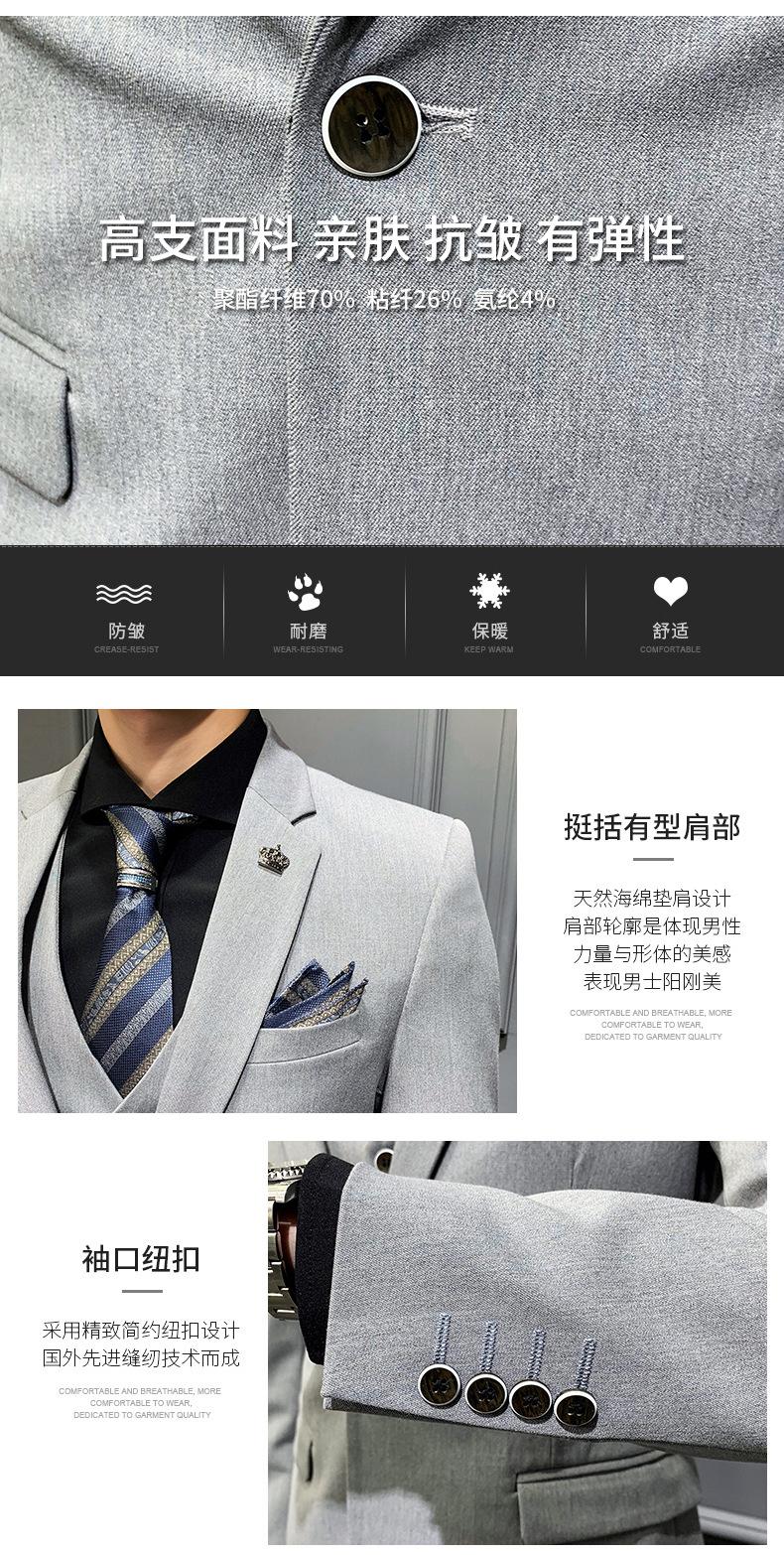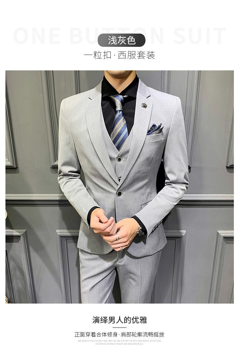 Traje de hombre, corte entallado, estilo coreano, informal, de negocios, de un solo botón, estilo occidental, formal, para novio, traje de tres piezas