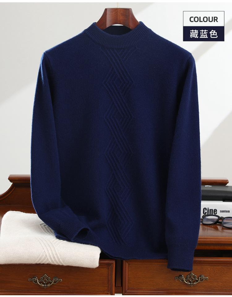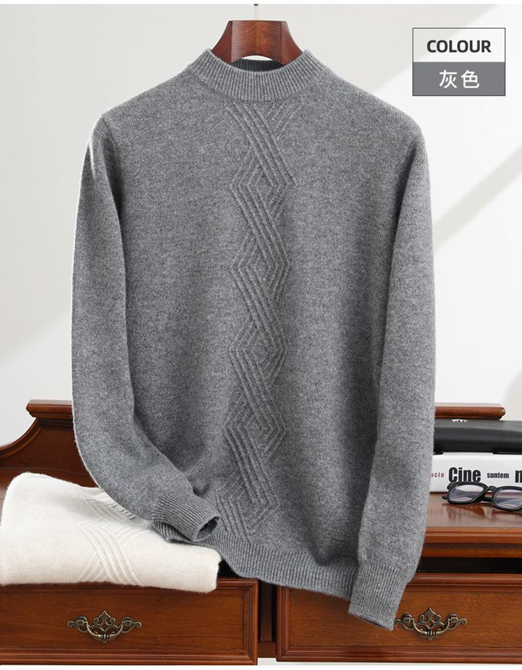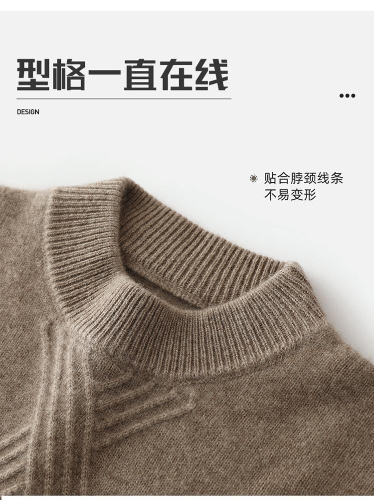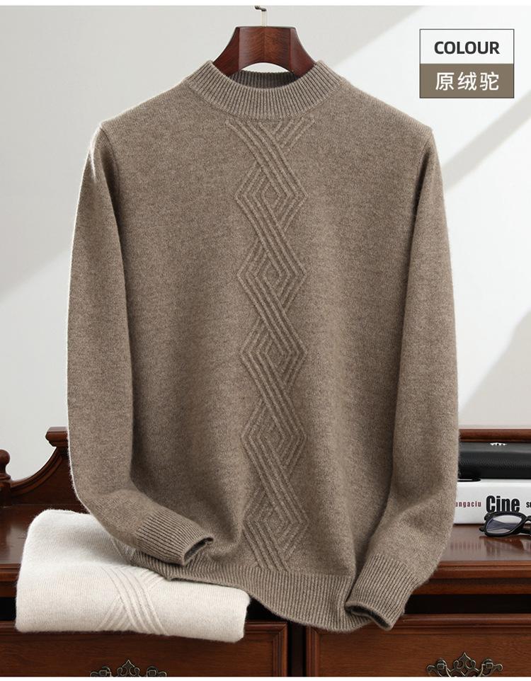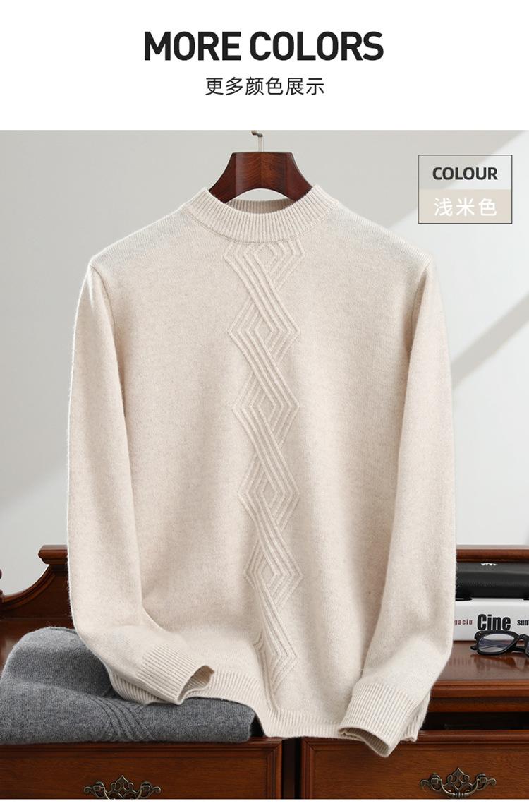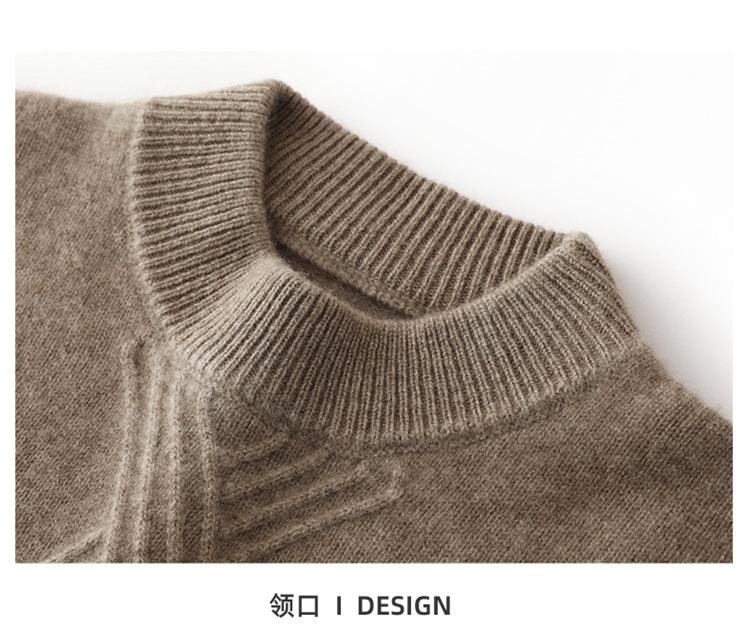 Suéter de cachemira para hombre 100% cachemira pura otoño e invierno nuevo suéter de punto suelto de manga larga engrosado con cuello alto medio