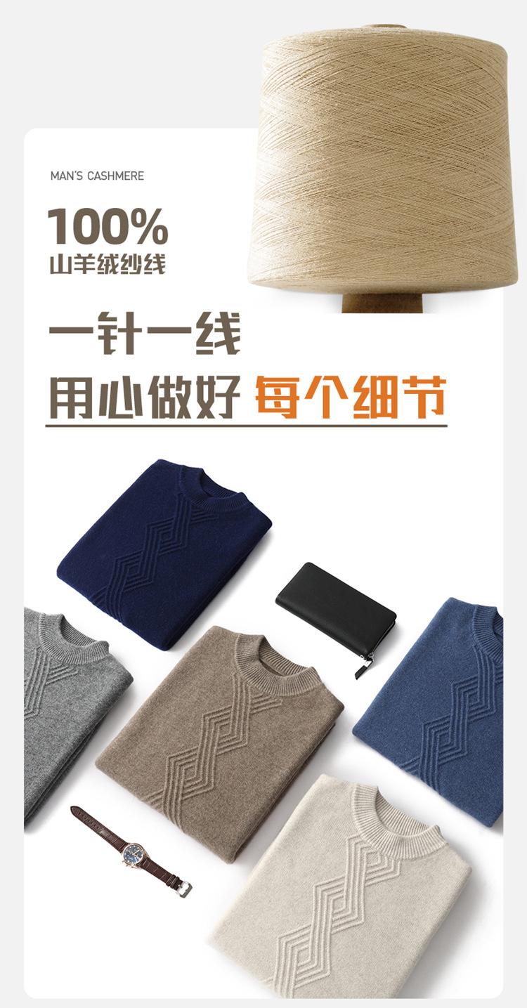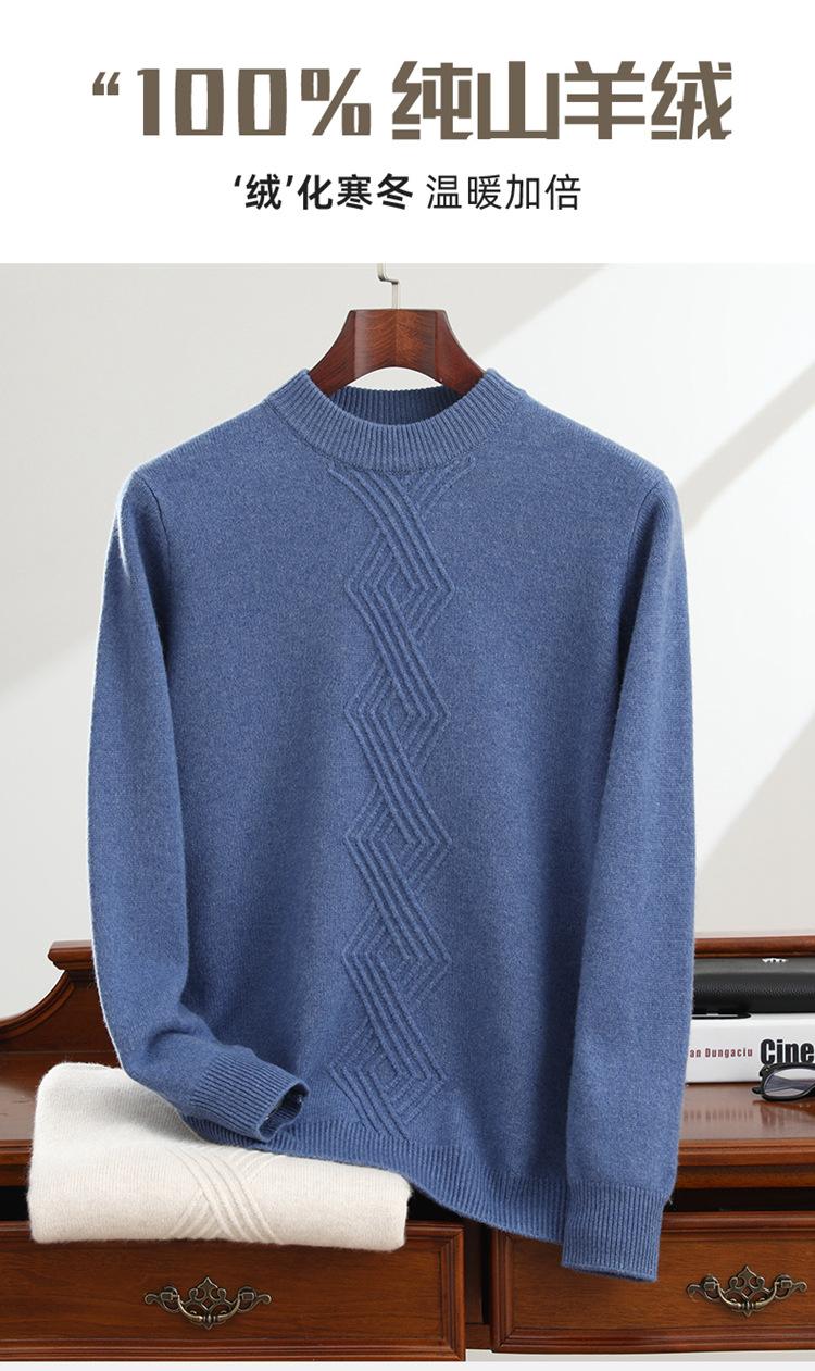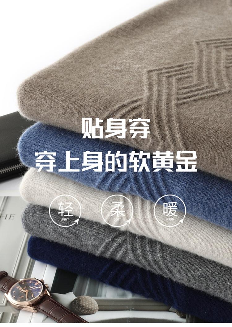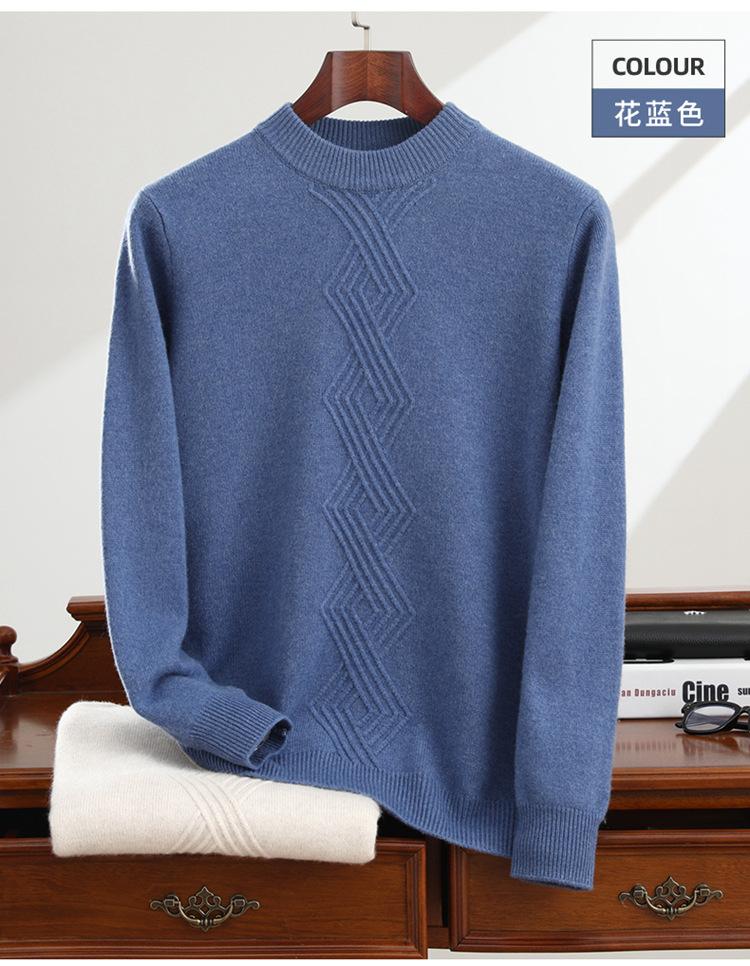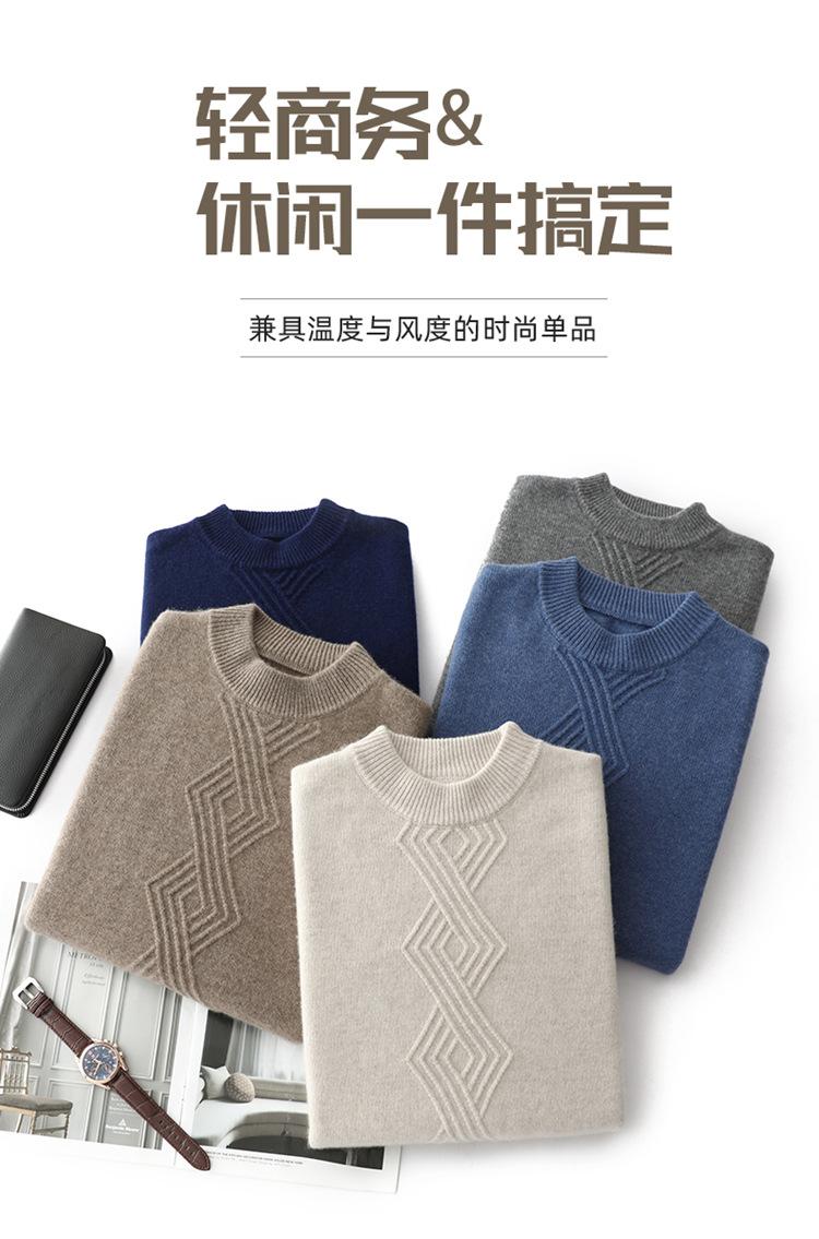 Suéter de cachemira para hombre 100% cachemira pura otoño e invierno nuevo suéter de punto suelto de manga larga engrosado con cuello alto medio
