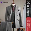Traje Azul Cruzado para Hombre Formal Moda Británica Traje de Padrino de Boda Traje Casual de Negocios Ropa de Hombre