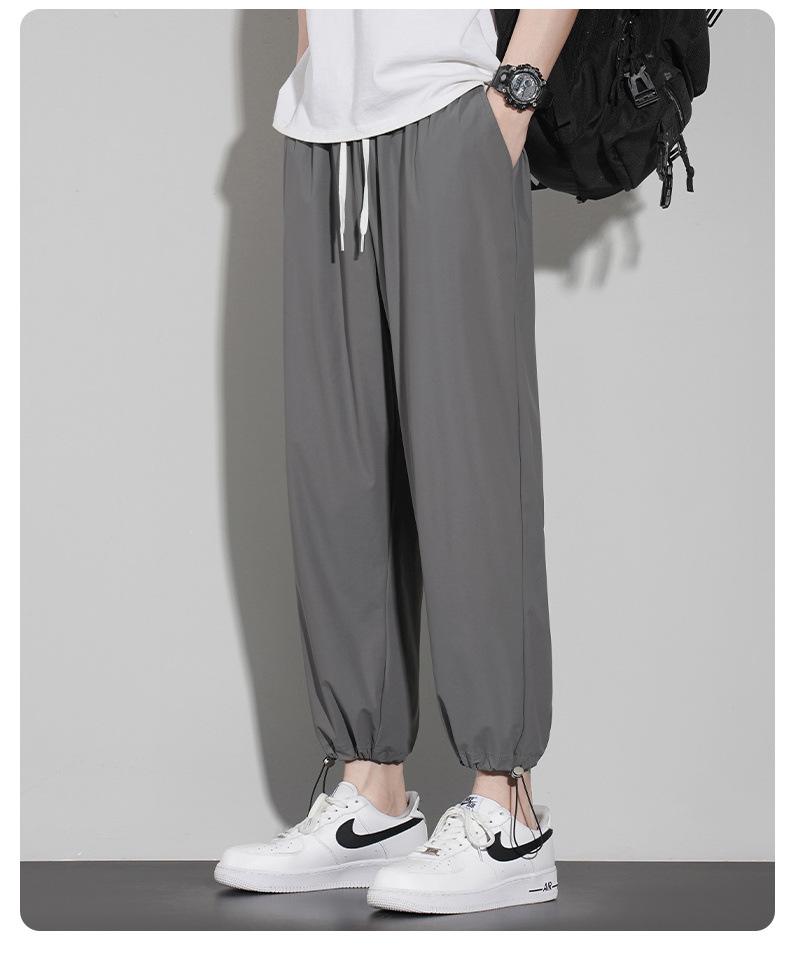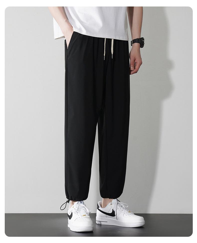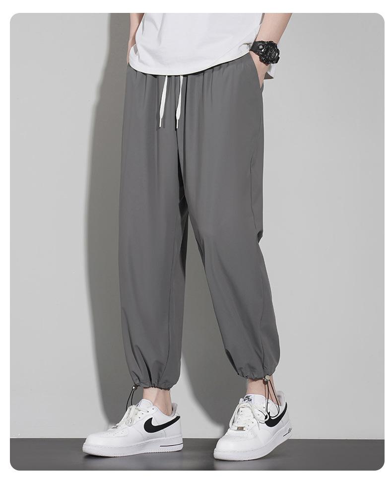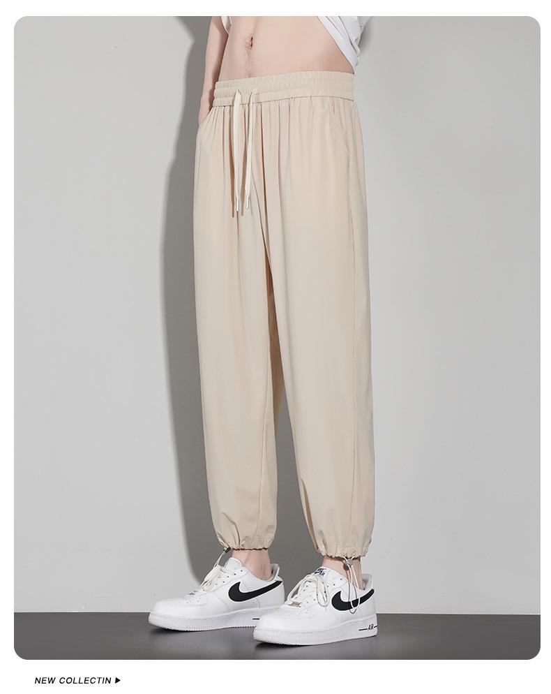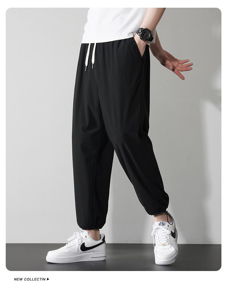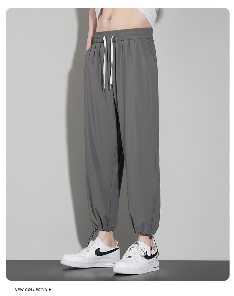 Pantalones casuales de seda de hielo para hombre, pantalones cortos finos de verano para hombre, pantalones deportivos holgados de marca de moda de secado rápido con cordones en los tobillos para hombre