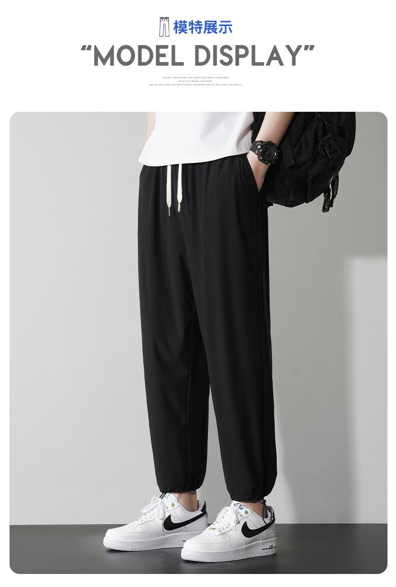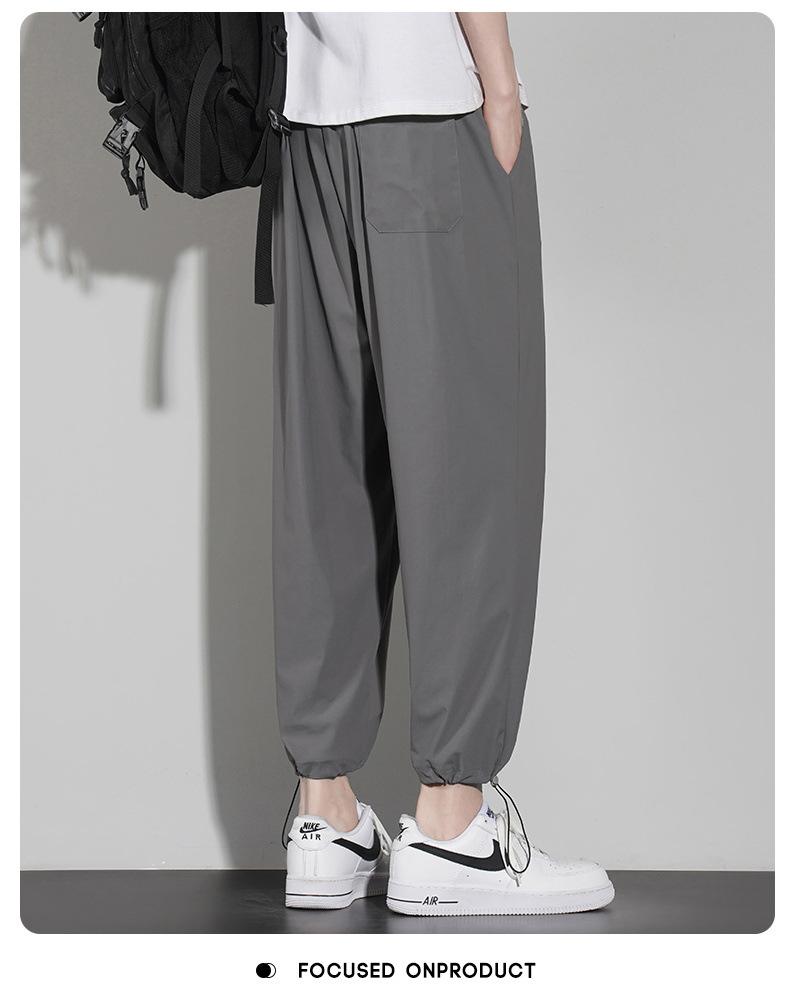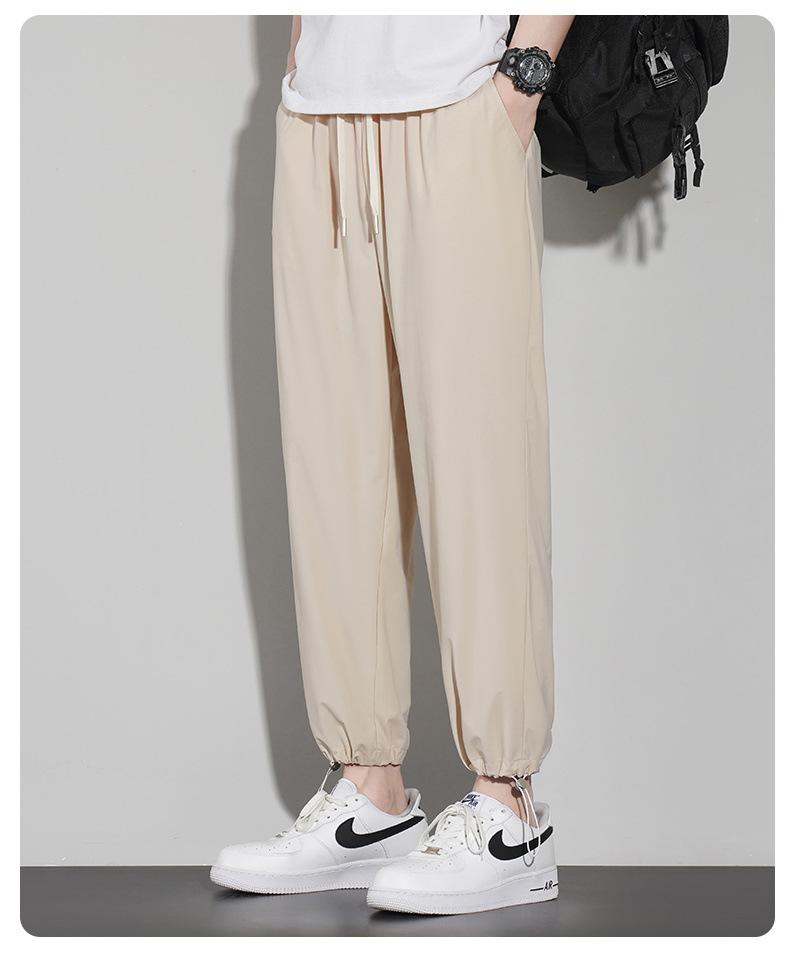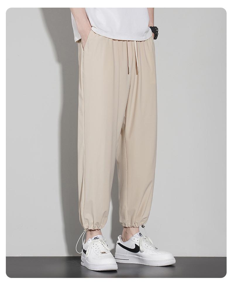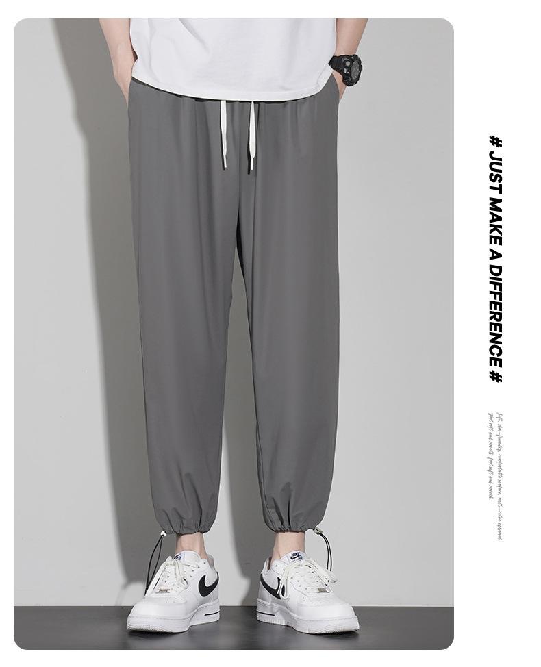 Pantalones casuales de seda de hielo para hombre, pantalones cortos finos de verano para hombre, pantalones deportivos holgados de marca de moda de secado rápido con cordones en los tobillos para hombre