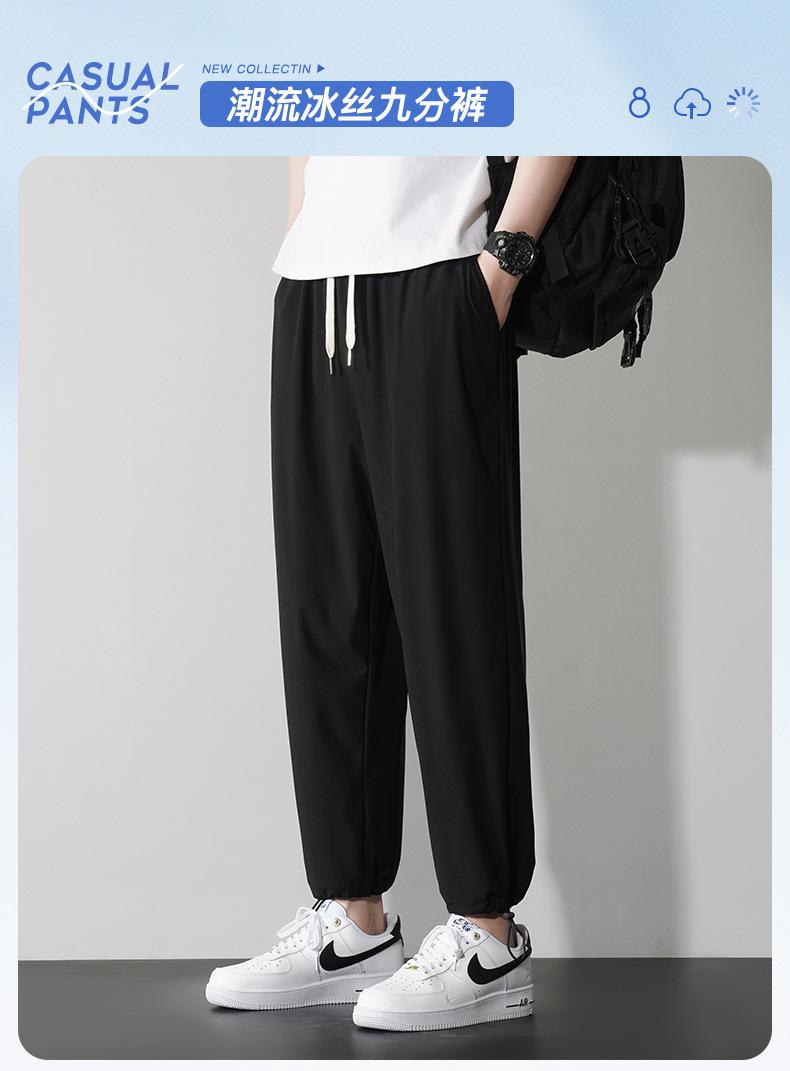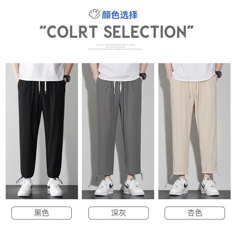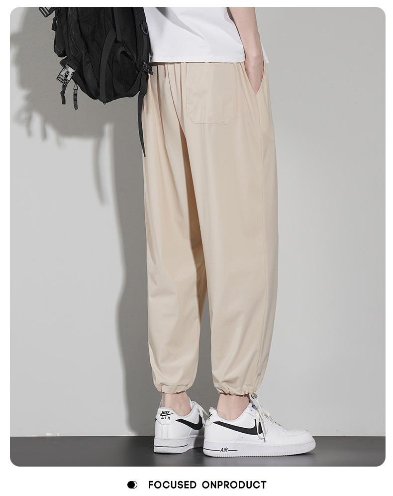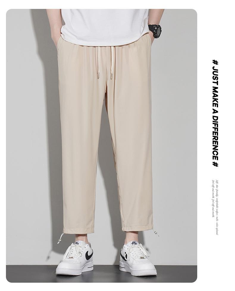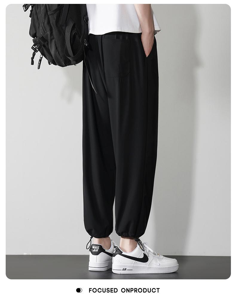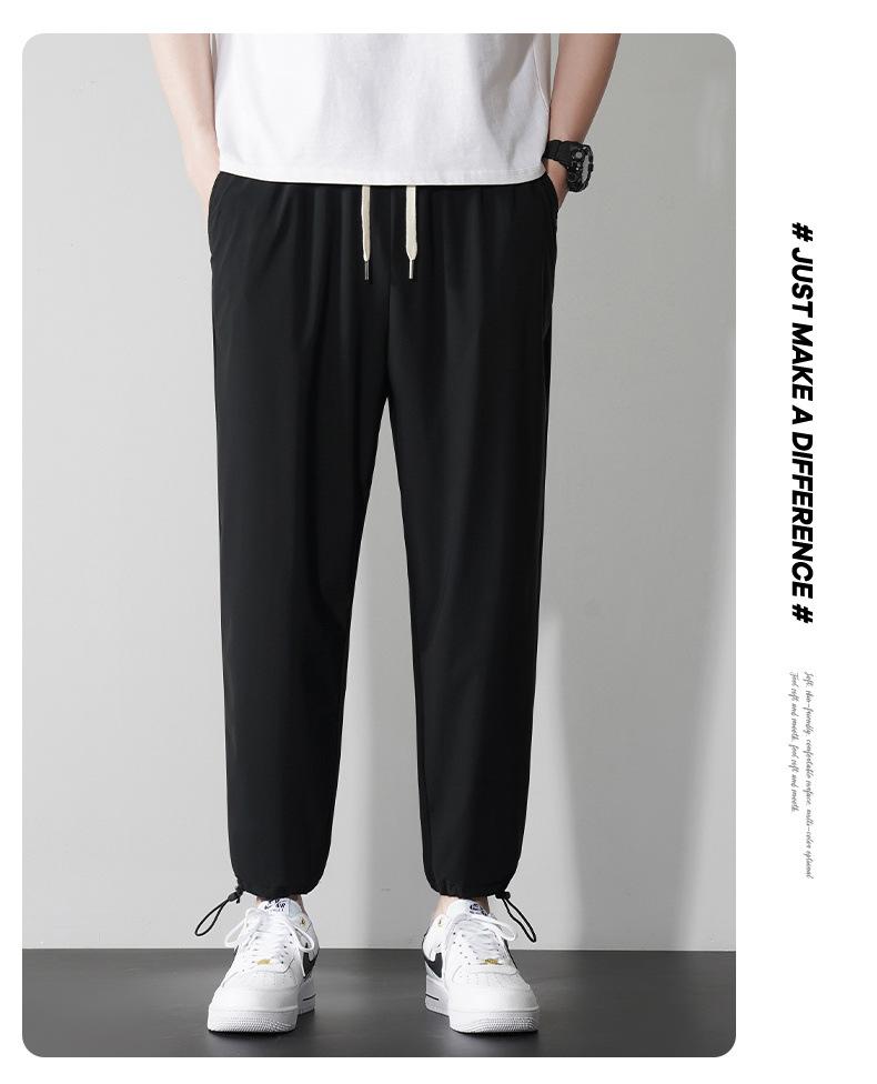 Pantalones casuales de seda de hielo para hombre, pantalones cortos finos de verano para hombre, pantalones deportivos holgados de marca de moda de secado rápido con cordones en los tobillos para hombre