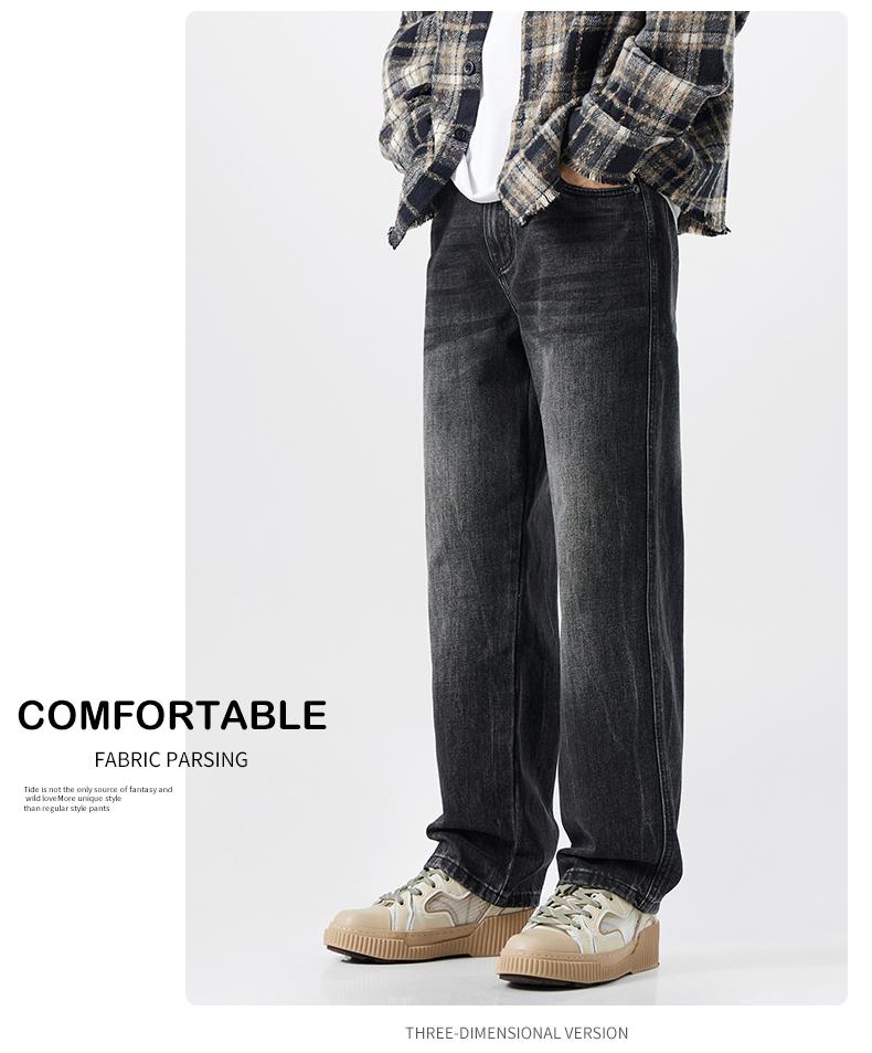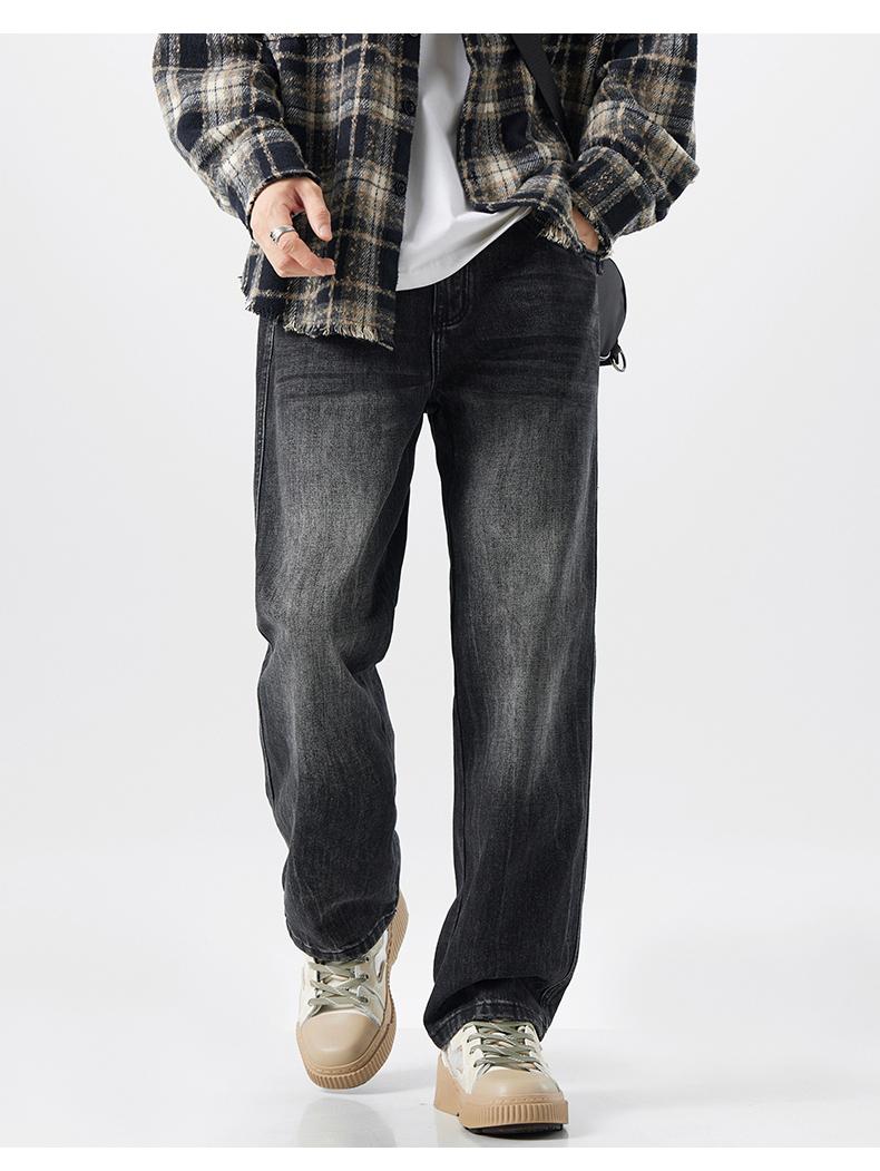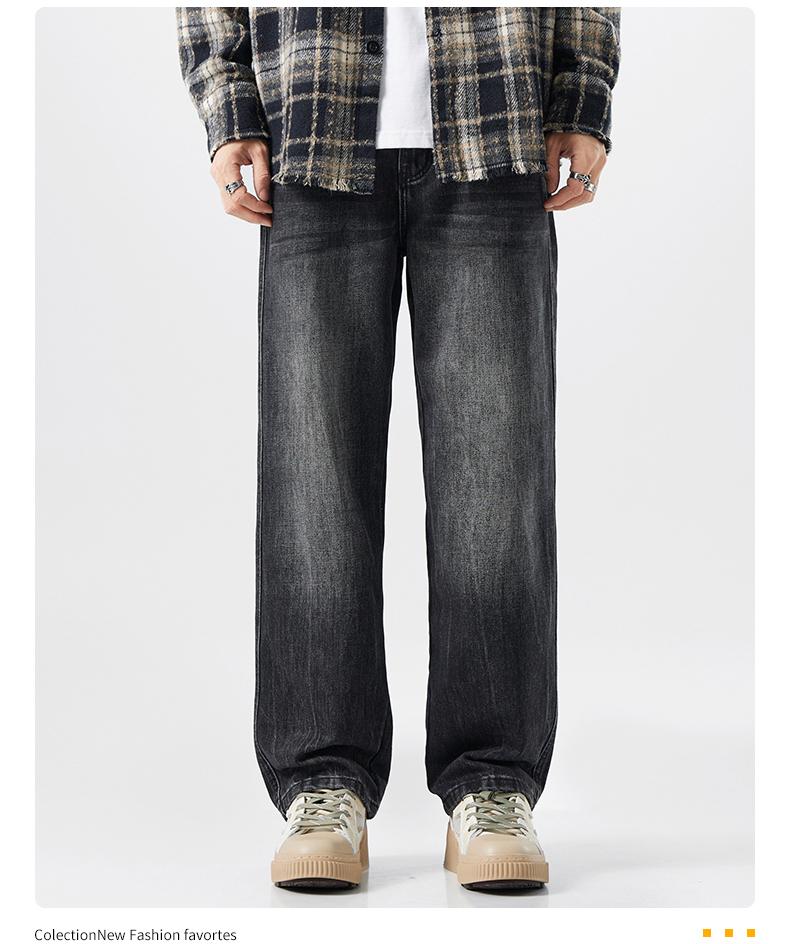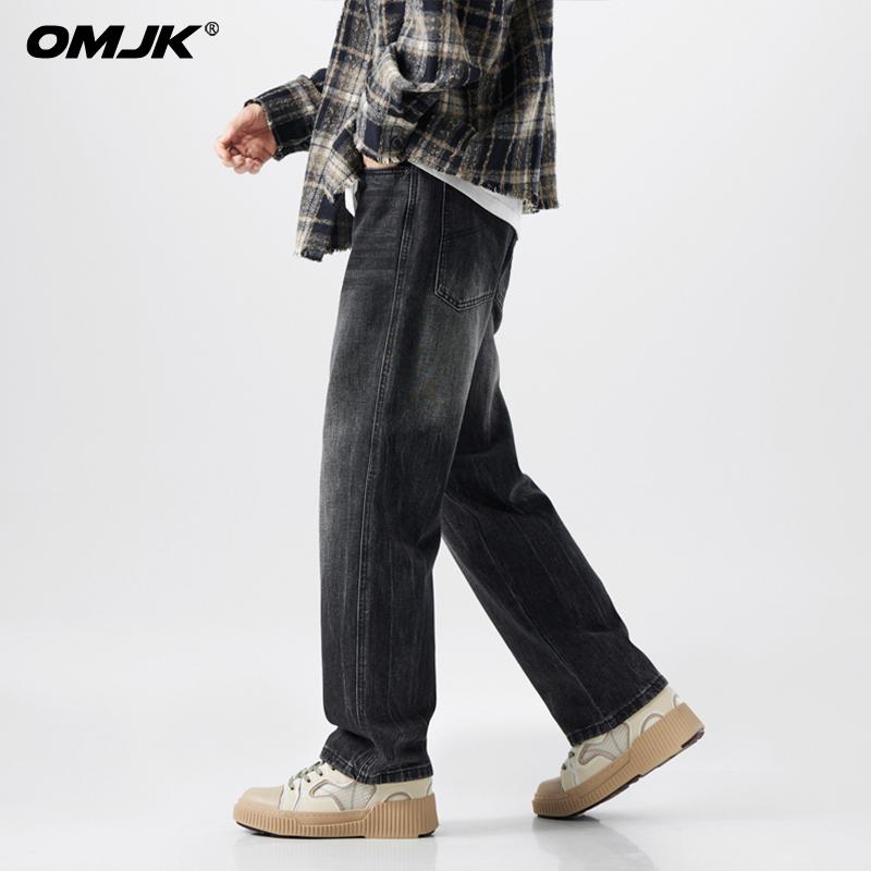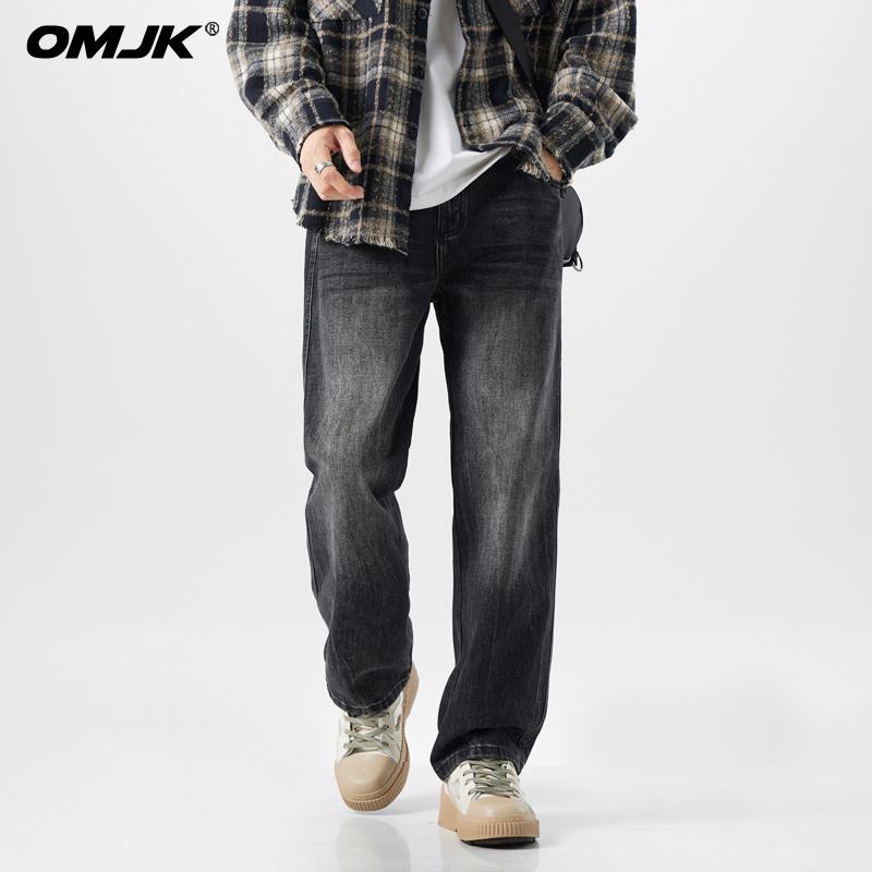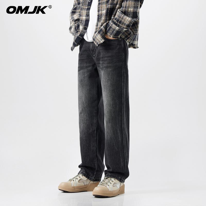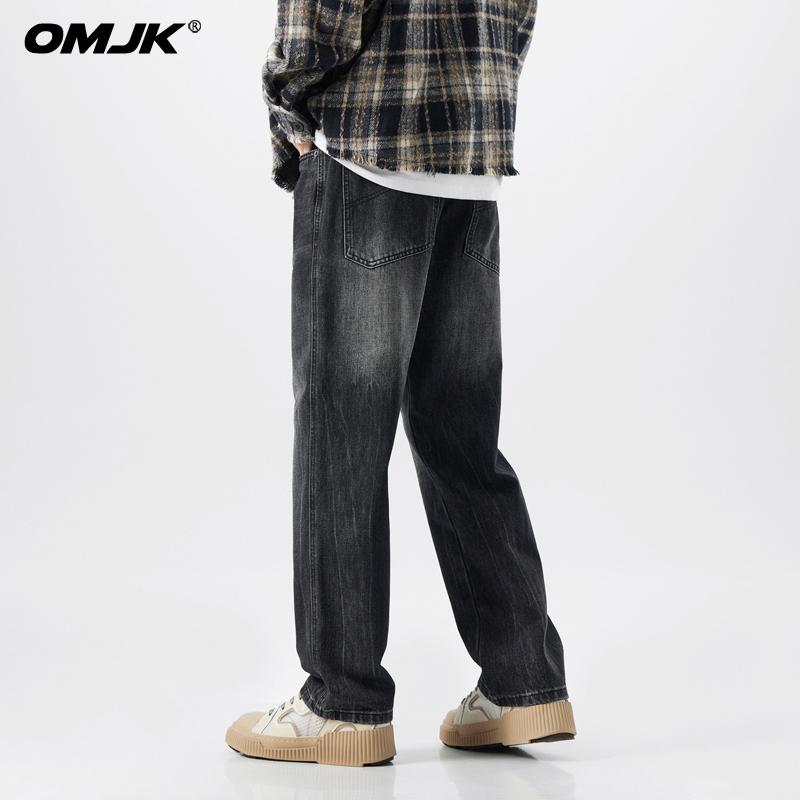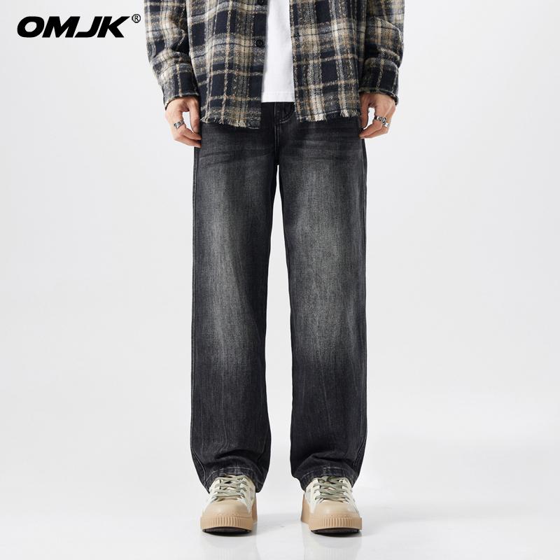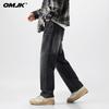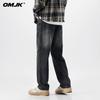 OMJK Jeans Lavados Estilo Americano High Street para Hombre Combinación Versátil Estilo Vibe Pantalones Rectos Holgados para Hombre Pantalones Negros para Hombre