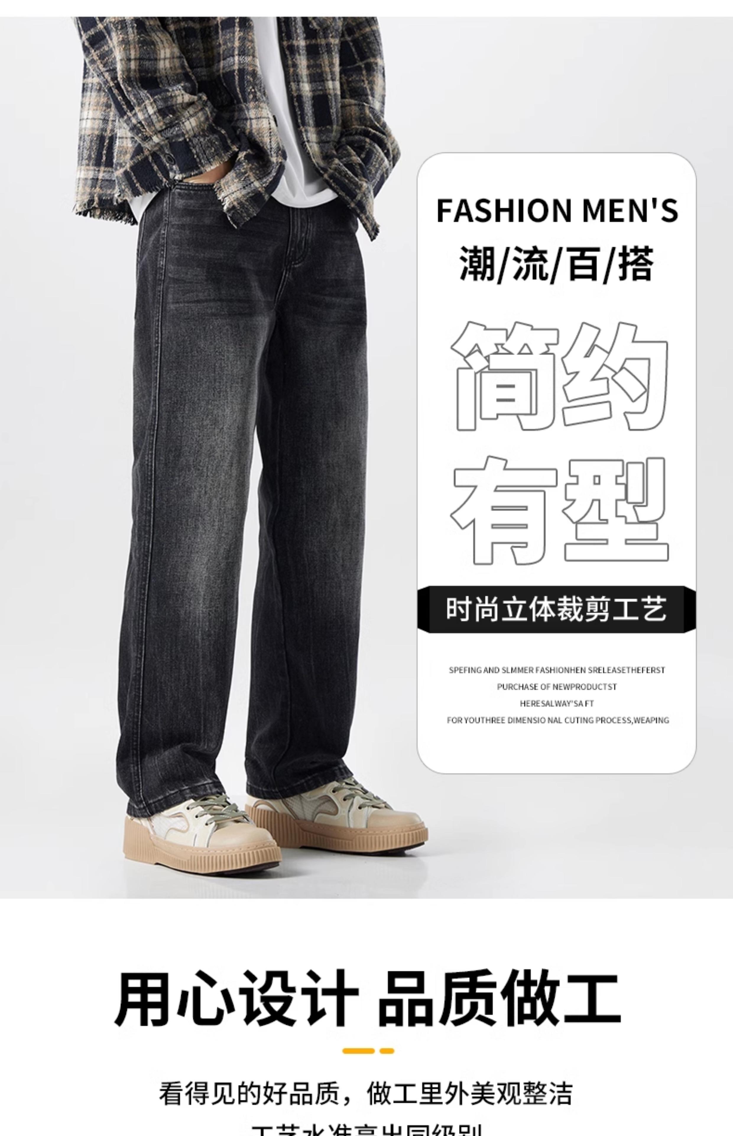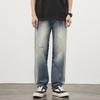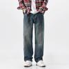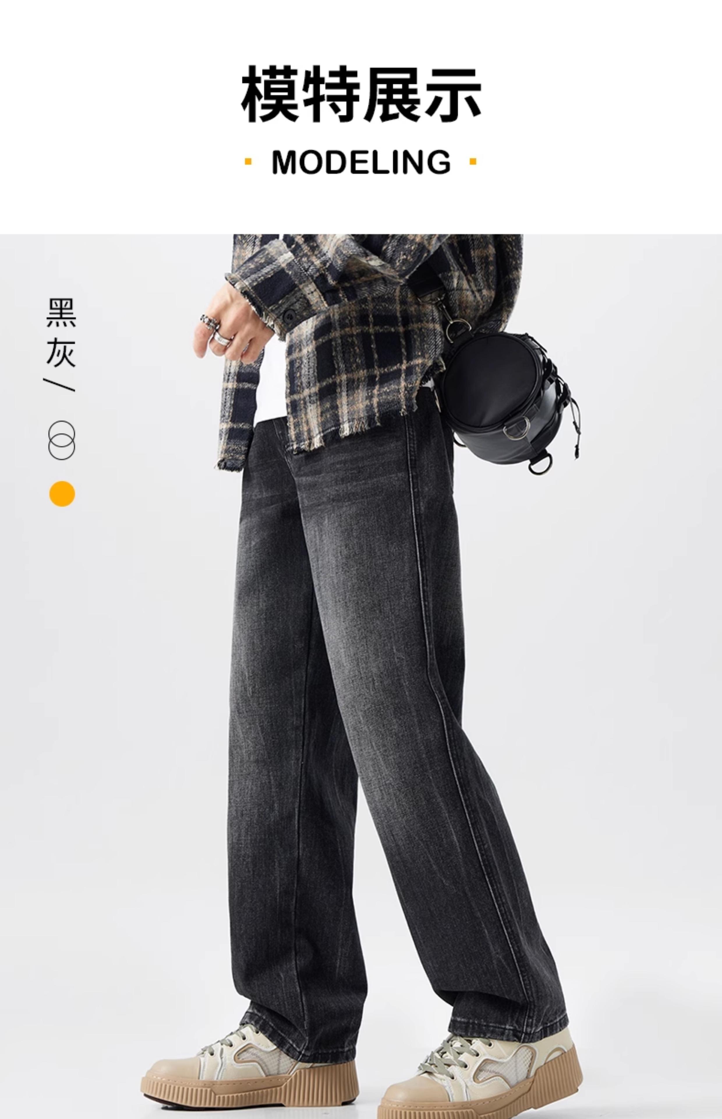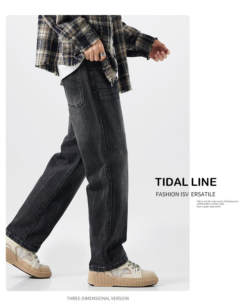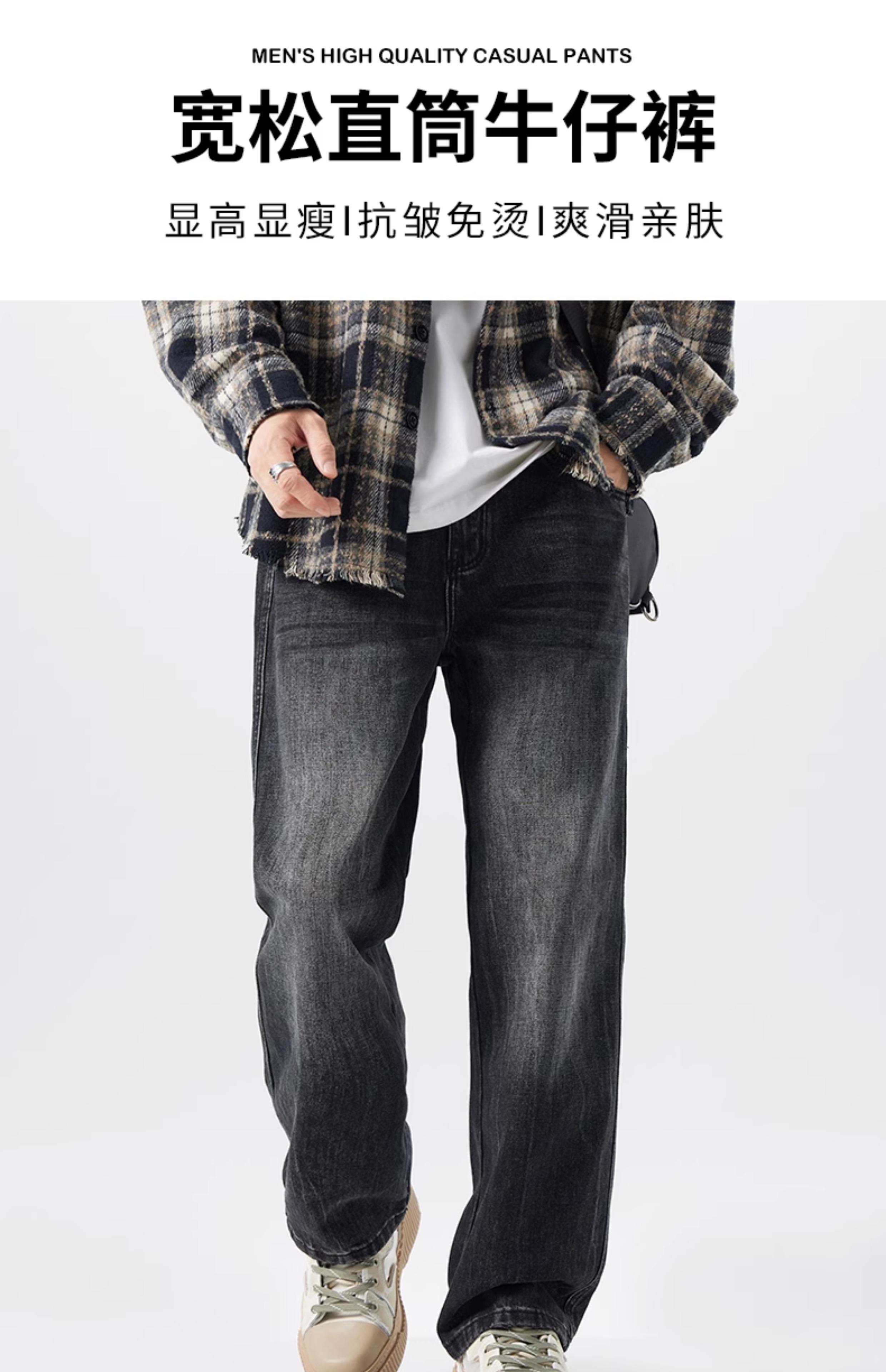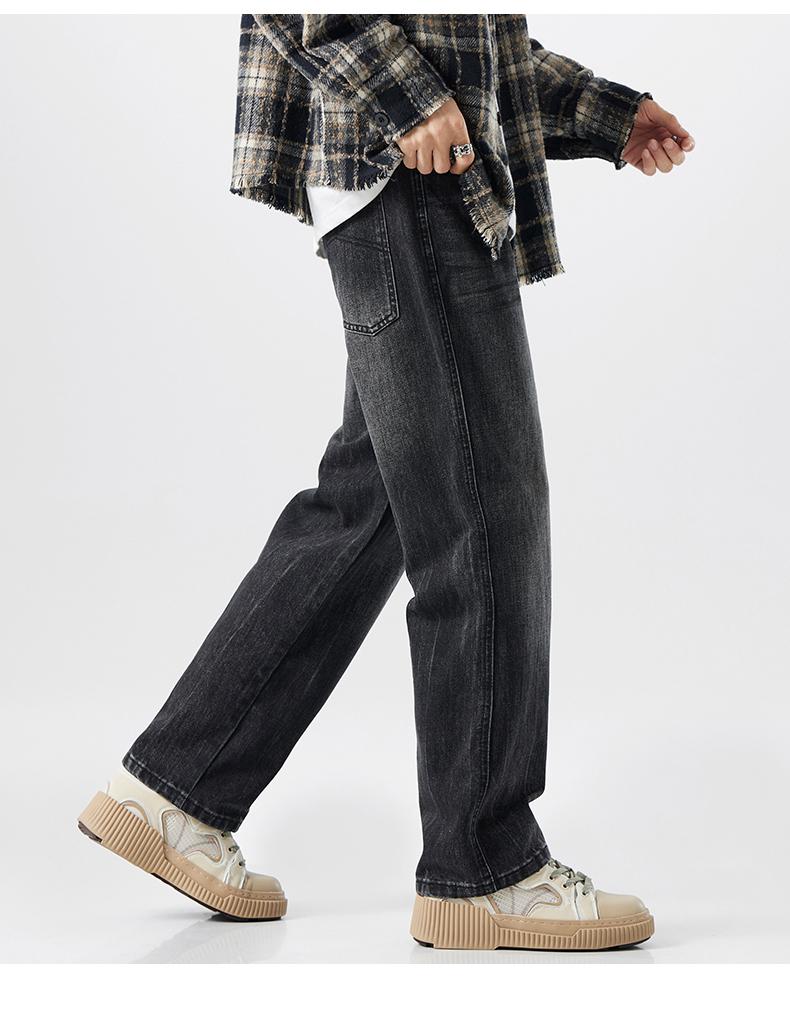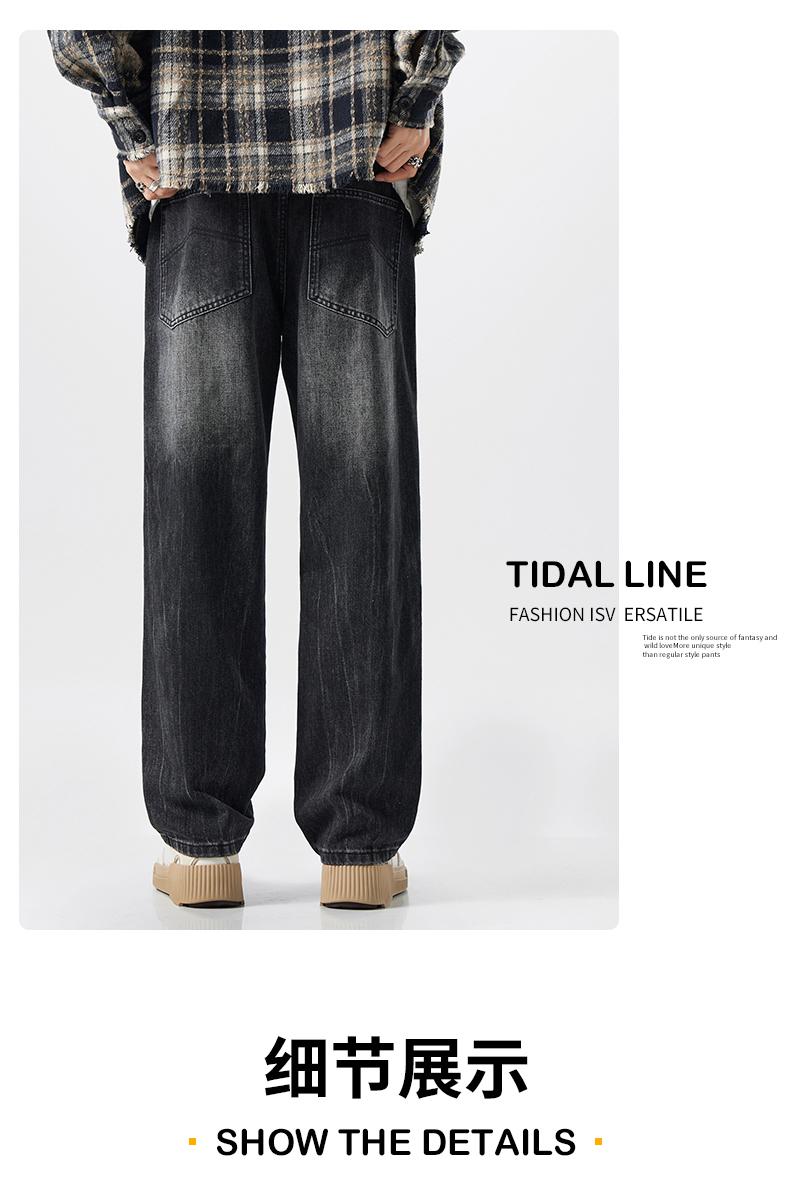 OMJK Jeans Lavados Estilo Americano High Street para Hombre Combinación Versátil Estilo Vibe Pantalones Rectos Holgados para Hombre Pantalones Negros para Hombre