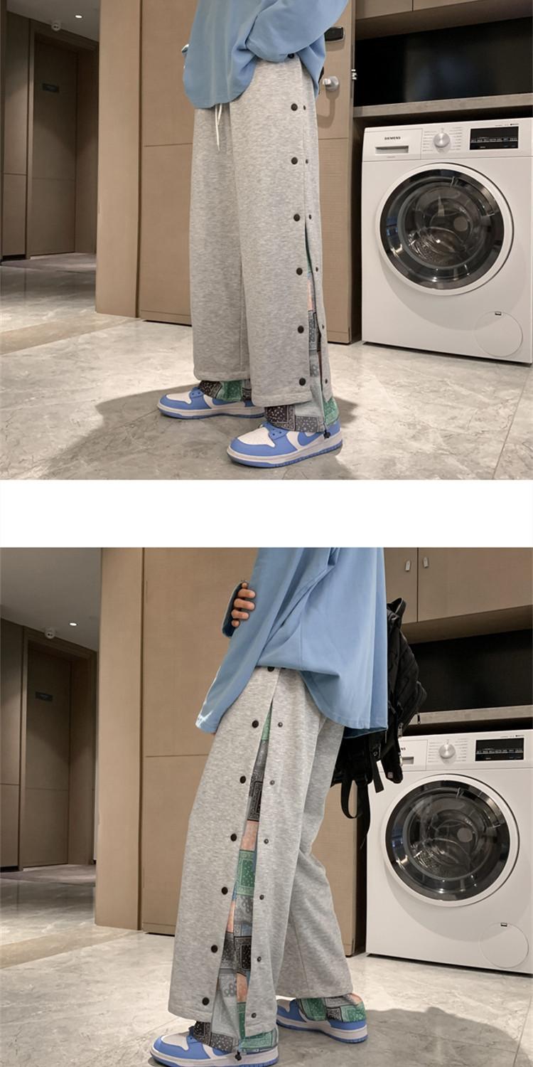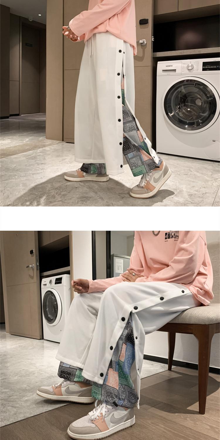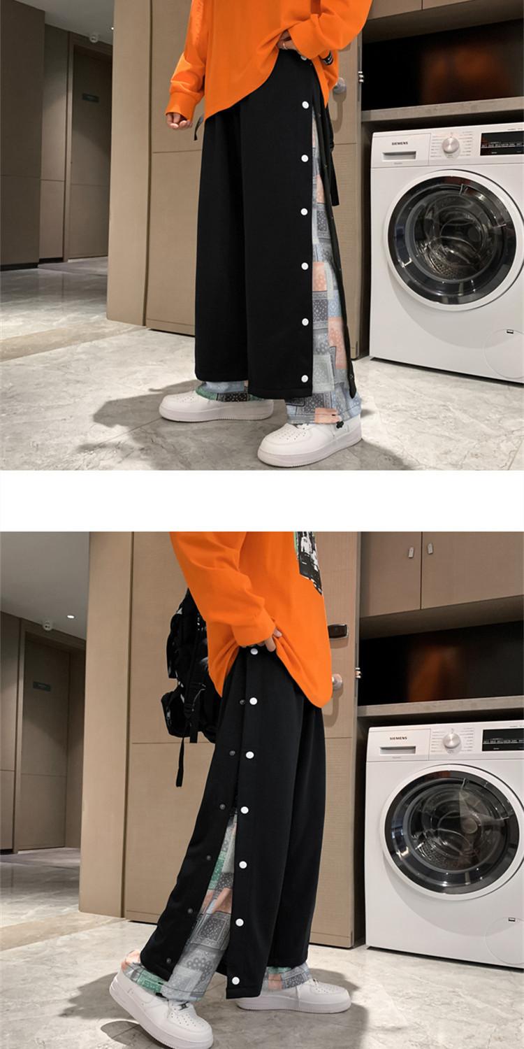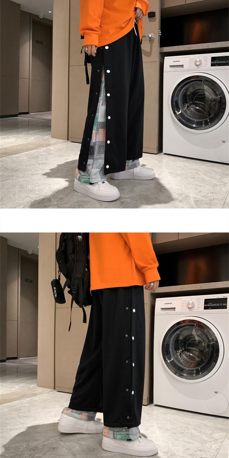 Pantalones casuales con costuras en los pechos para hombre, primavera y otoño, marca de moda japonesa, pantalones largos holgados y rectos de pierna ancha de High Street.