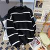 Suéter de punto a rayas negras con cuello redondo para hombre otoño e invierno Nuevo estilo suéter interior abrigo suéter holgado estilo perezoso de alta calidad