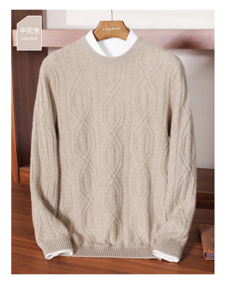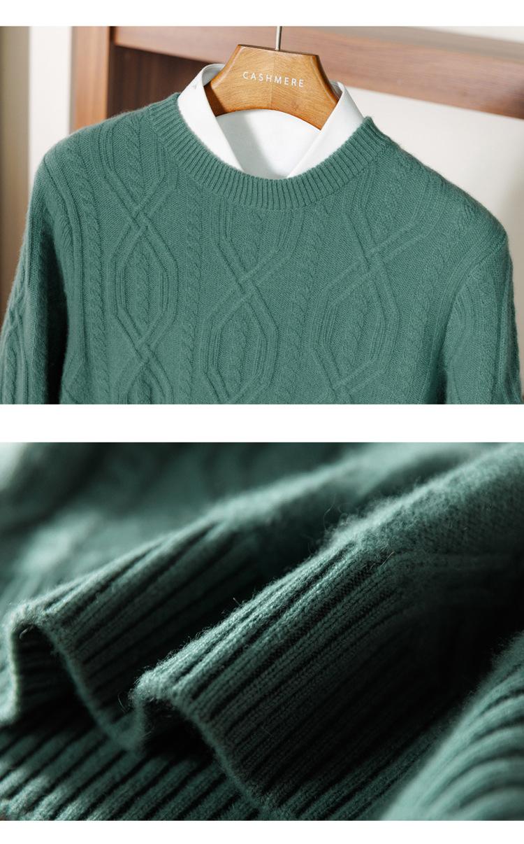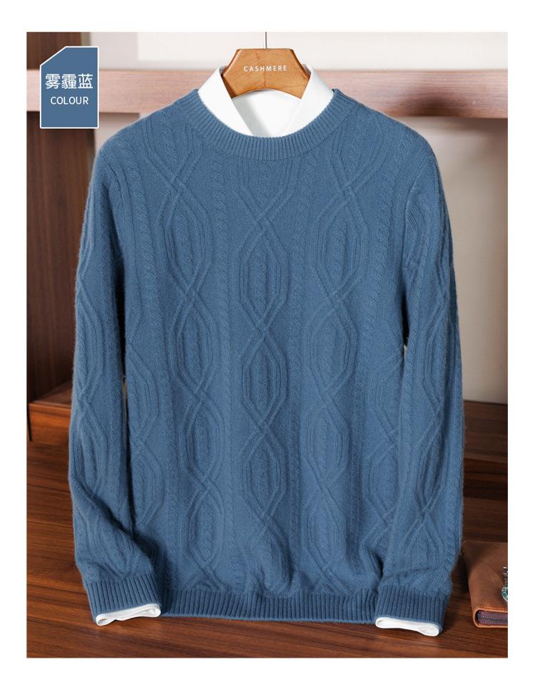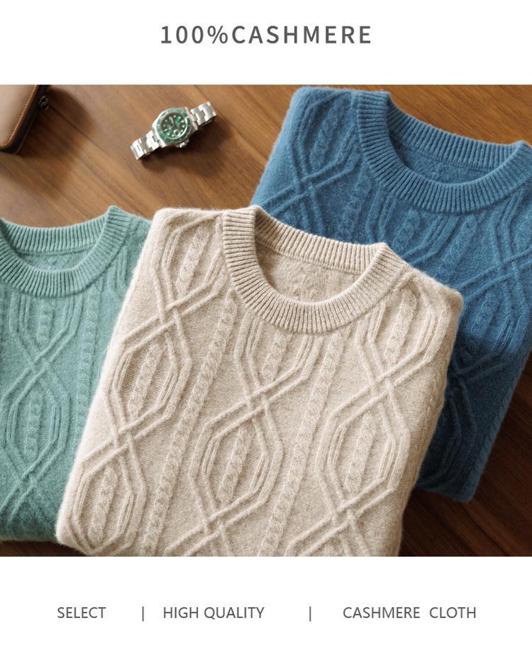 Suéter de cachemira para hombre, 100% cachemira pura, otoño e invierno, nuevo, cuello redondo, manga larga, grueso, giro, suéter de punto de moda.