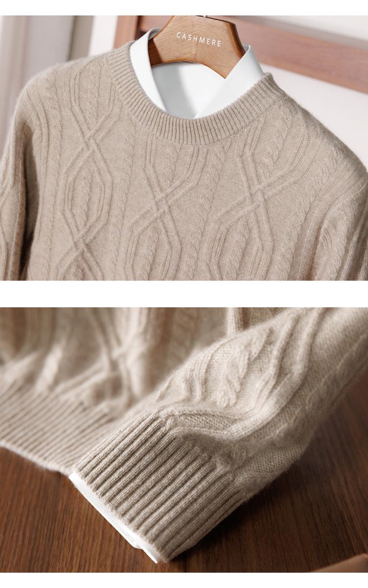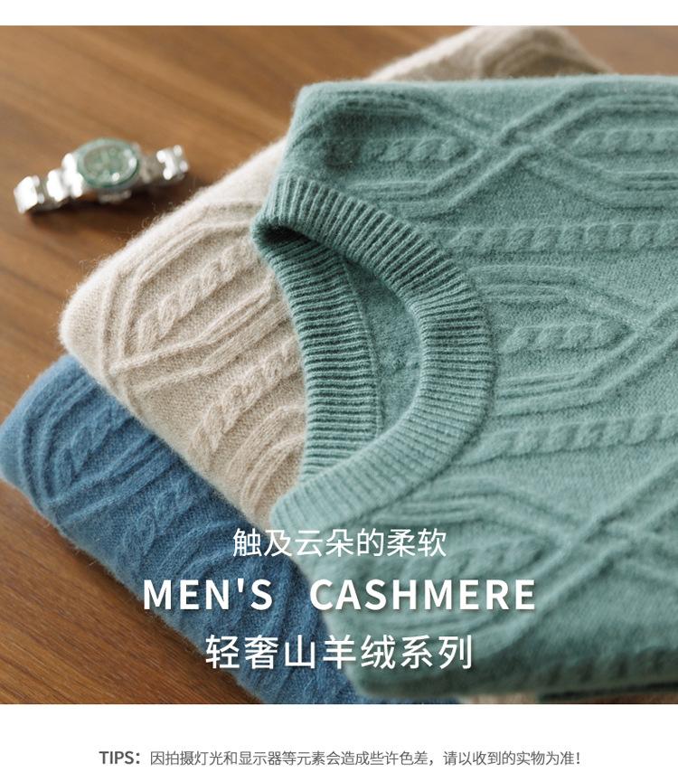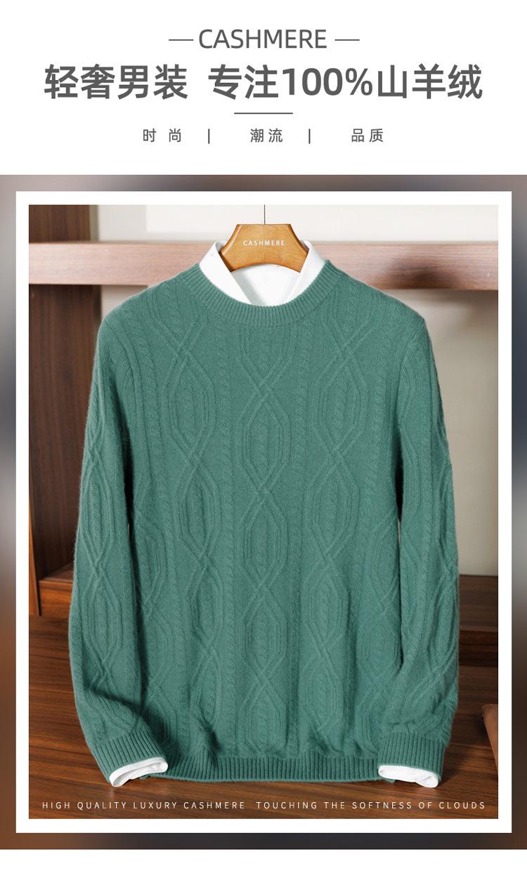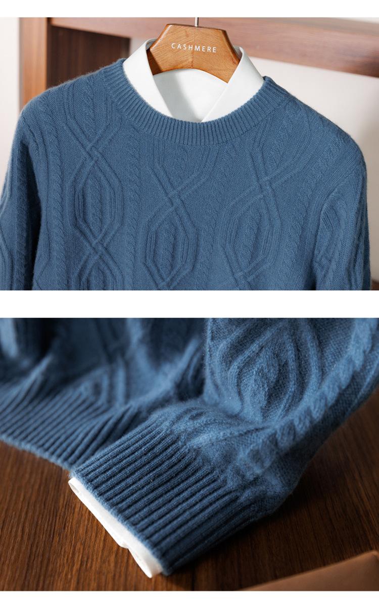 Suéter de cachemira para hombre, 100% cachemira pura, otoño e invierno, nuevo, cuello redondo, manga larga, grueso, giro, suéter de punto de moda.