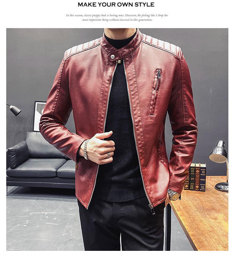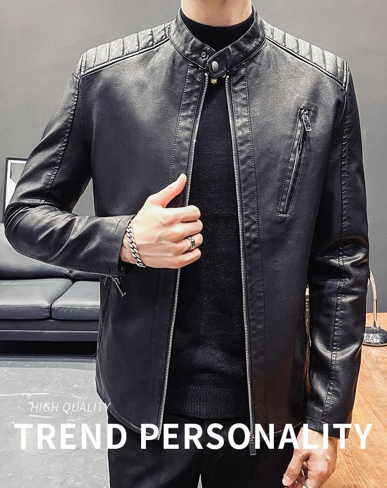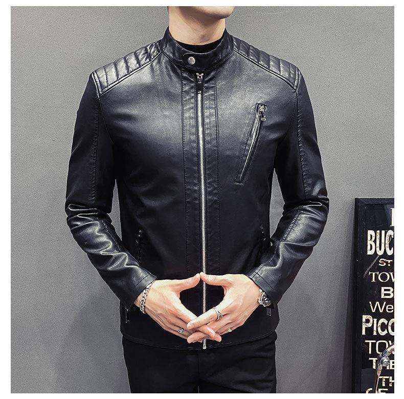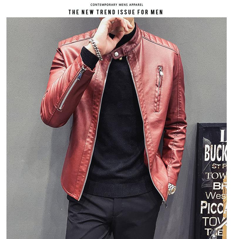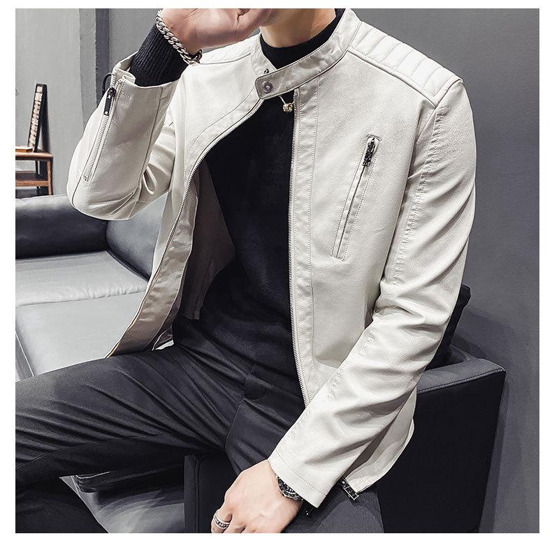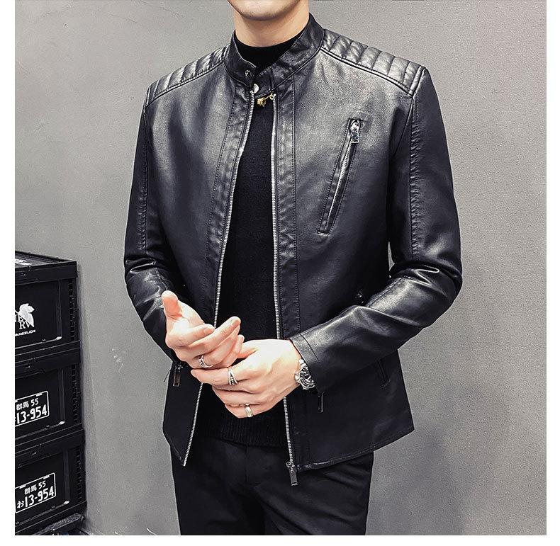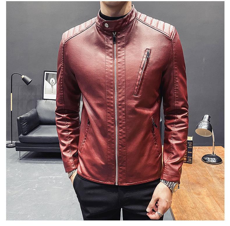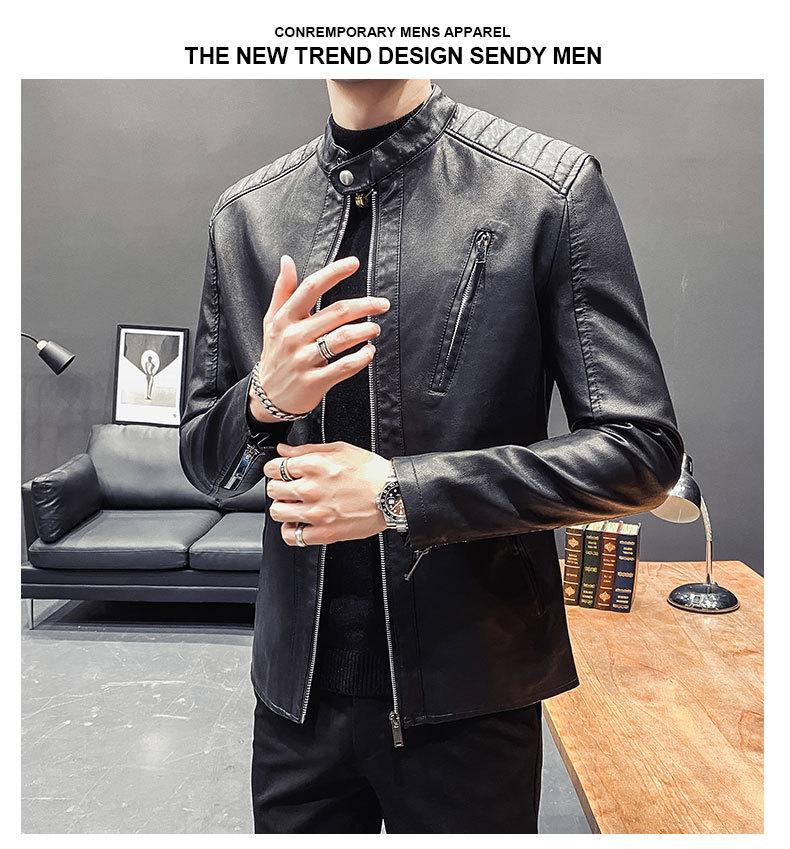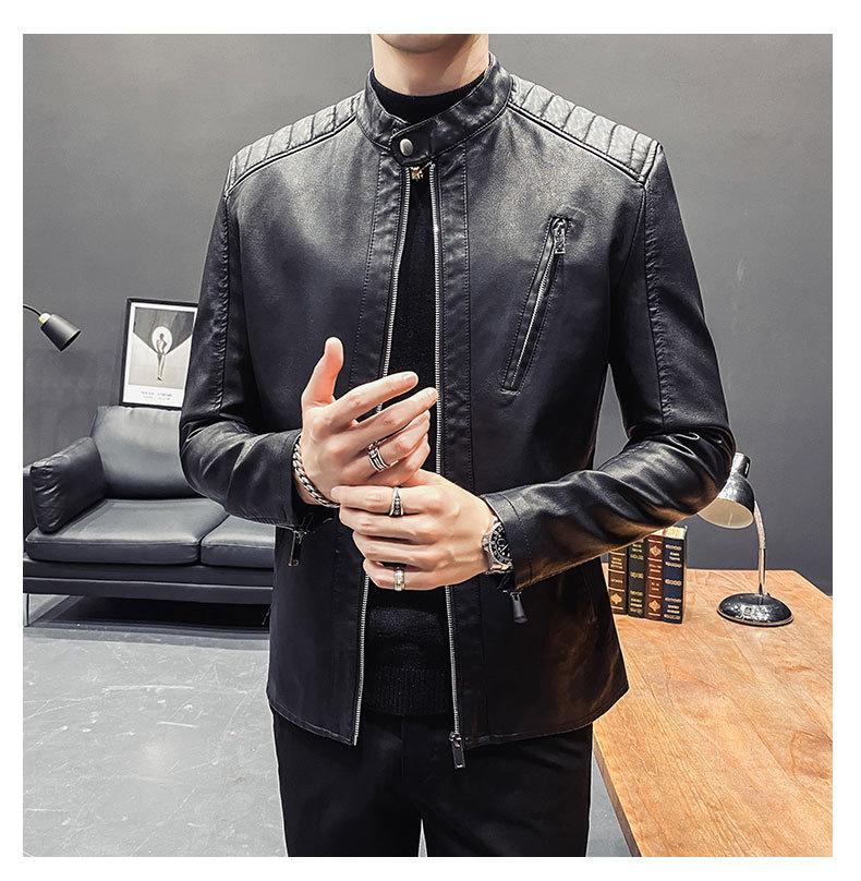 2025 Nueva Chaqueta de Cuero Abrigo Casual para Hombre Estilo Coreano Corte Slim Juventud Primavera y Otoño Chaqueta de Motocicleta Corte Slim Pu