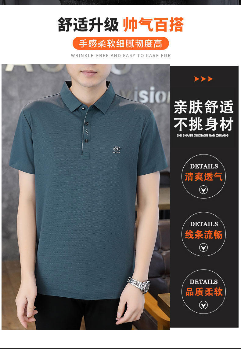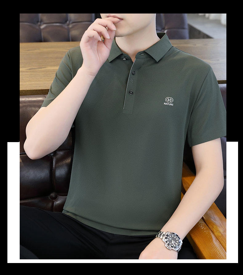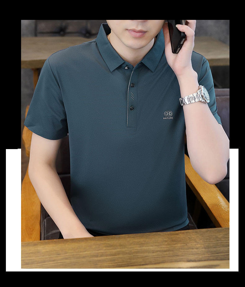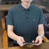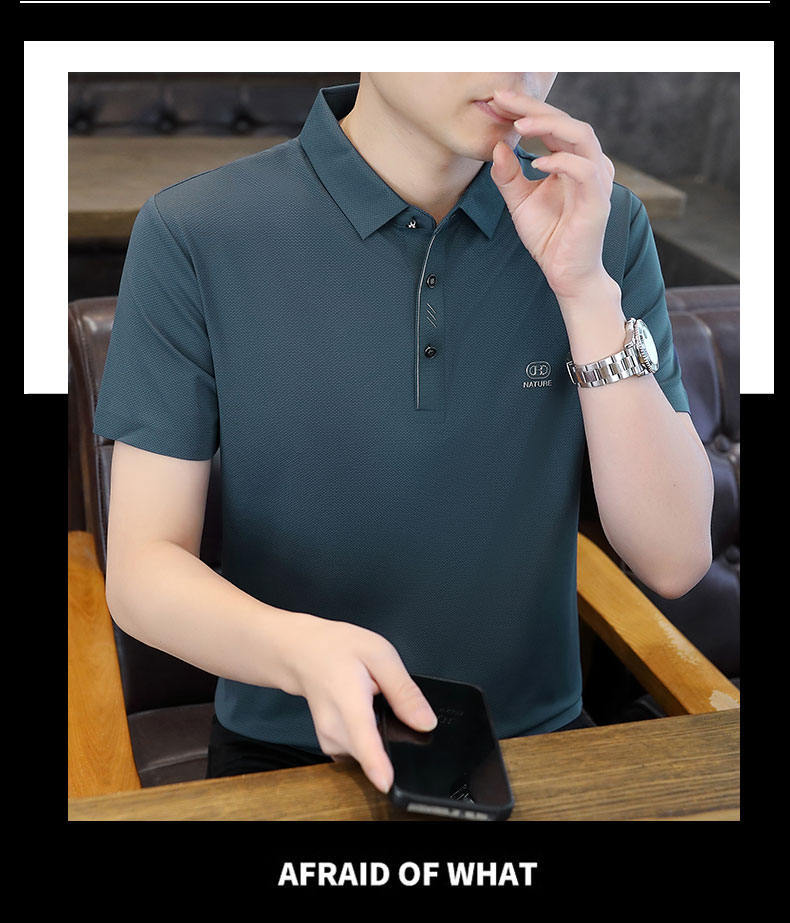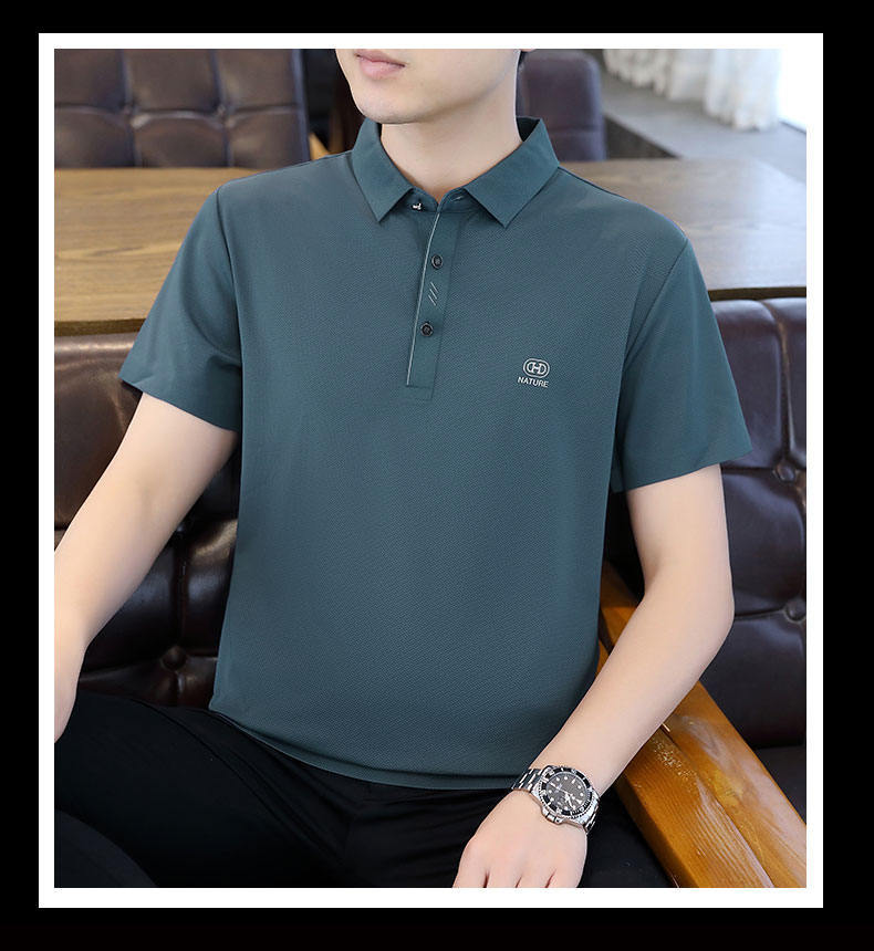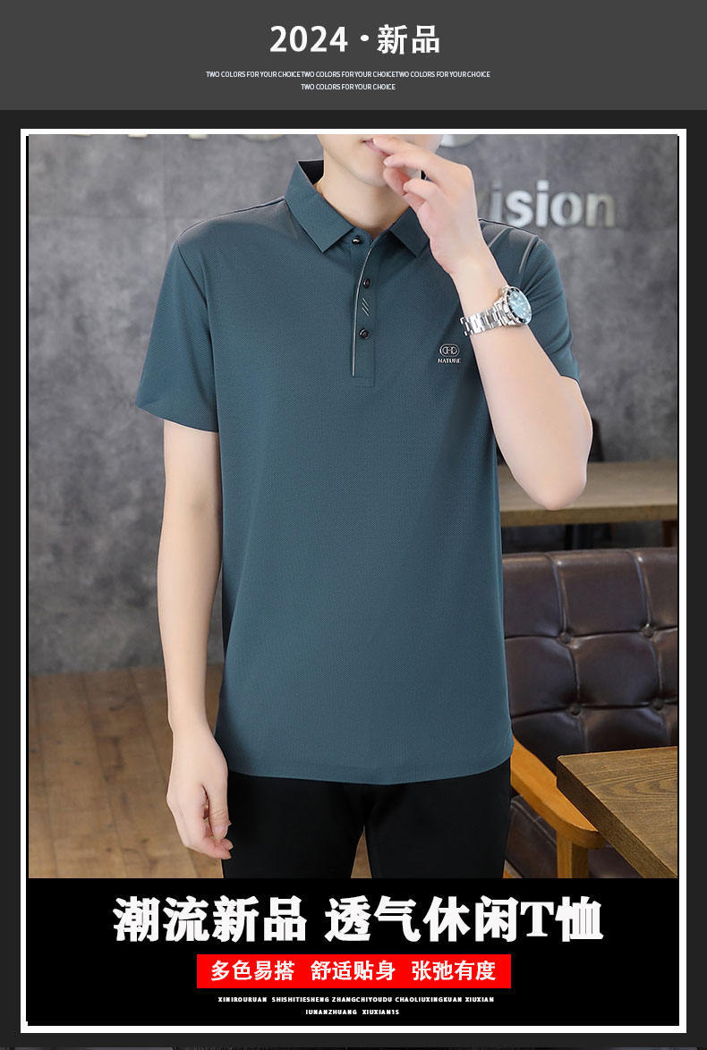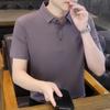 Polo de manga corta de seda helada sin rastro para hombre, camiseta informal de alta gama con solapa, novedad de verano
