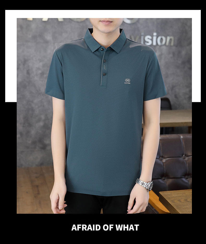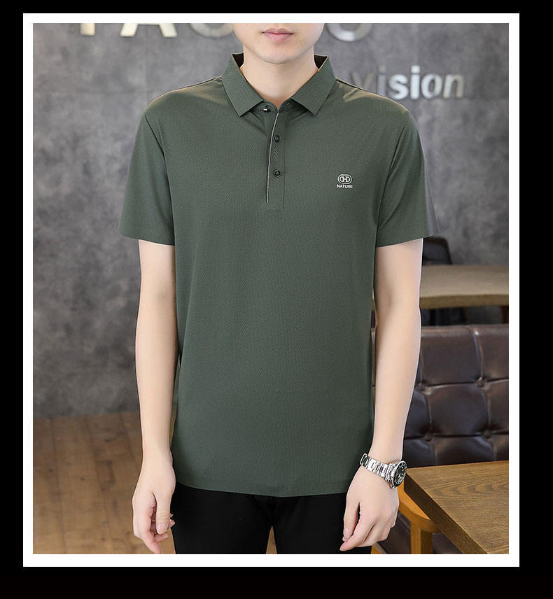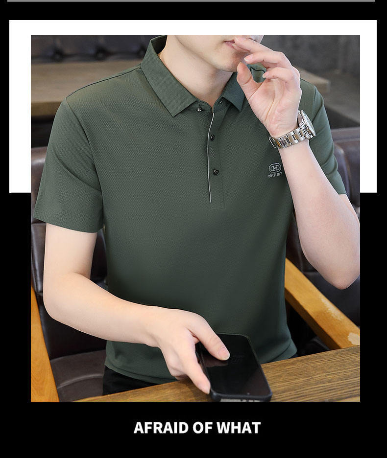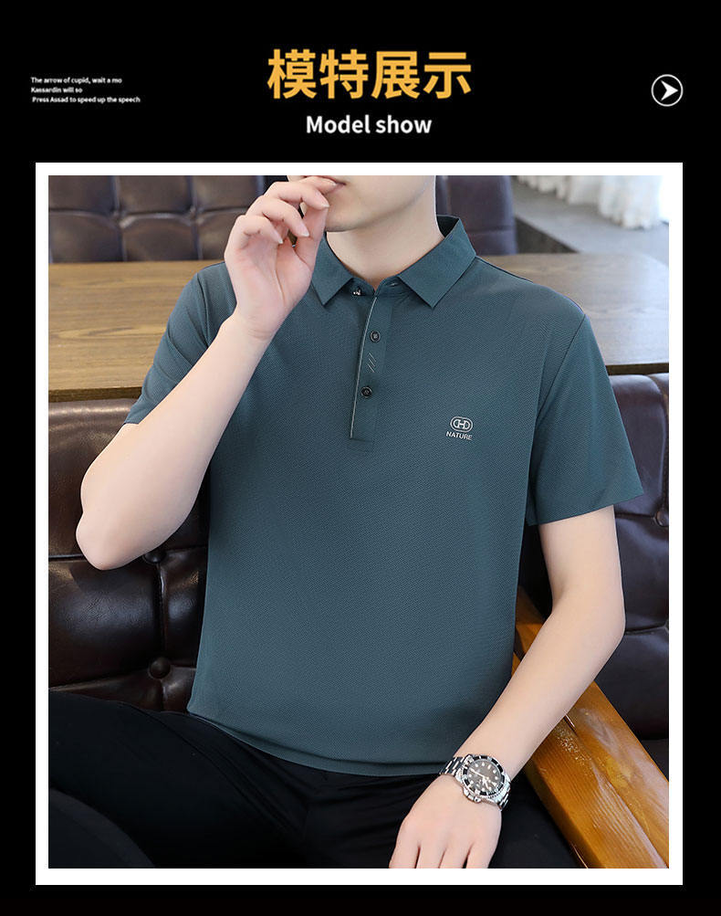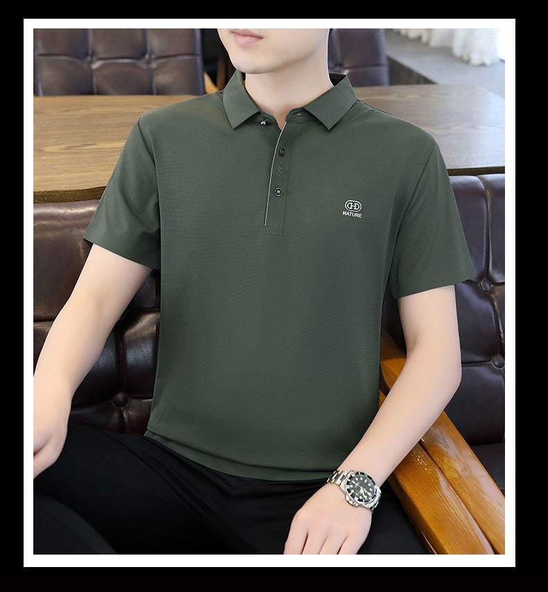 Polo de manga corta de seda helada sin rastro para hombre, camiseta informal de alta gama con solapa, novedad de verano