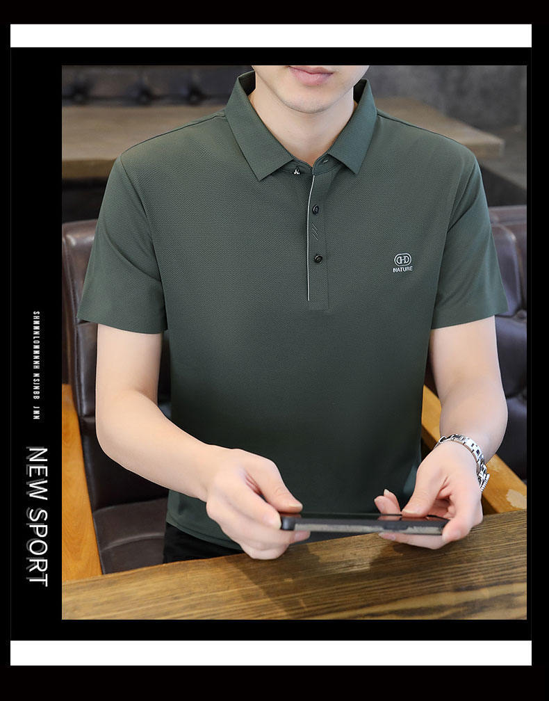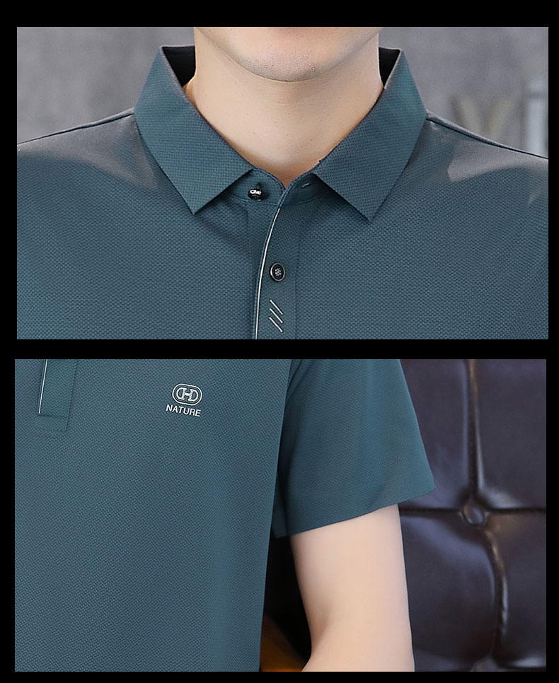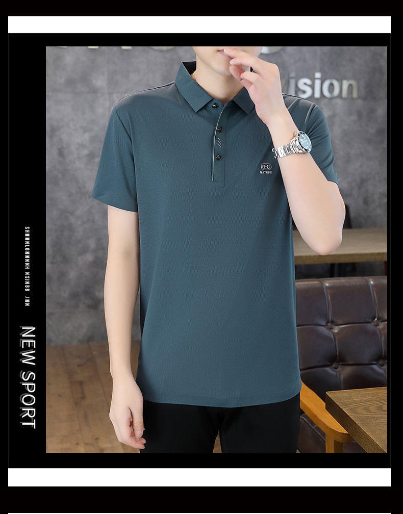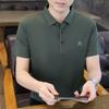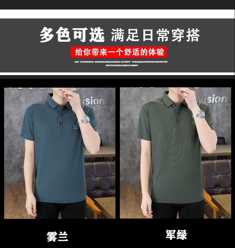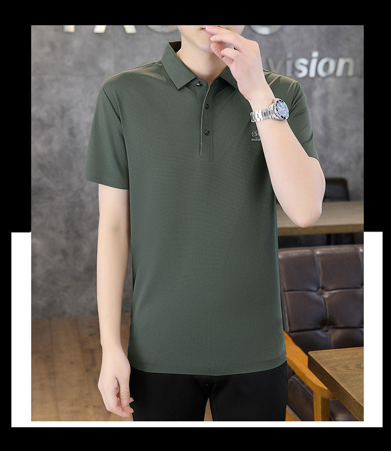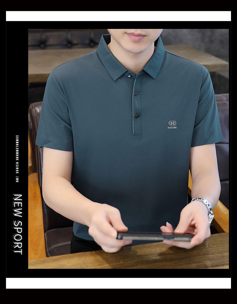 Polo de manga corta de seda helada sin rastro para hombre, camiseta informal de alta gama con solapa, novedad de verano