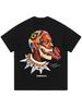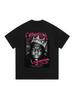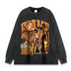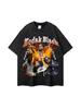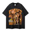 Playera Estampada Americana Retro Lavada Desgastada Transfronteriza para Hombre y Mujer Hip-Hop Trendy Marca Pesada Cuello Redondo Media Manga