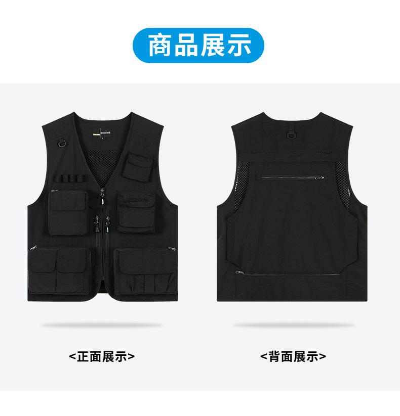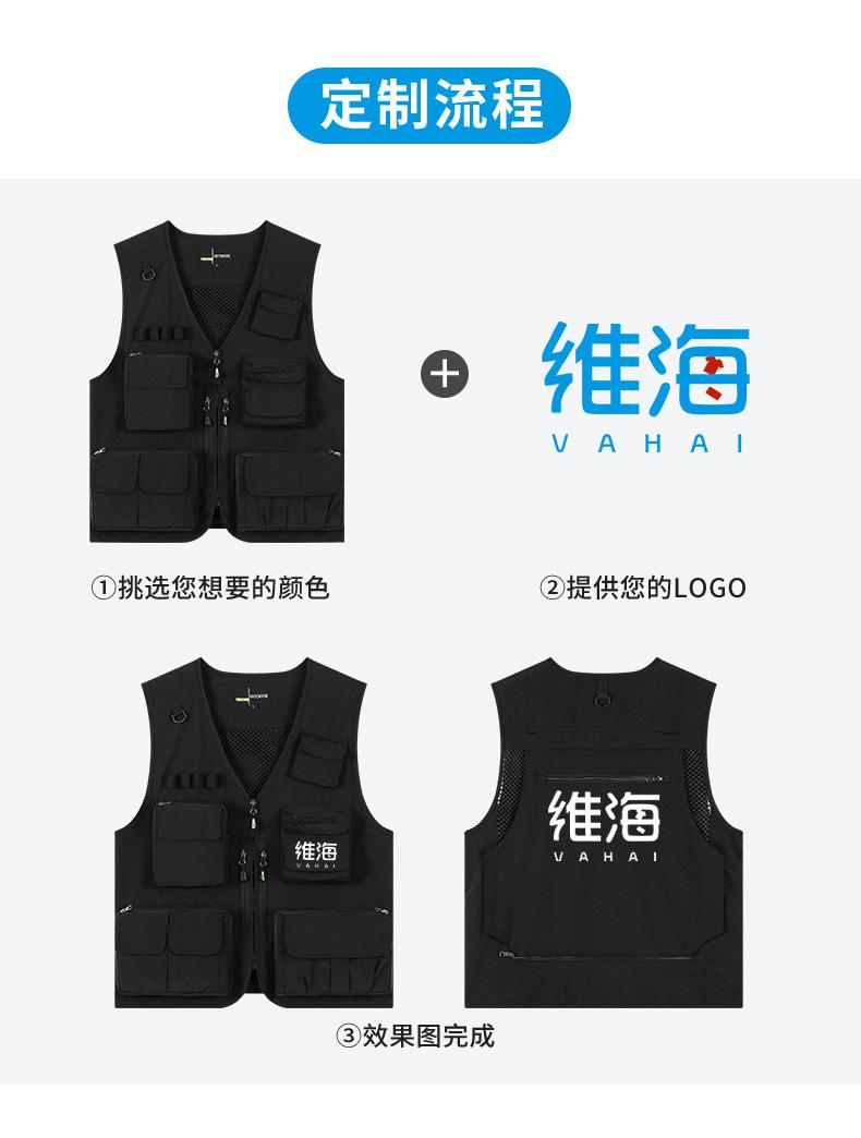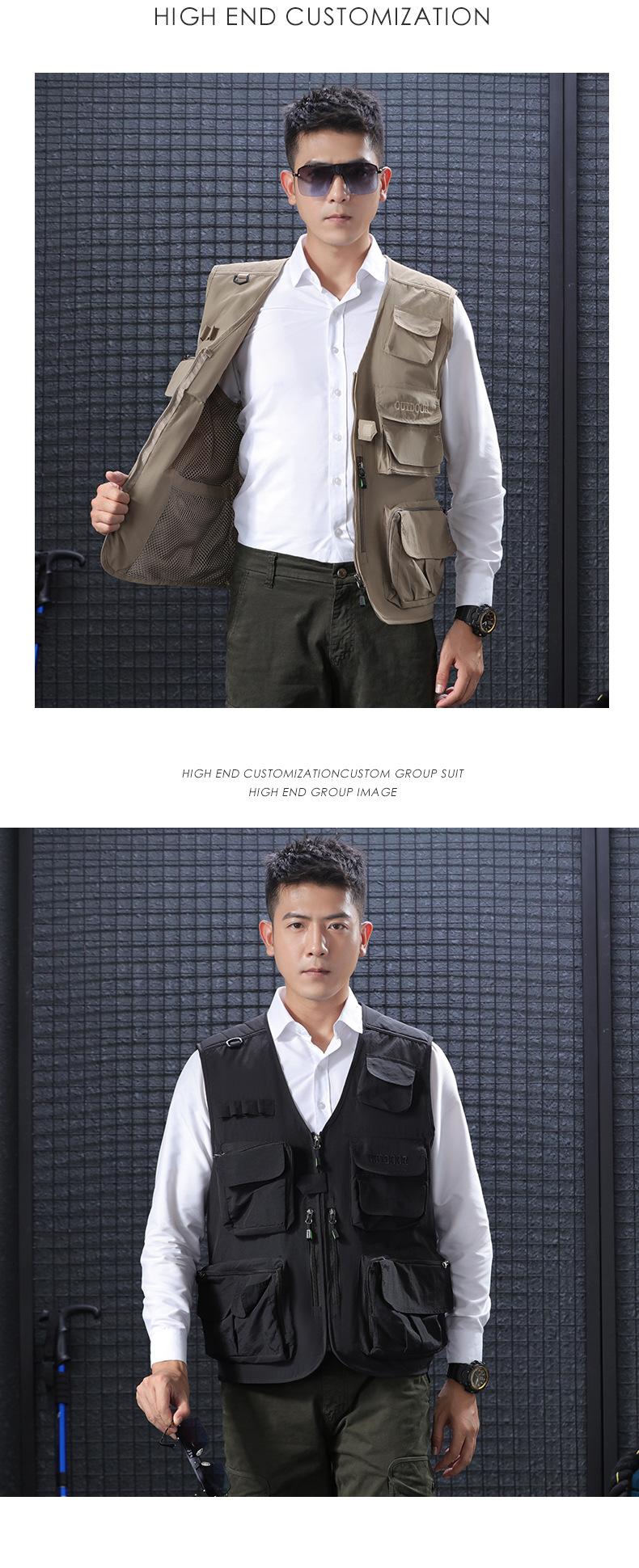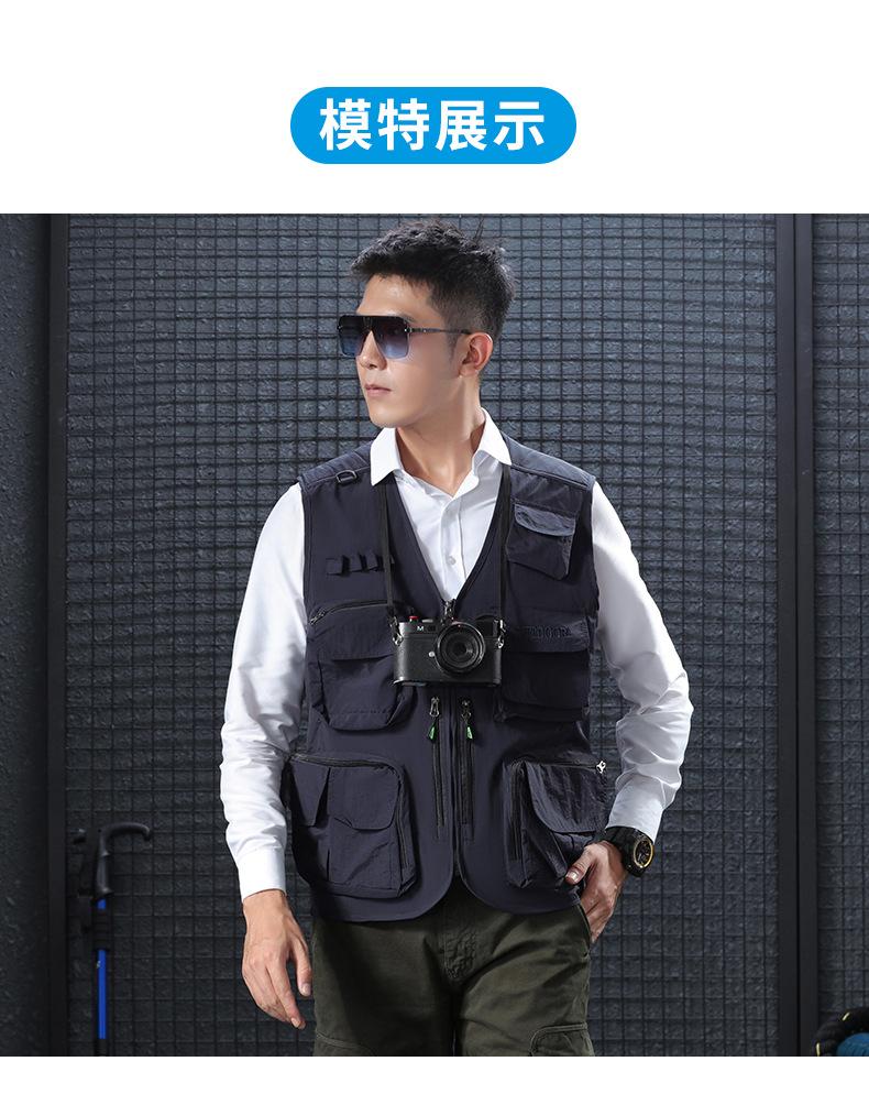 Chaleco de trabajo para fotografía, con logotipo personalizado impreso, multibolsillos, malla de secado rápido, ropa de trabajo para medios, chaleco de talla grande para hombre.