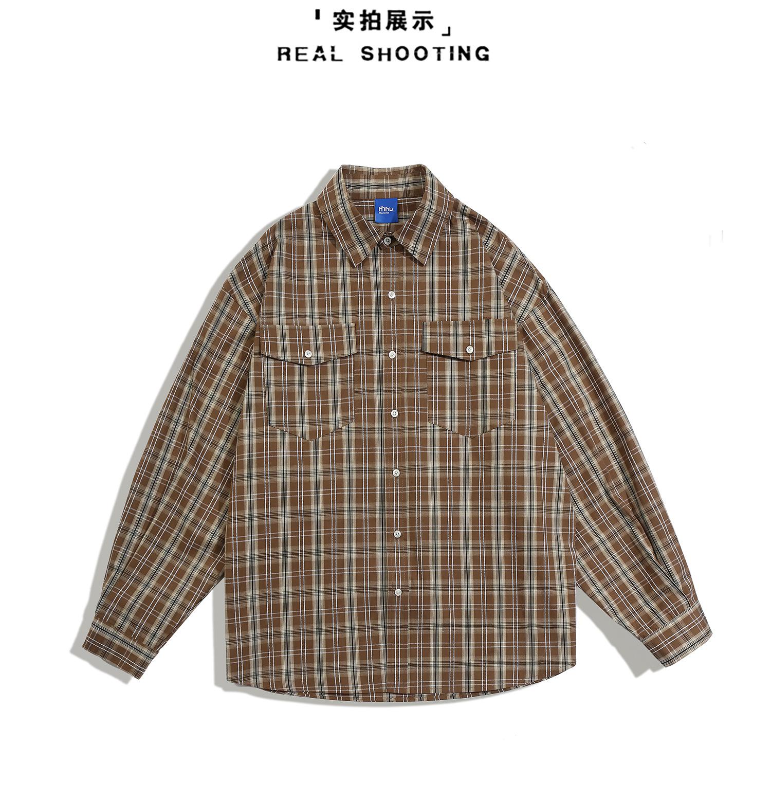 MAGMANS - Nueva camisa de manga larga estilo coreano para hombre, chaqueta informal, versátil y holgada a cuadros, C3191