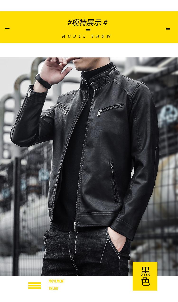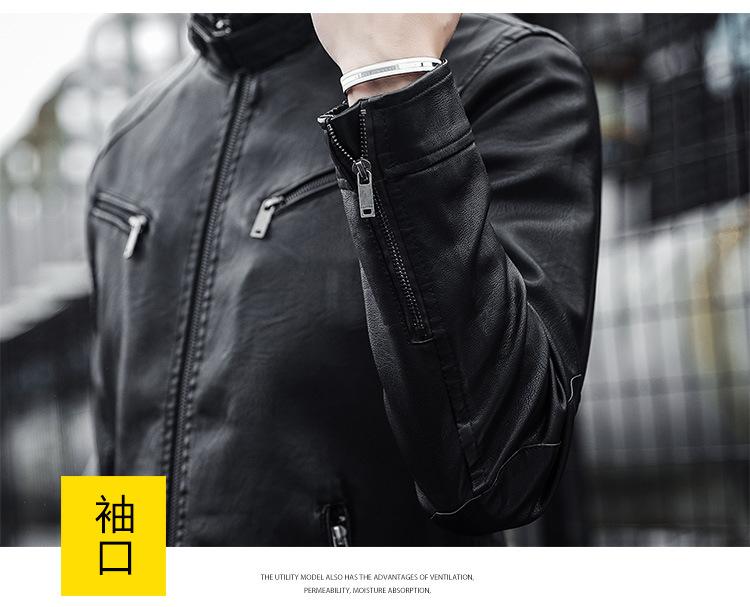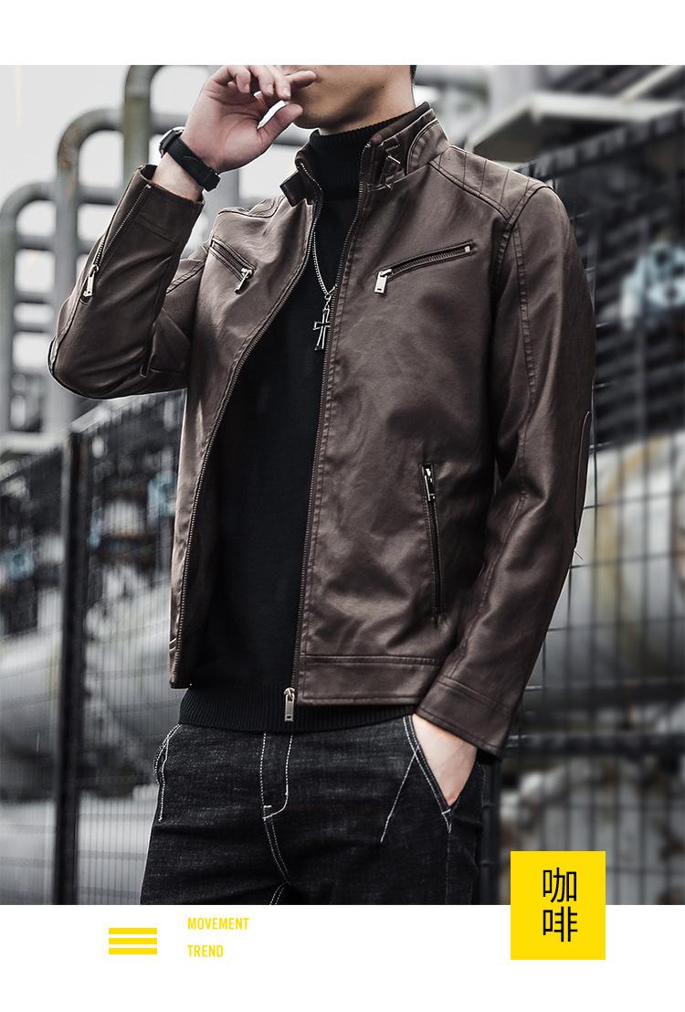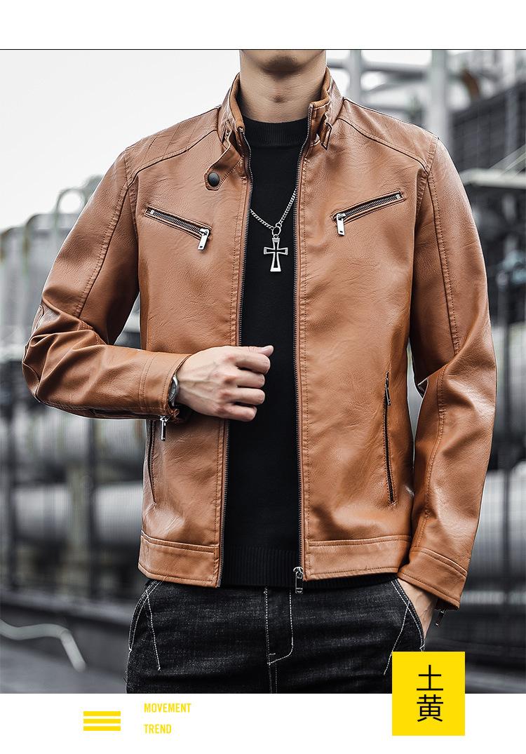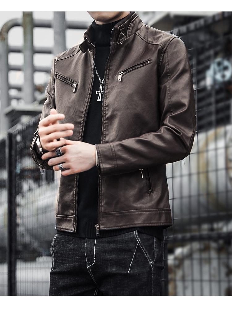 Chaqueta de cuero sintético para hombre, estilo coreano, informal, de cuello alto, ajustada, para motocicleta, para primavera y otoño