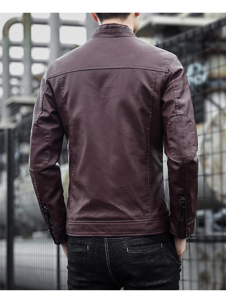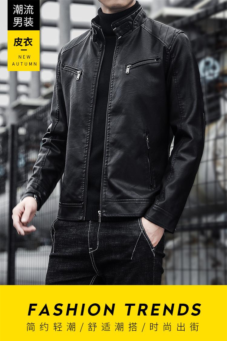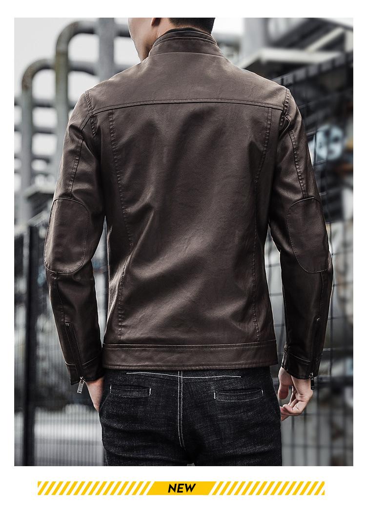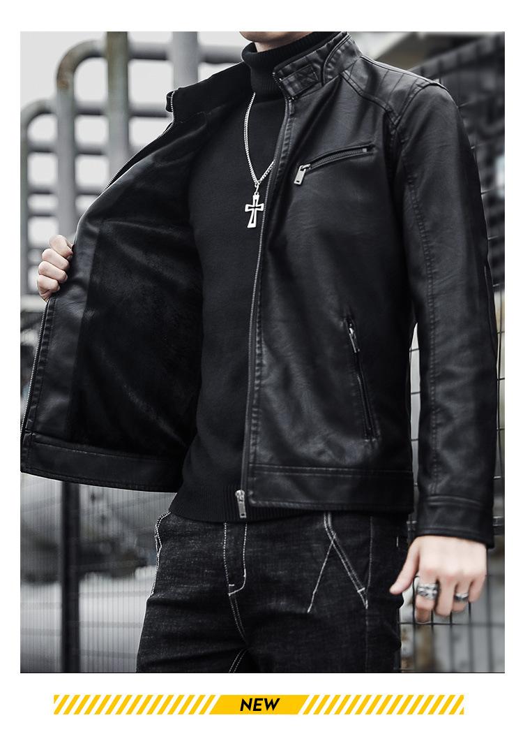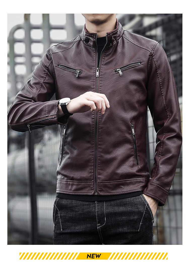 Chaqueta de cuero sintético para hombre, estilo coreano, informal, de cuello alto, ajustada, para motocicleta, para primavera y otoño
