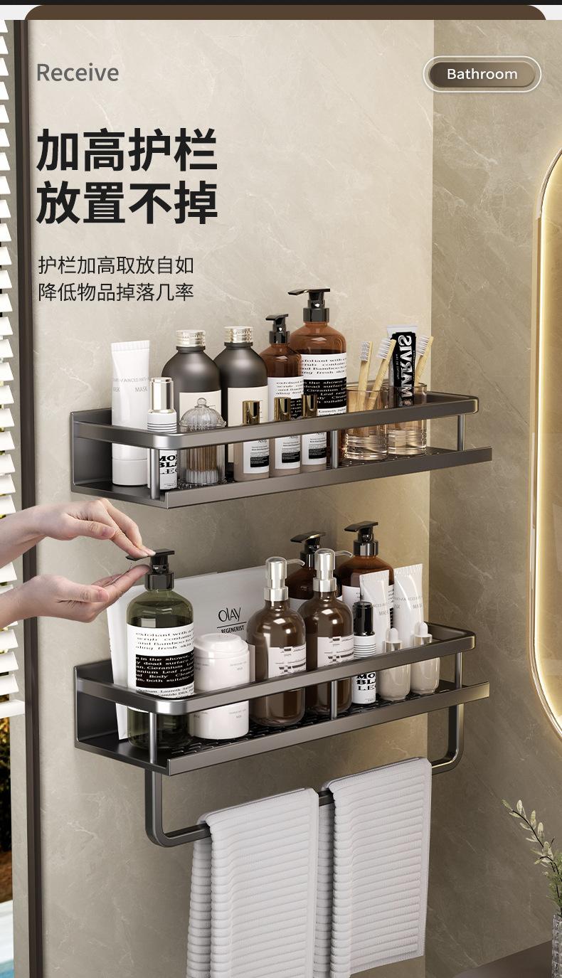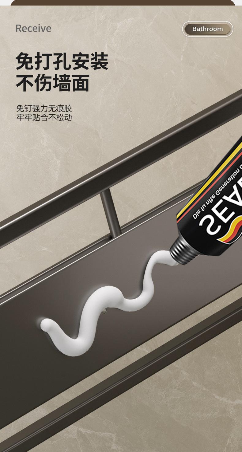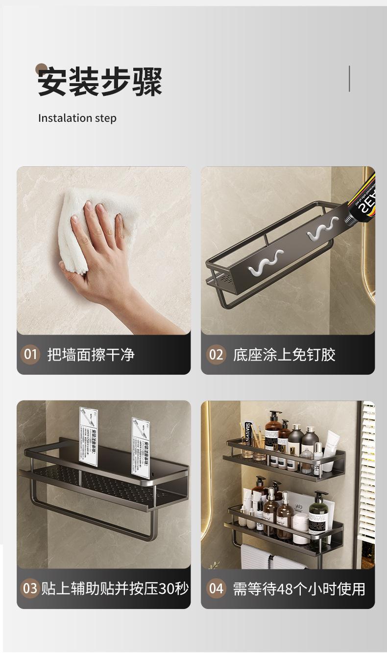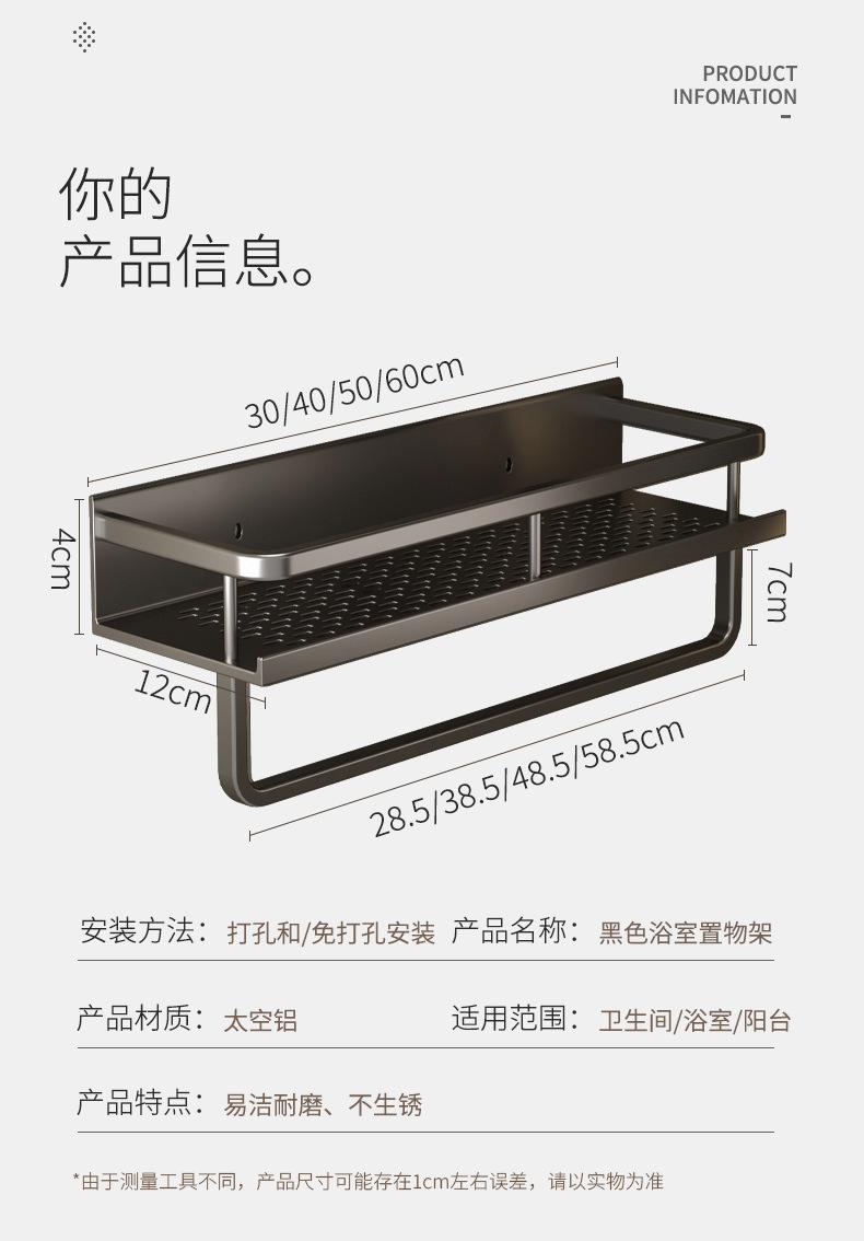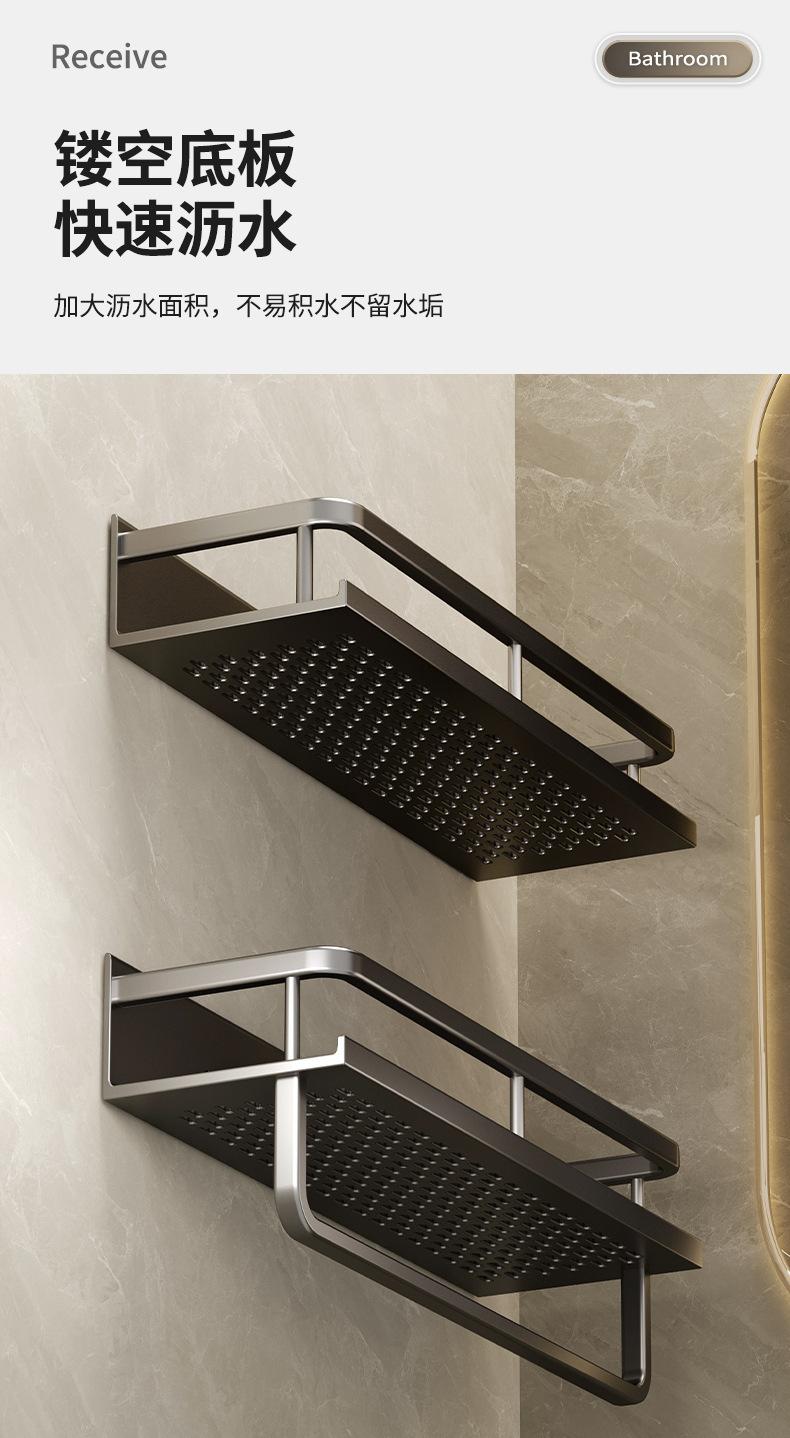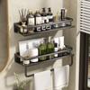 Estante de pared para almacenamiento de baño con lavabo sin perforaciones negro, estante de almacenamiento para inodoro y baño.
