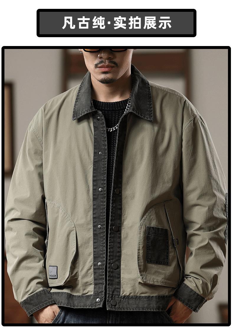 Chaqueta de retazos para hombre, primavera y otoño, suelta, marca de moda americana, chaqueta retro de caza para hombre, nueva parte superior de principios de otoño