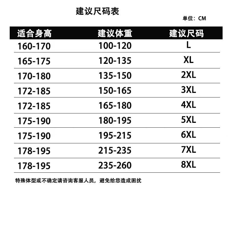 L, XL, 2XL, 3XL, 4XL, 5XL, 6XL, 7XL, 8XL