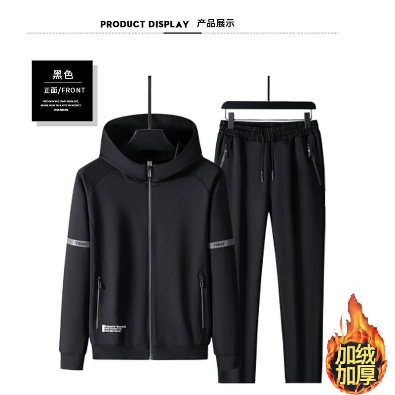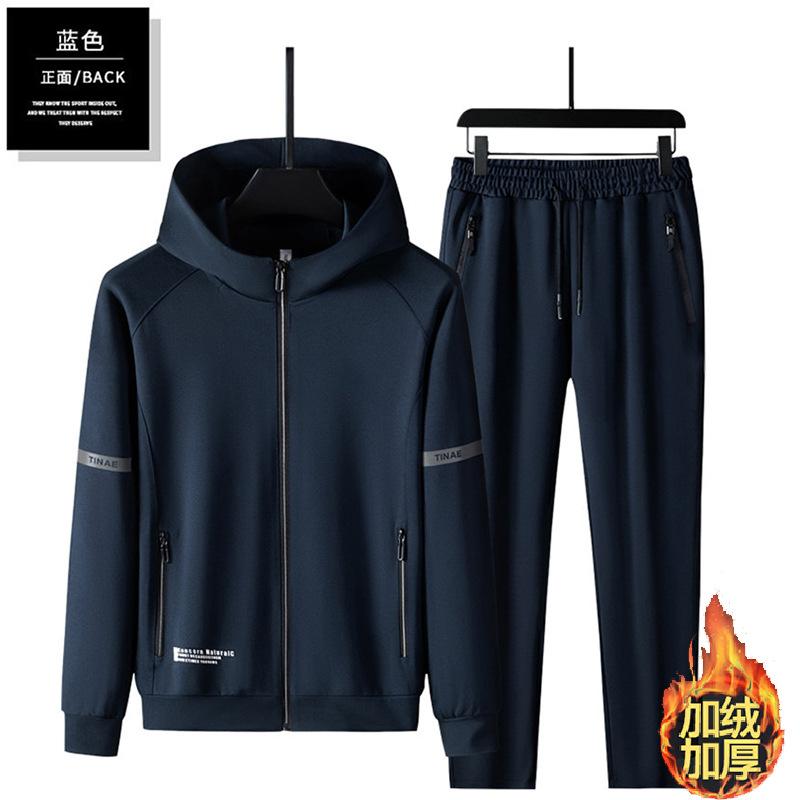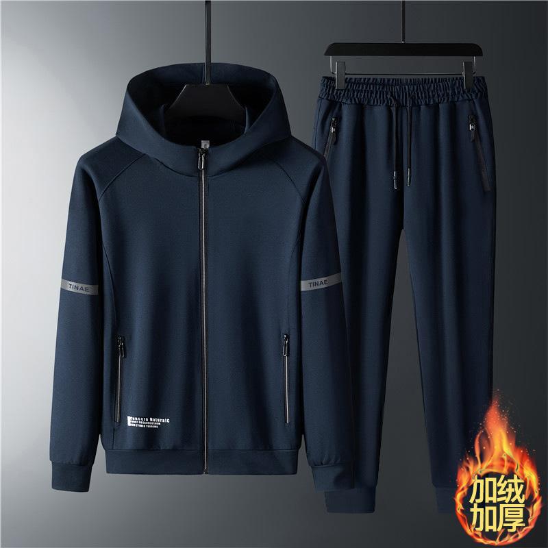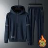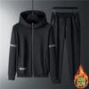 Traje de suéter tipo cárdigan para hombre, forro polar grueso y grueso, para otoño e invierno, talla grande, informal, para correr, deportivo, de dos piezas