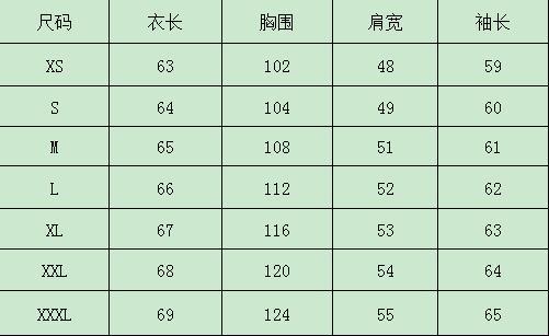 XS, S, M, L, XL, XXL, XXXL