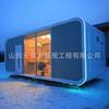 cápsula espacialEl cuerpo principal está fabricado con una estructura de acero soldado, y el exterior está hecho de aleación de aluminio, aislamiento de poliuretano y vidrio templado hueco de doble capa. Su diseño silencioso garantiza un sueño reparador, una excelente visibilidad, una iluminación sin obstrucciones y un sistema inteligente que ofrece una experiencia de vida diferente. Las superficies de construcción de la cápsula espacial son: 38㎡, 28㎡ y 21㎡. La variedad de tamaños y modelos ofrece más opciones y se puede personalizar según el tamaño del espacio. El interior está equipado con luces cálidas multicolor, cortinas eléctricas, tragaluces eléctricos, proyectores, inodoros inteligentes, aire acondicionado central, calentadores de agua, etc.