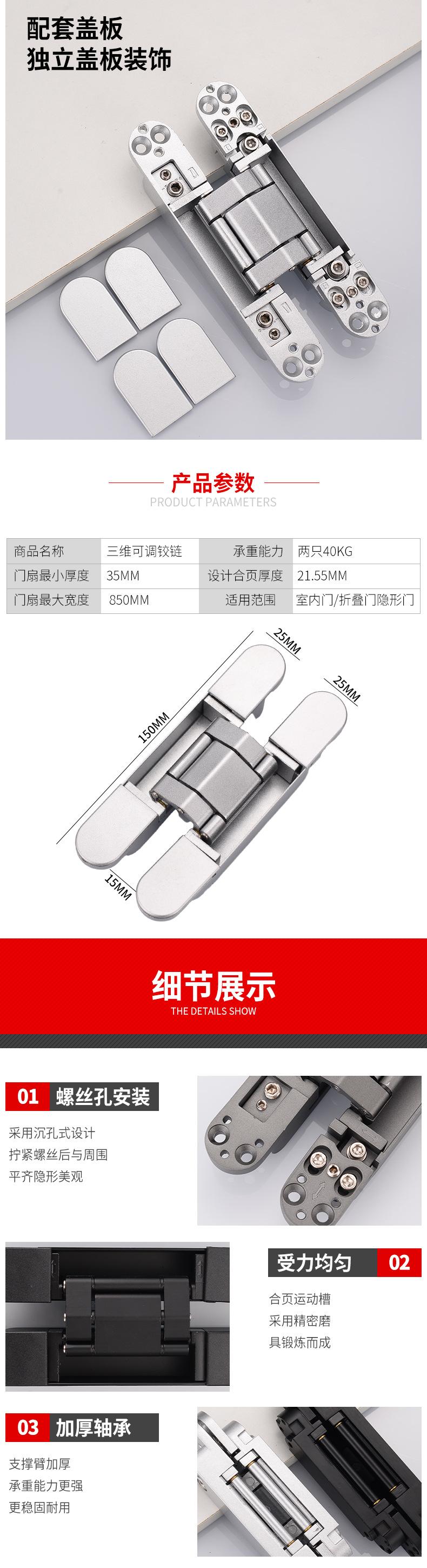 Three-dimensional adjustable Concealed hinge (Silver), Three-dimensional adjustable dark hinge (gray), Three-d...