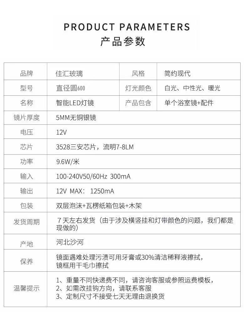 60 diameter round single key + White Light, 60 diameter circle single key + warm light, 60 diameter round doub...