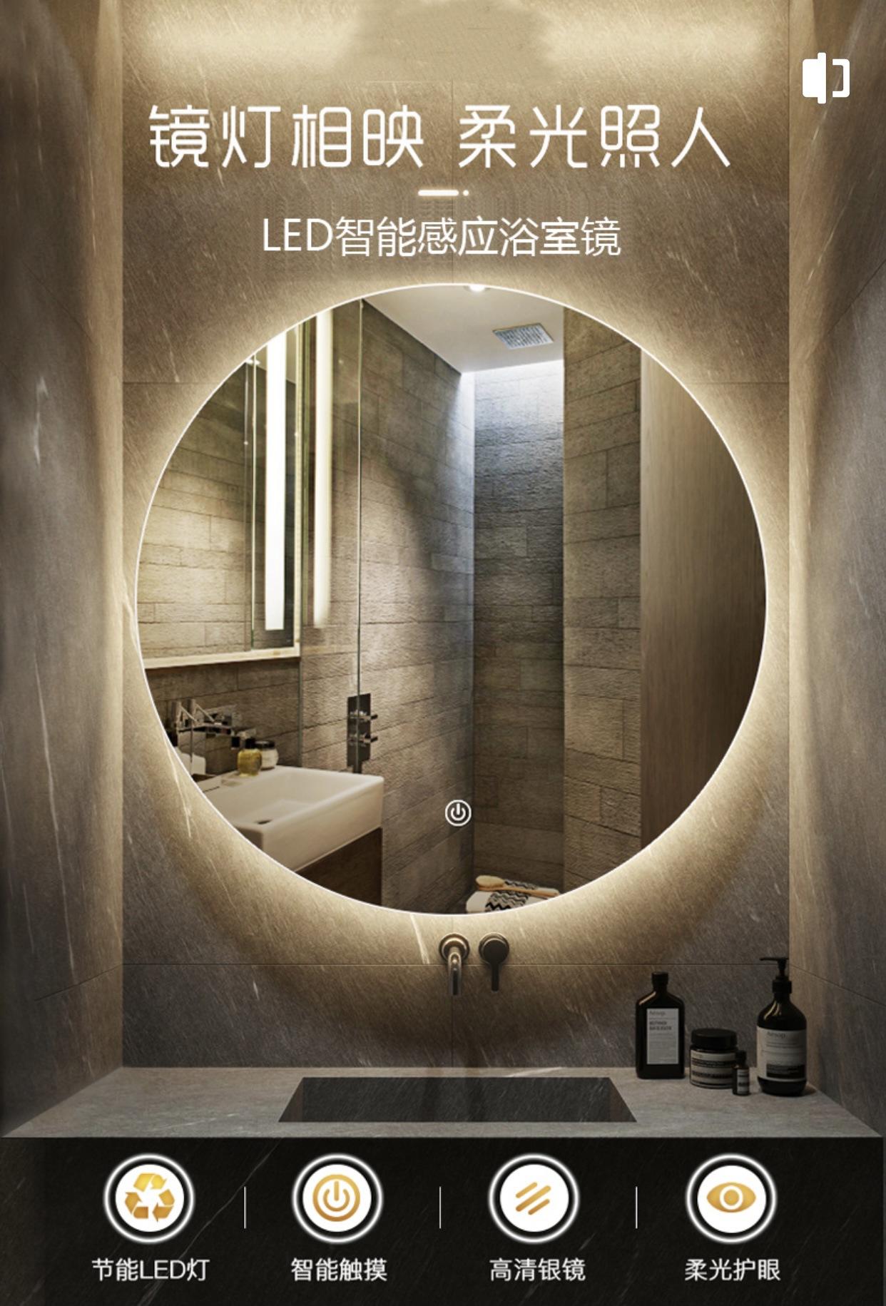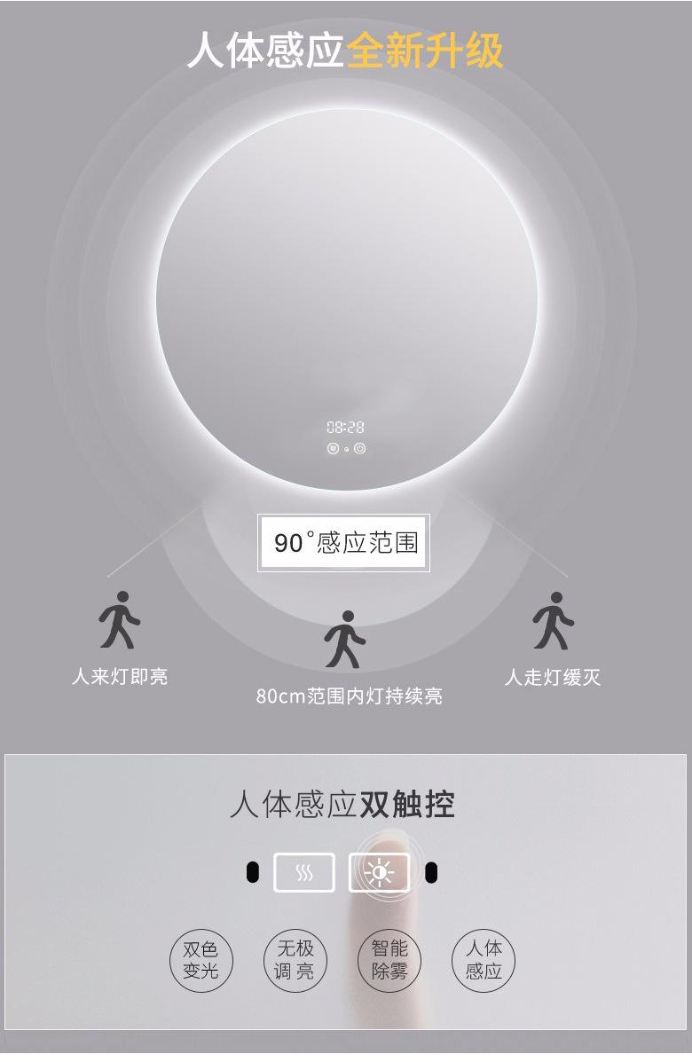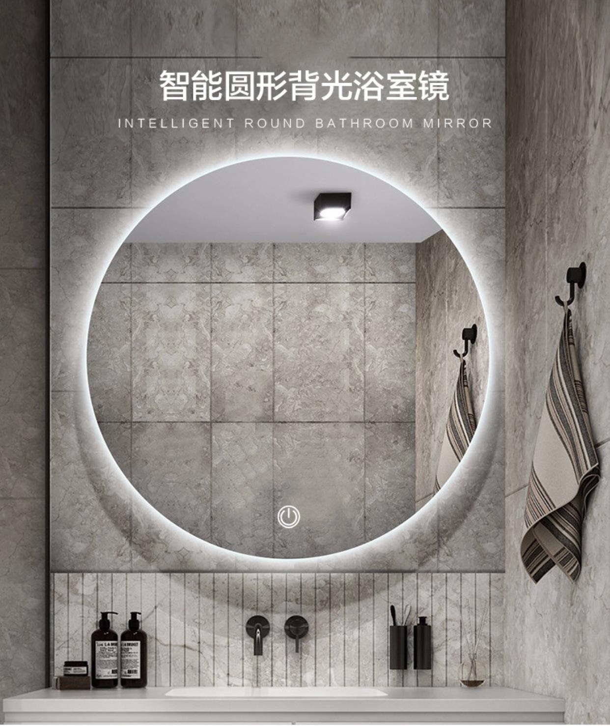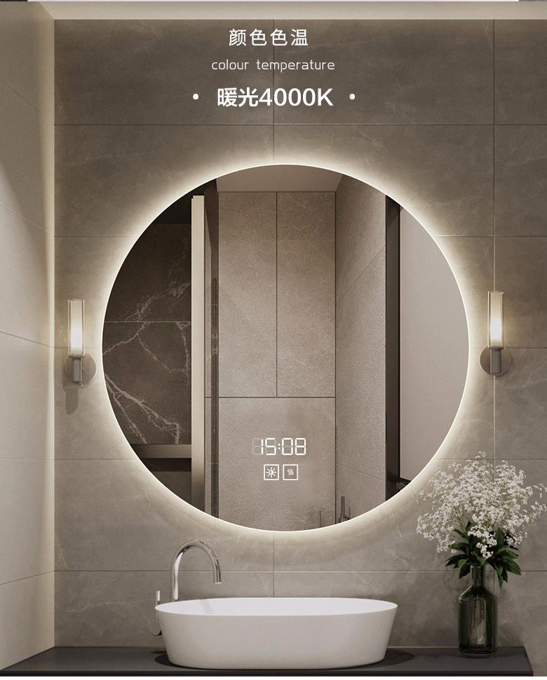 Espejo de Baño LED Redondo sin Marco Montado en la Pared Espejo Antivaho Espejo de Baño Inteligente Espejo de Ingeniería a Medida con Función Antivaho y Desempañante
